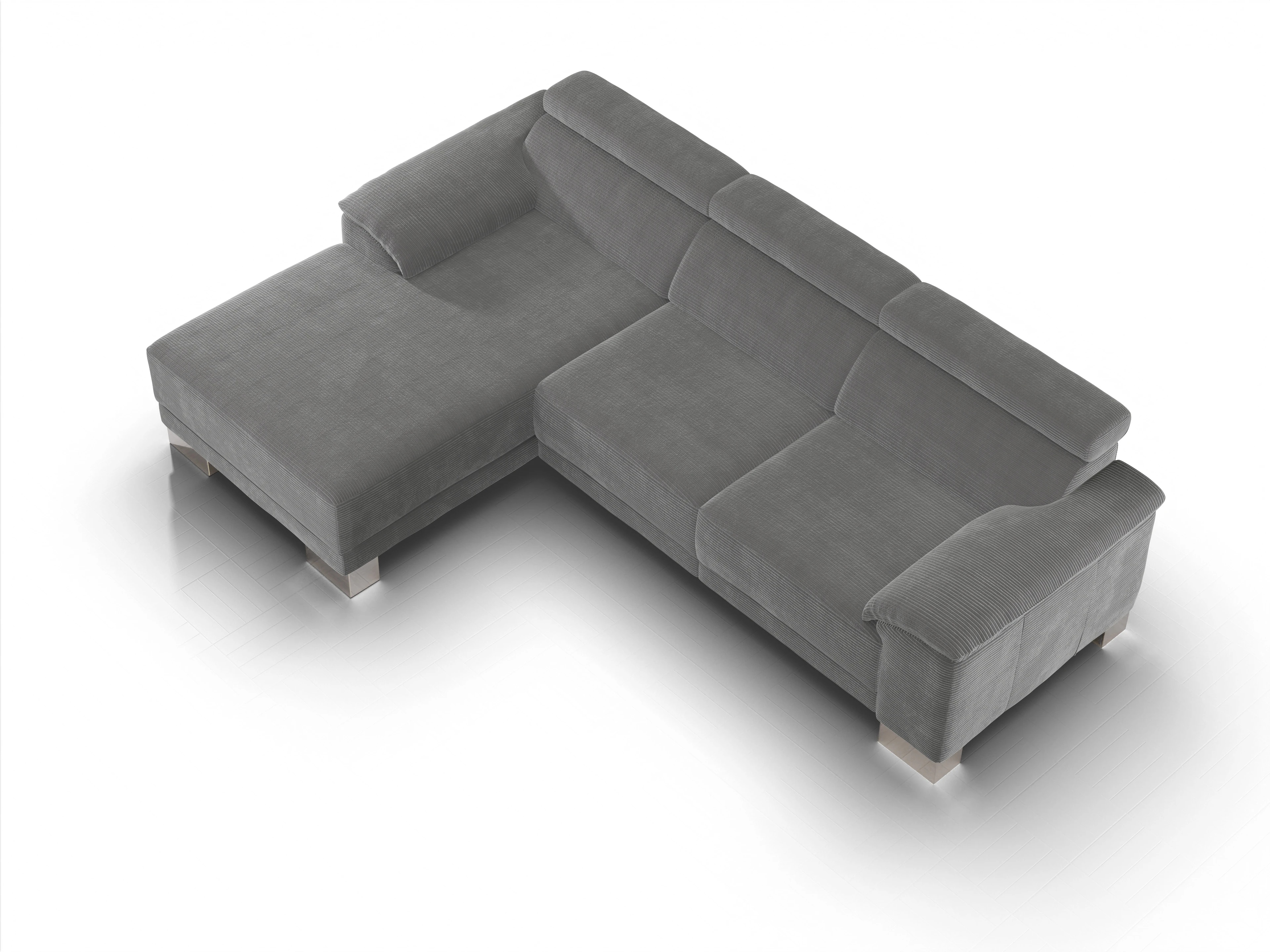 Das Ecksofa Antonio besteht aus einem Longchair mit Armlehne links und einem 2-Sitzer mit Armlehne rechts.