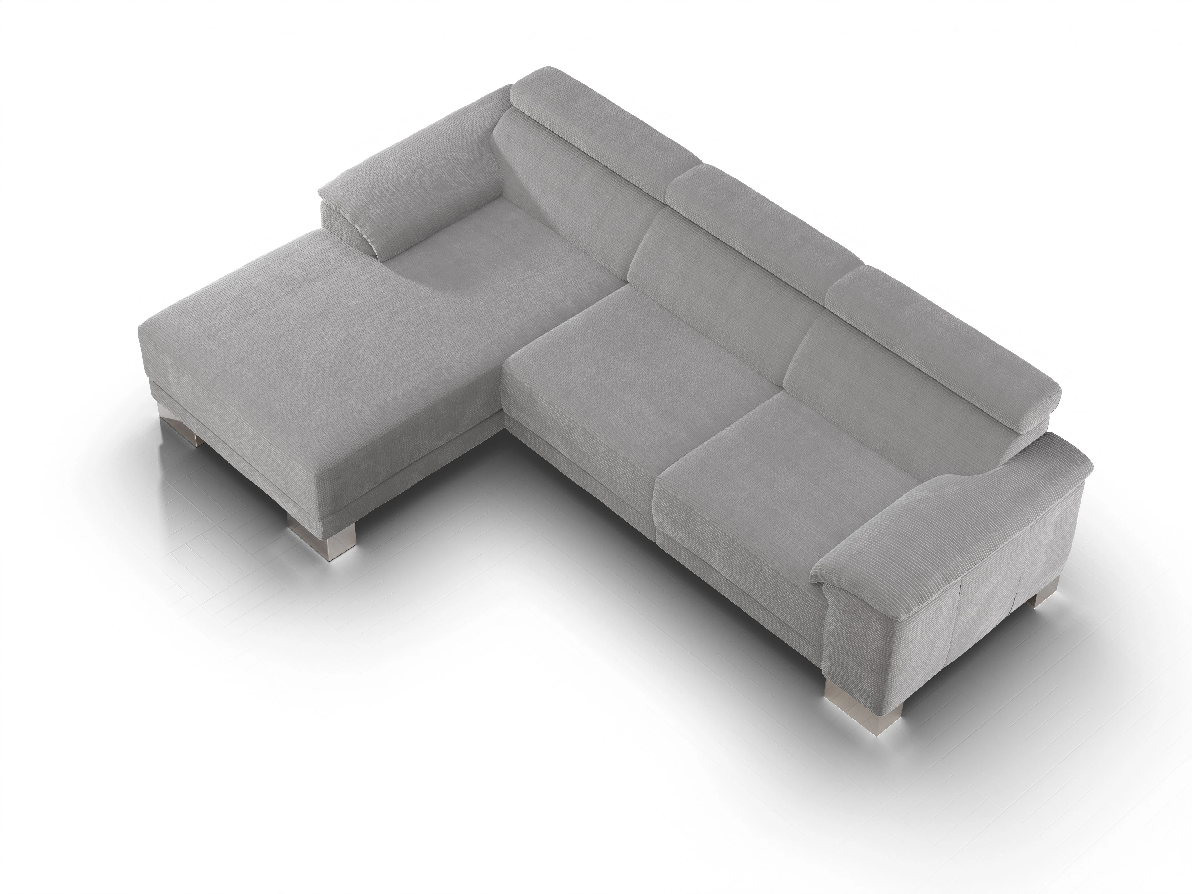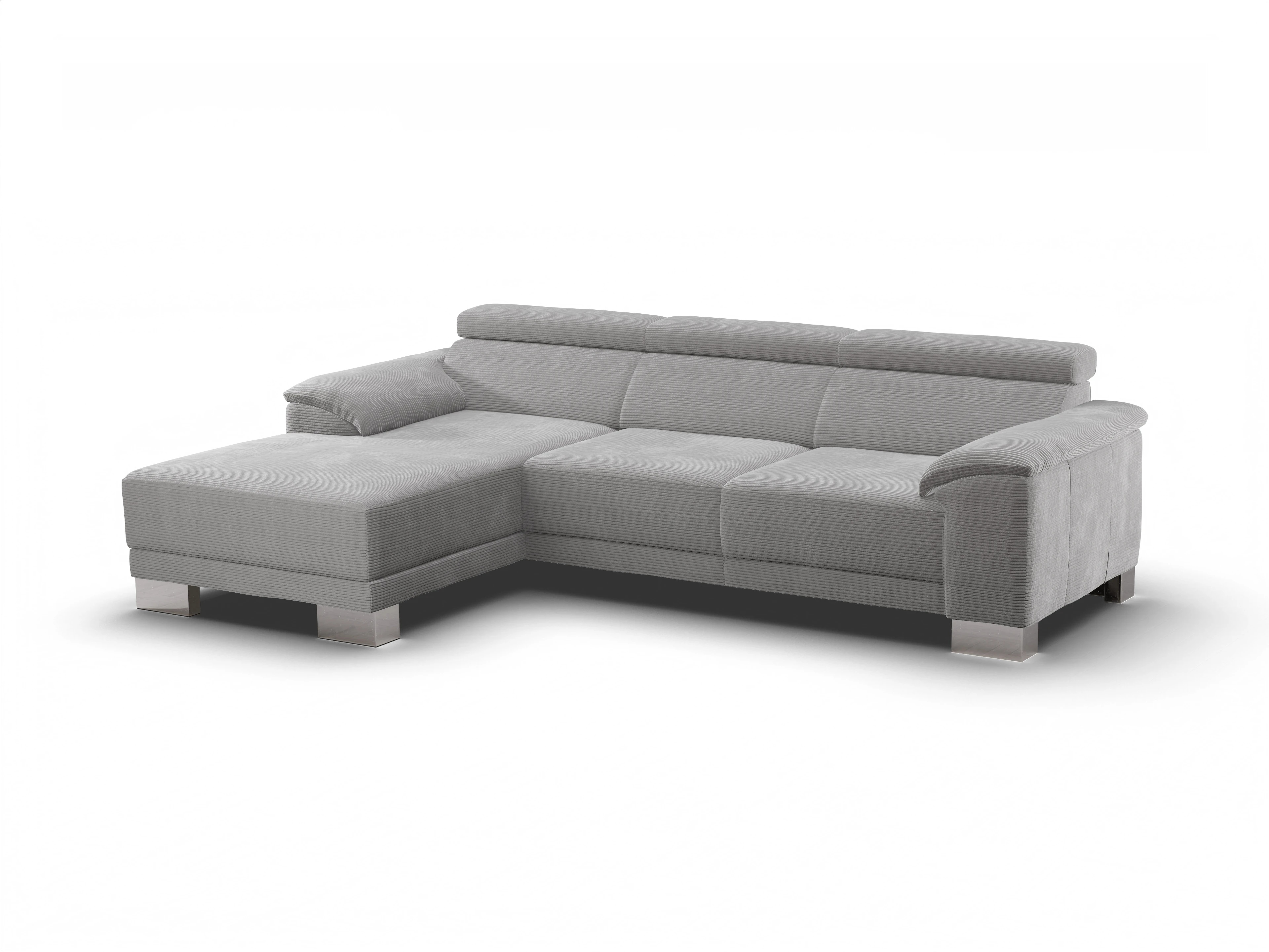 Das Ecksofa Antonio besteht aus einem Longchair mit Armlehne links und einem 2-Sitzer mit Armlehne rechts.