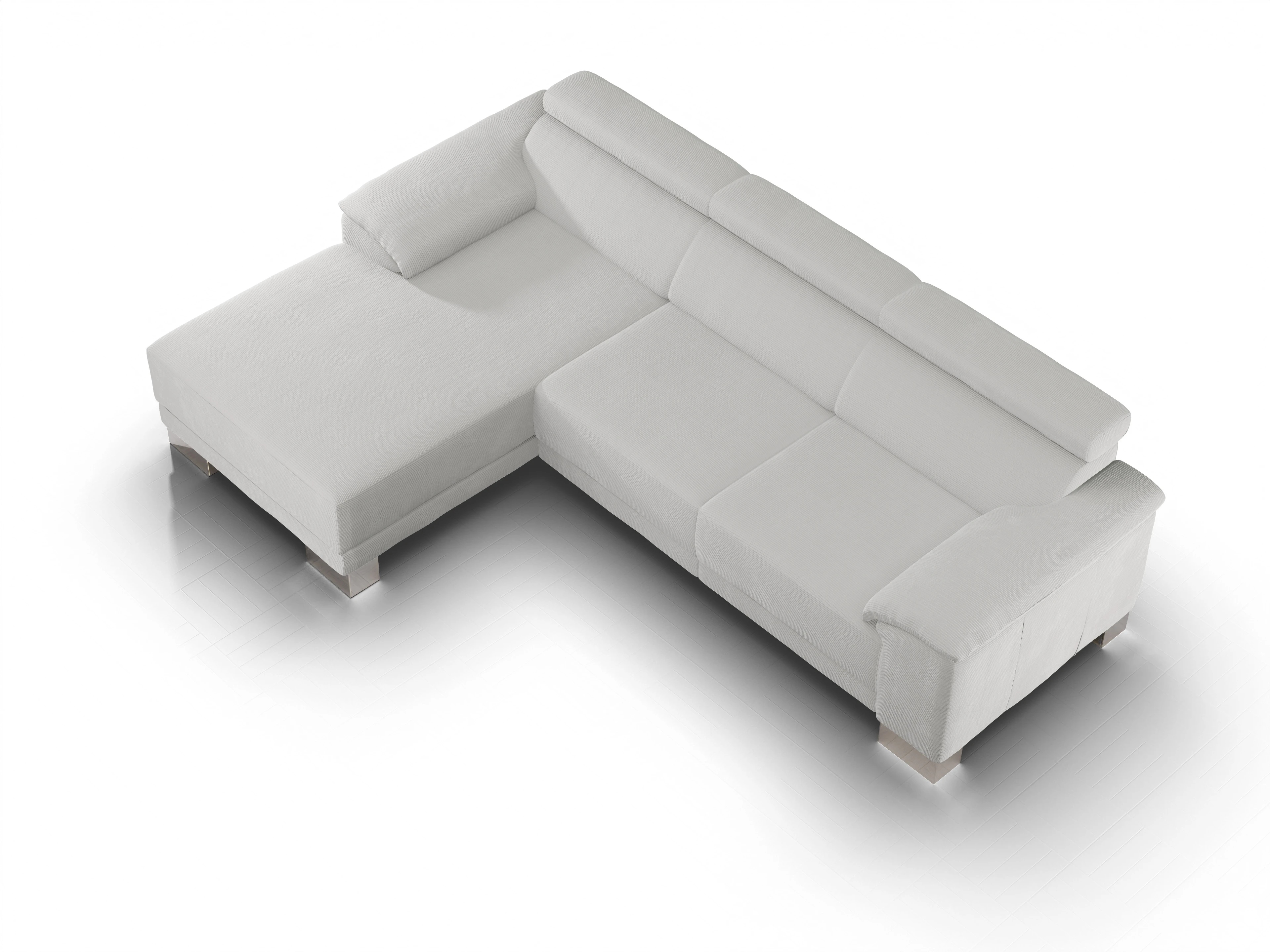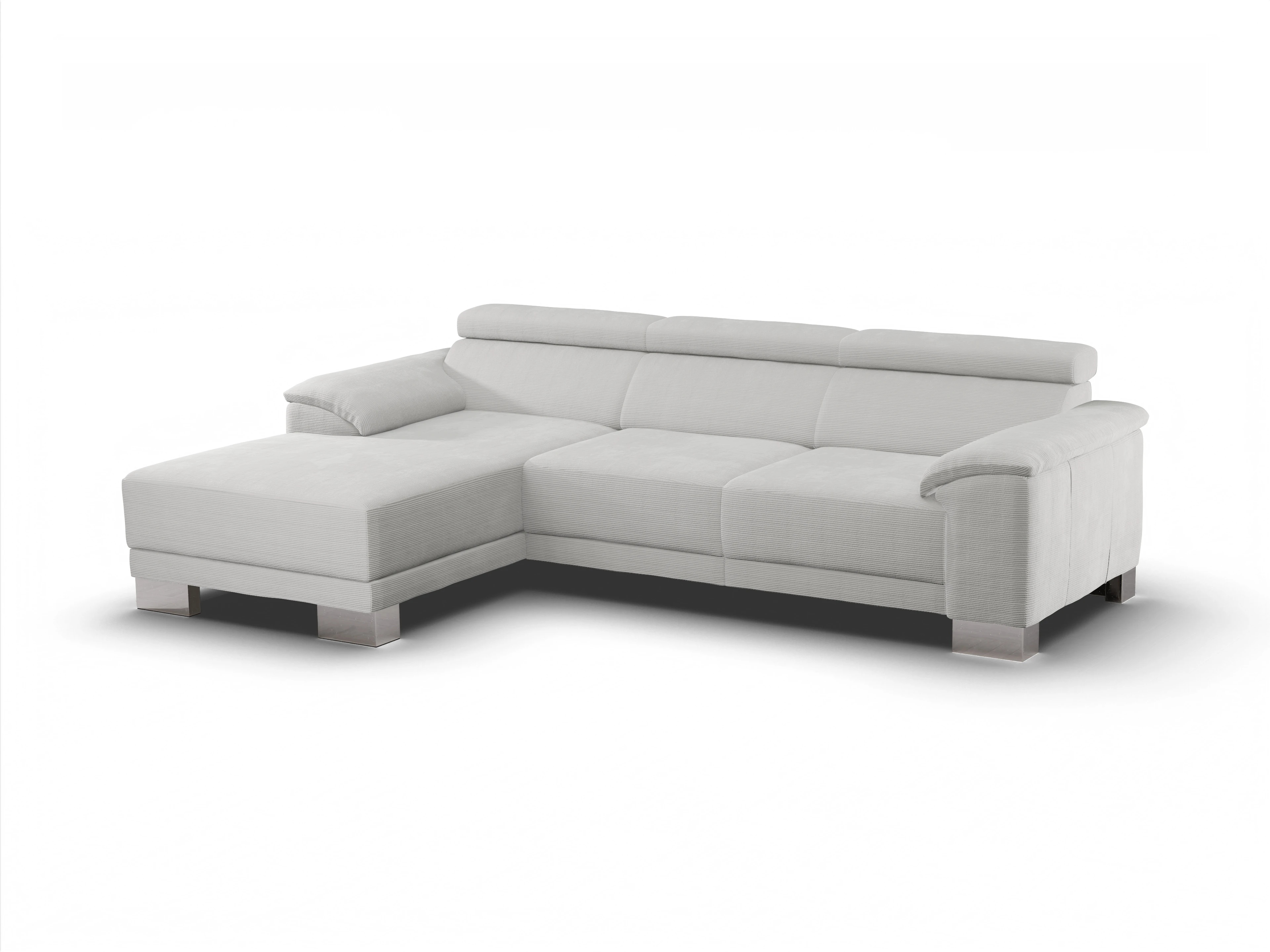 Das Ecksofa Antonio besteht aus einem Longchair mit Armlehne links und einem 2-Sitzer mit Armlehne rechts.