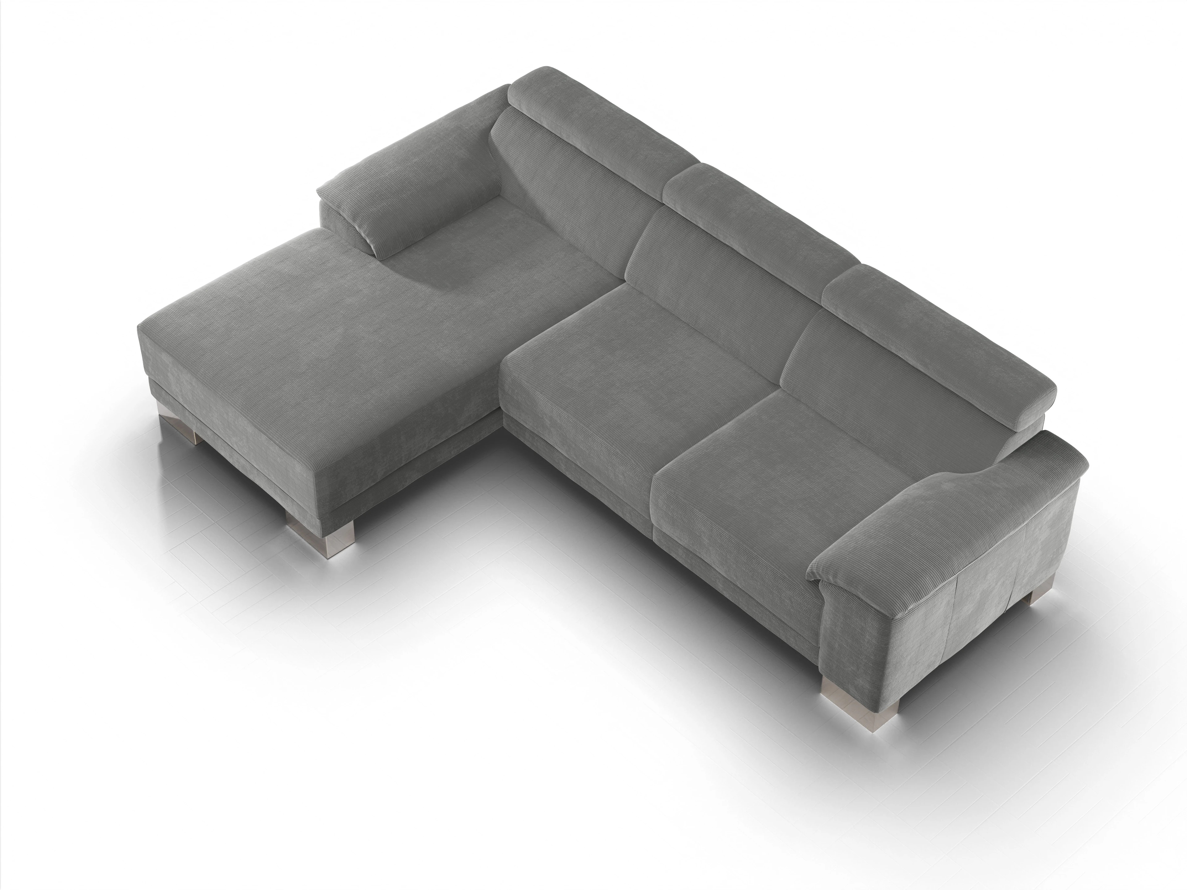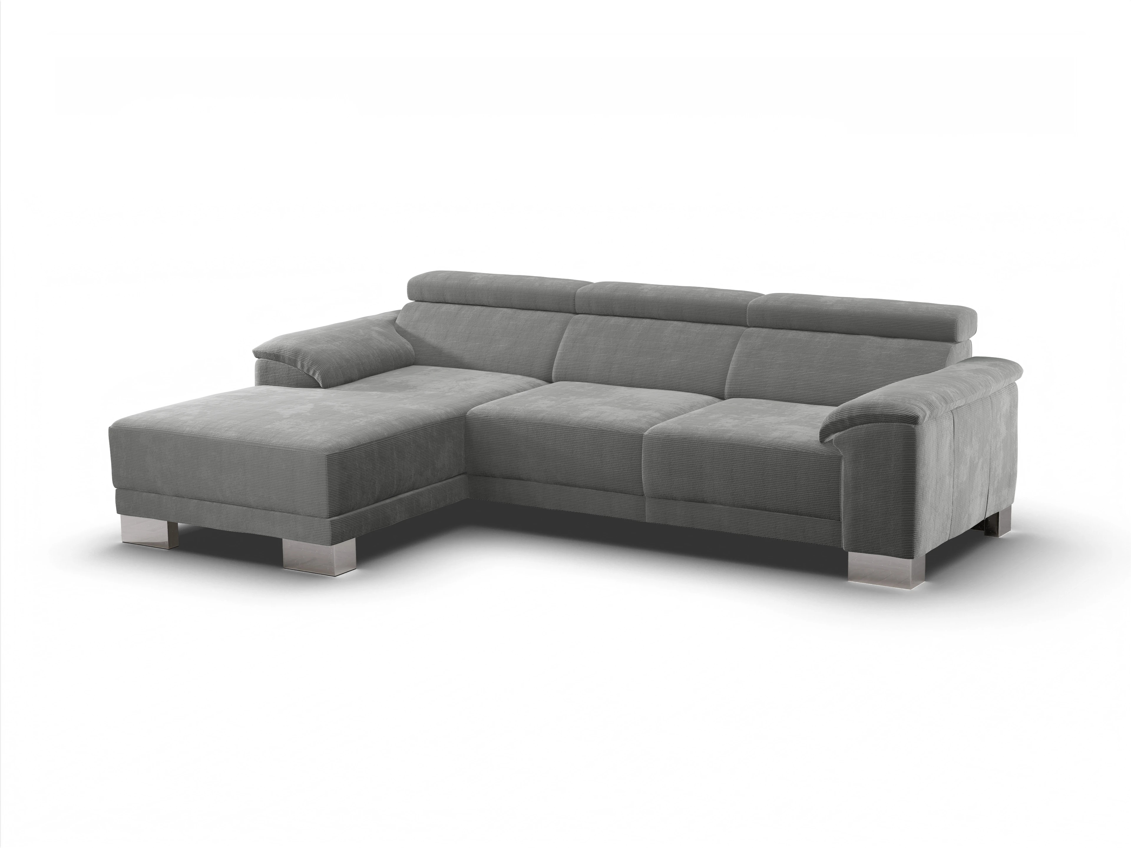 Das Ecksofa Antonio besteht aus einem Longchair mit Armlehne links und einem 2-Sitzer mit Armlehne rechts.