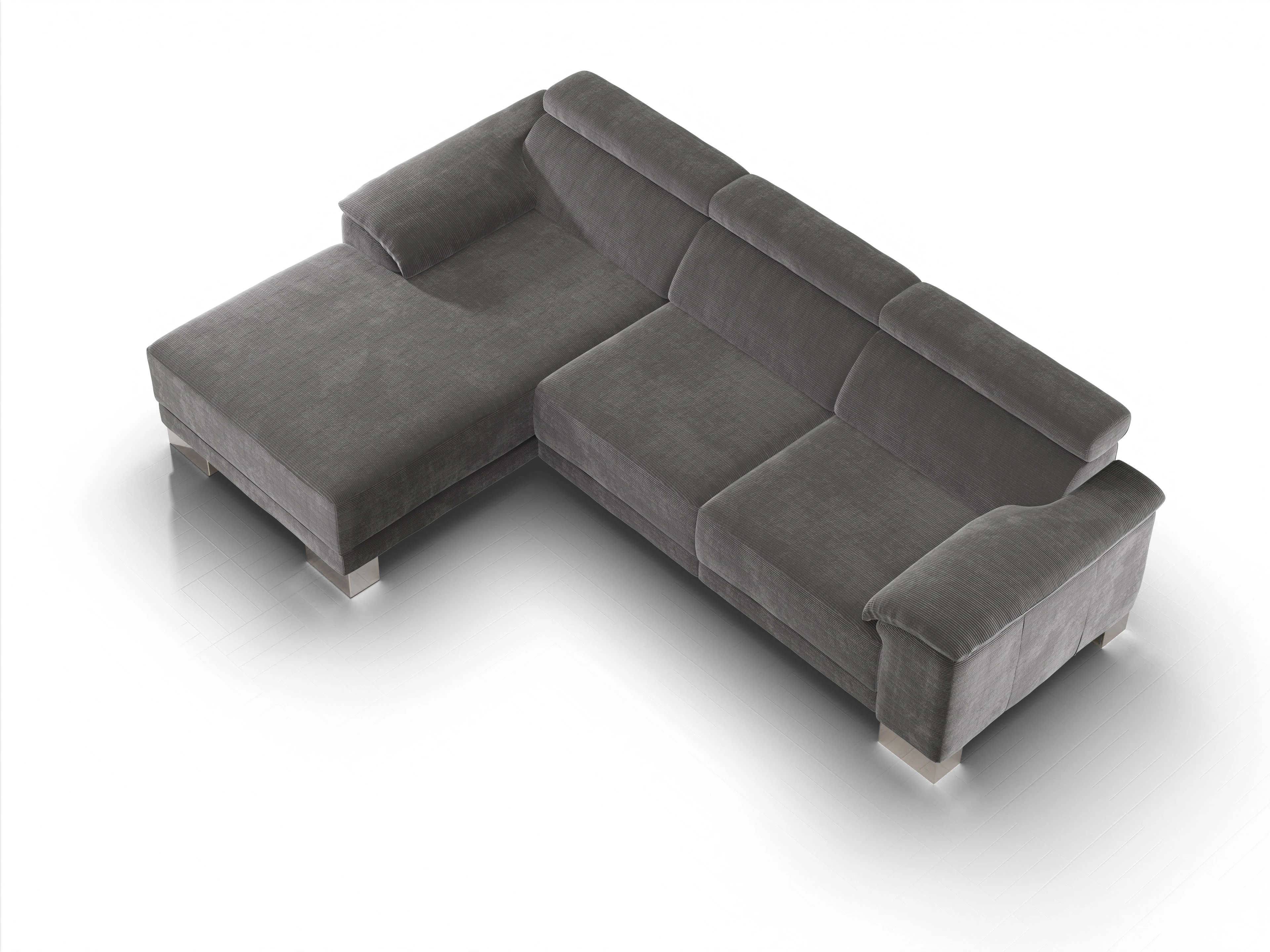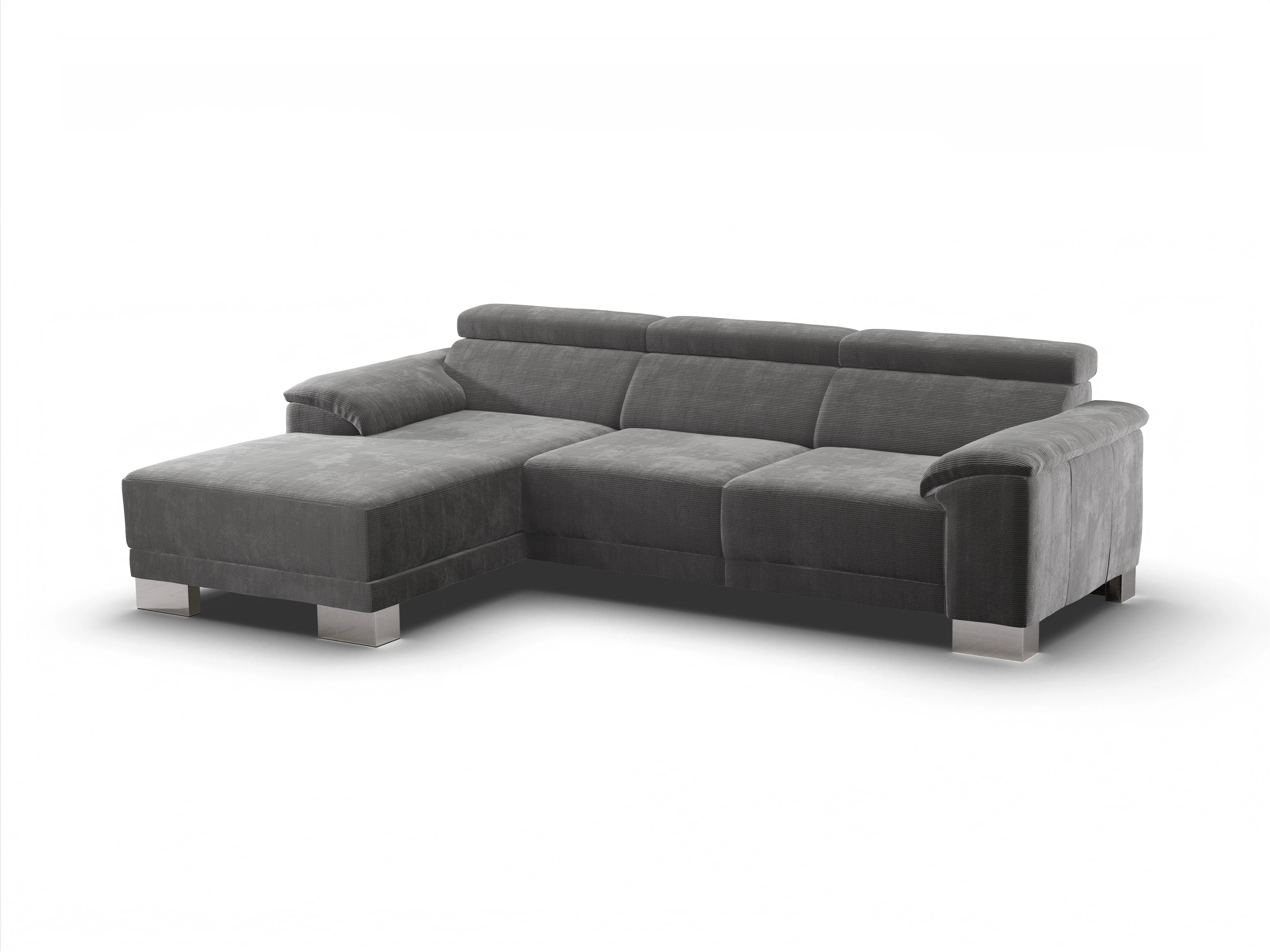 Das Ecksofa Antonio besteht aus einem Longchair mit Armlehne links und einem 2-Sitzer mit Armlehne rechts.