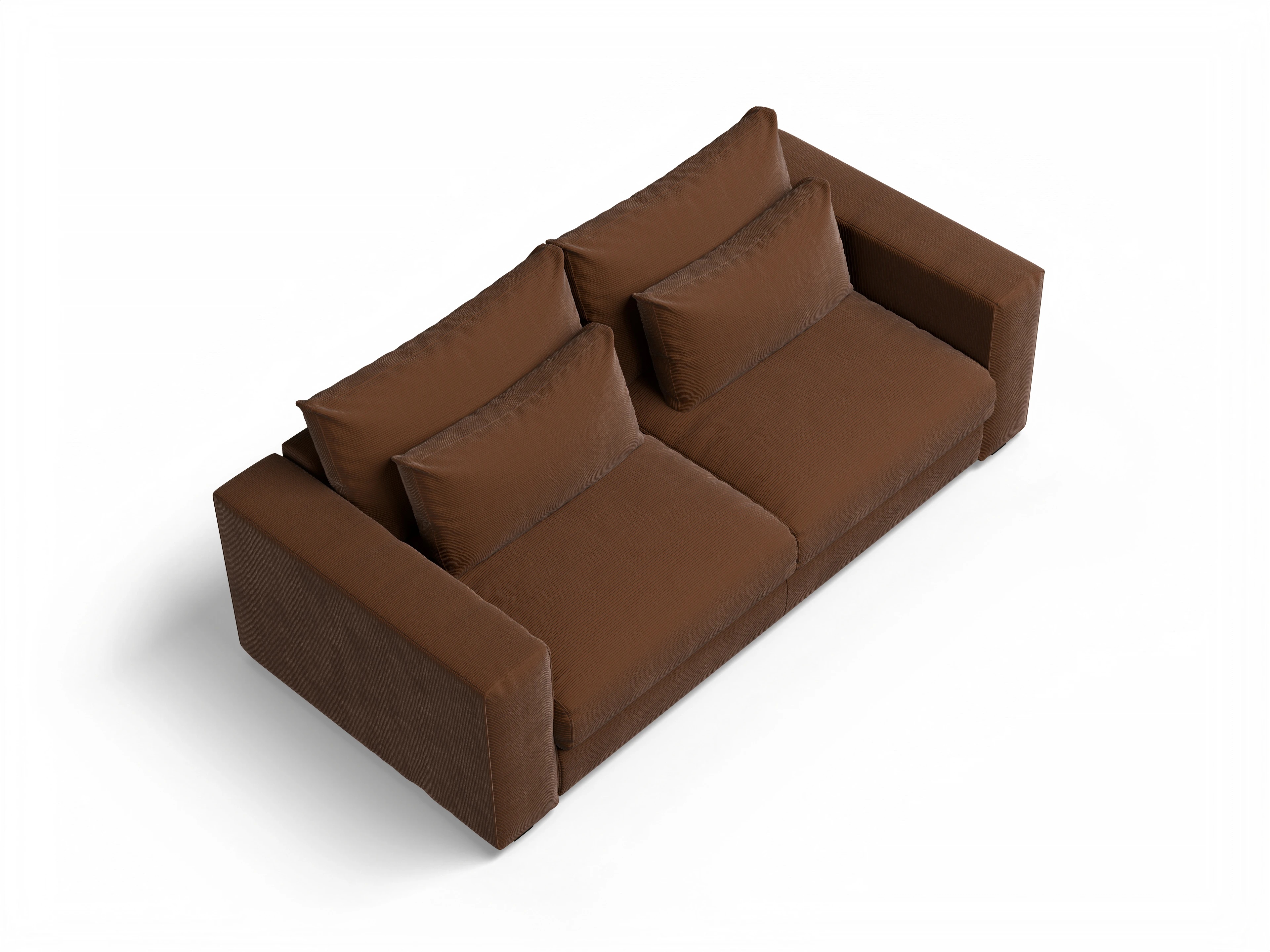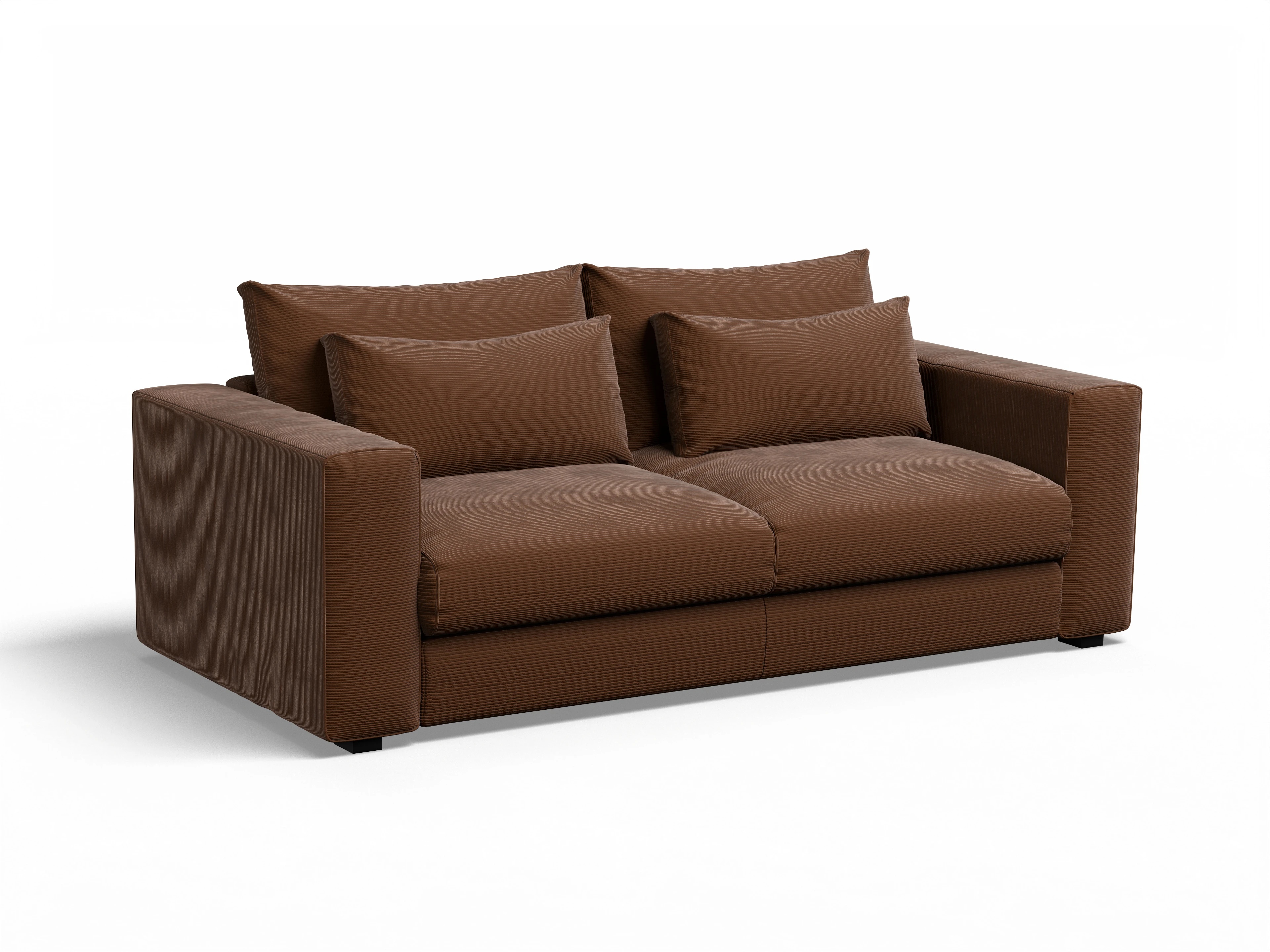 2,5-Sitzer Butler mit Armlehnen beidseitig und mit zwei Rücken- und zwei Nierenkissen.
