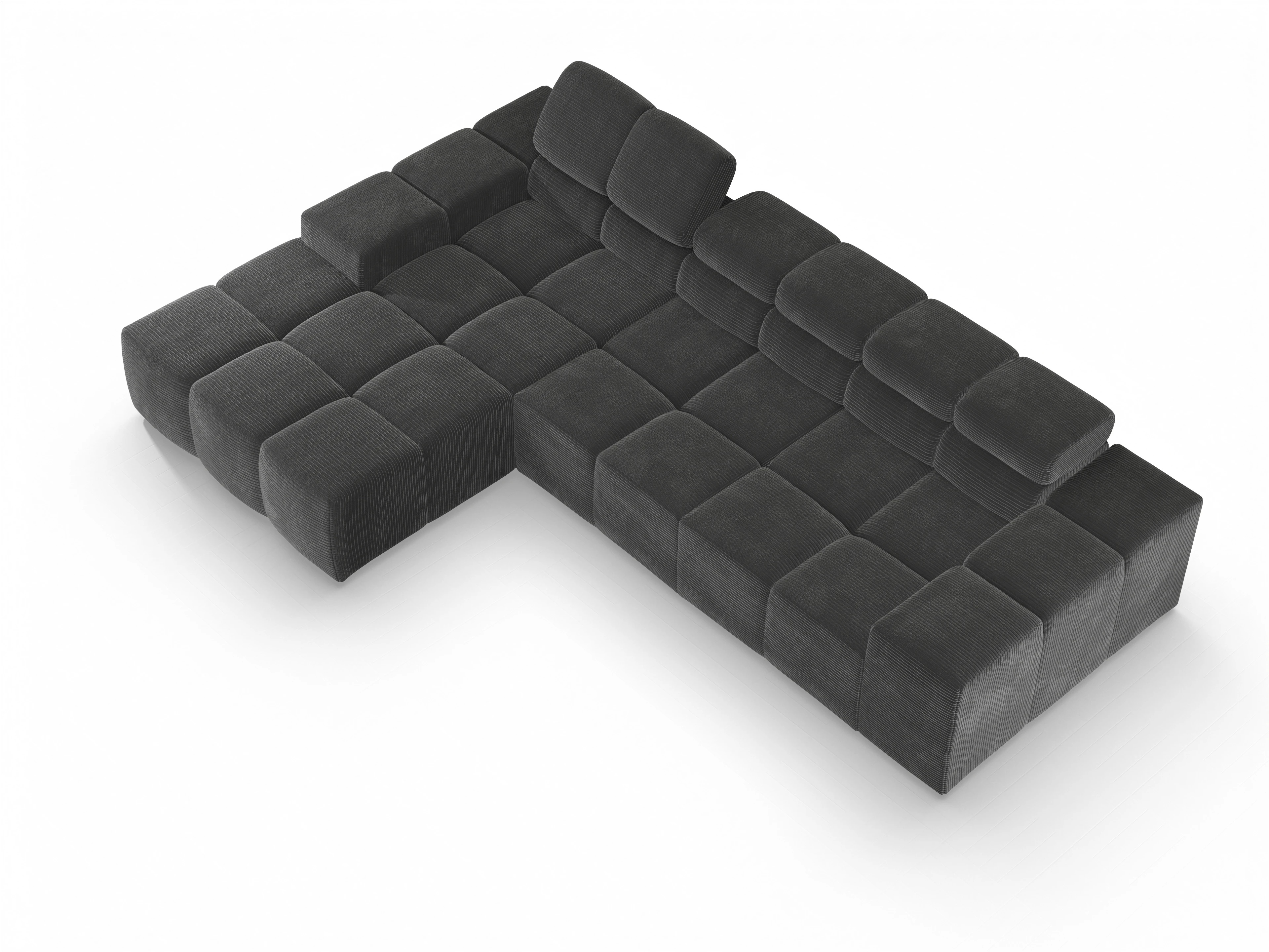 Das Camara Ecksofa besteht aus einem Longchair mit einer Armlehne links und einem 2-Sitzer mit einer Armlehne rechts.