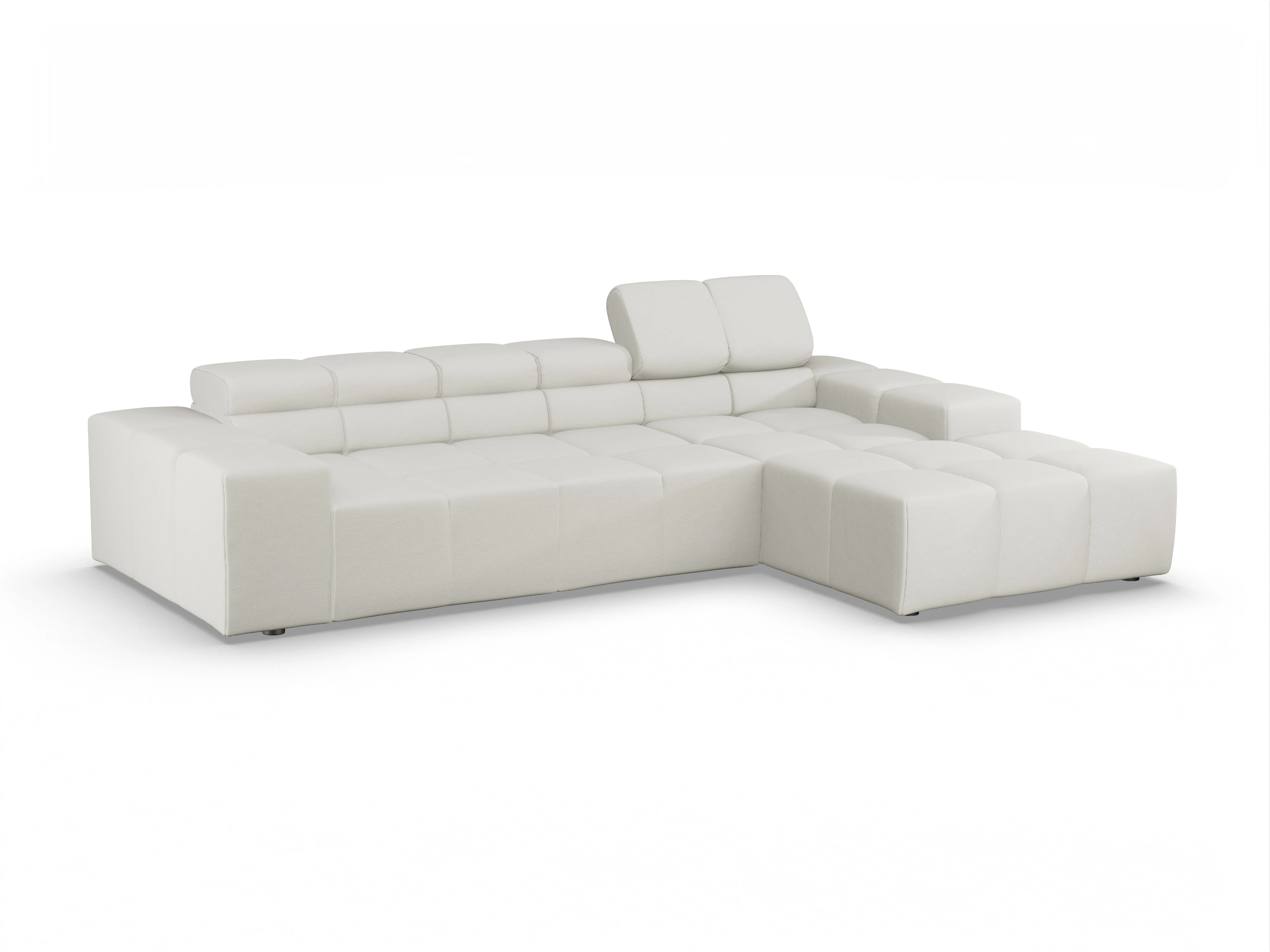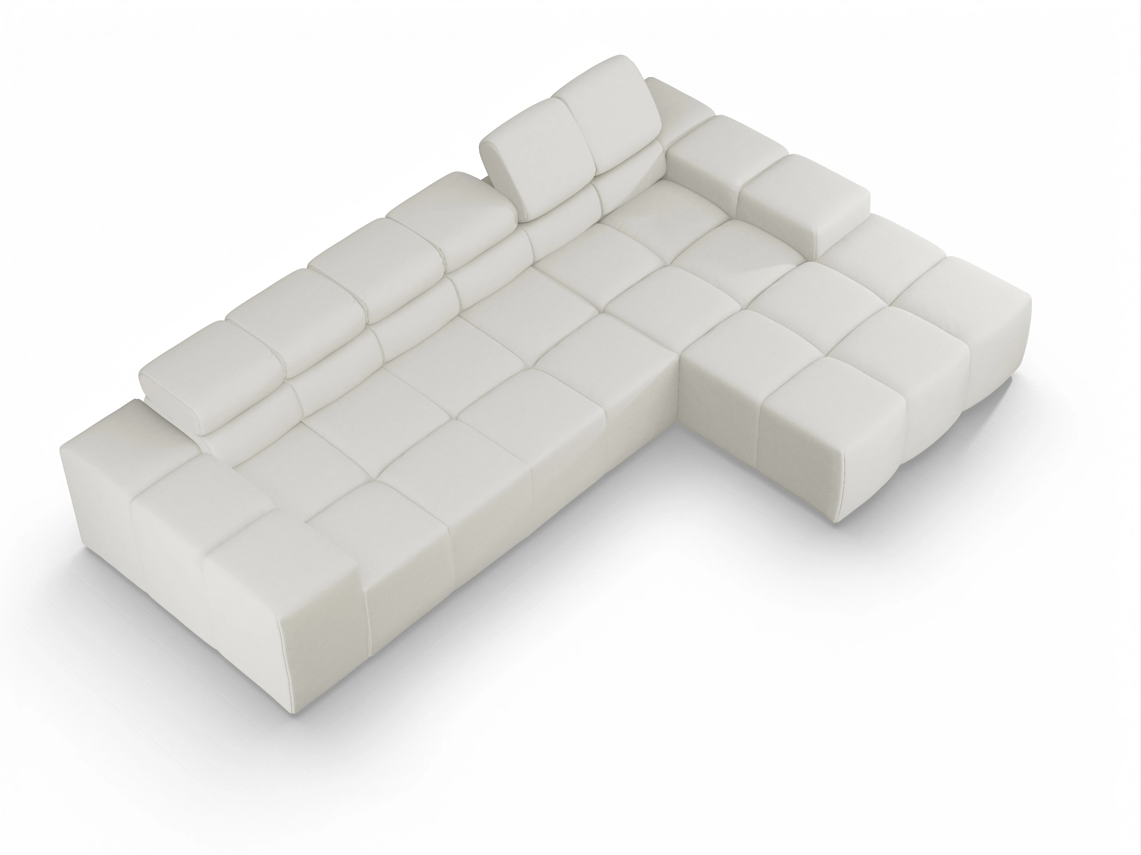 Das Ecksofa Camara besteht aus einem 2-Sitzer mit einer Armlehne links und einem Longchair mit einer Armlehne rechts.