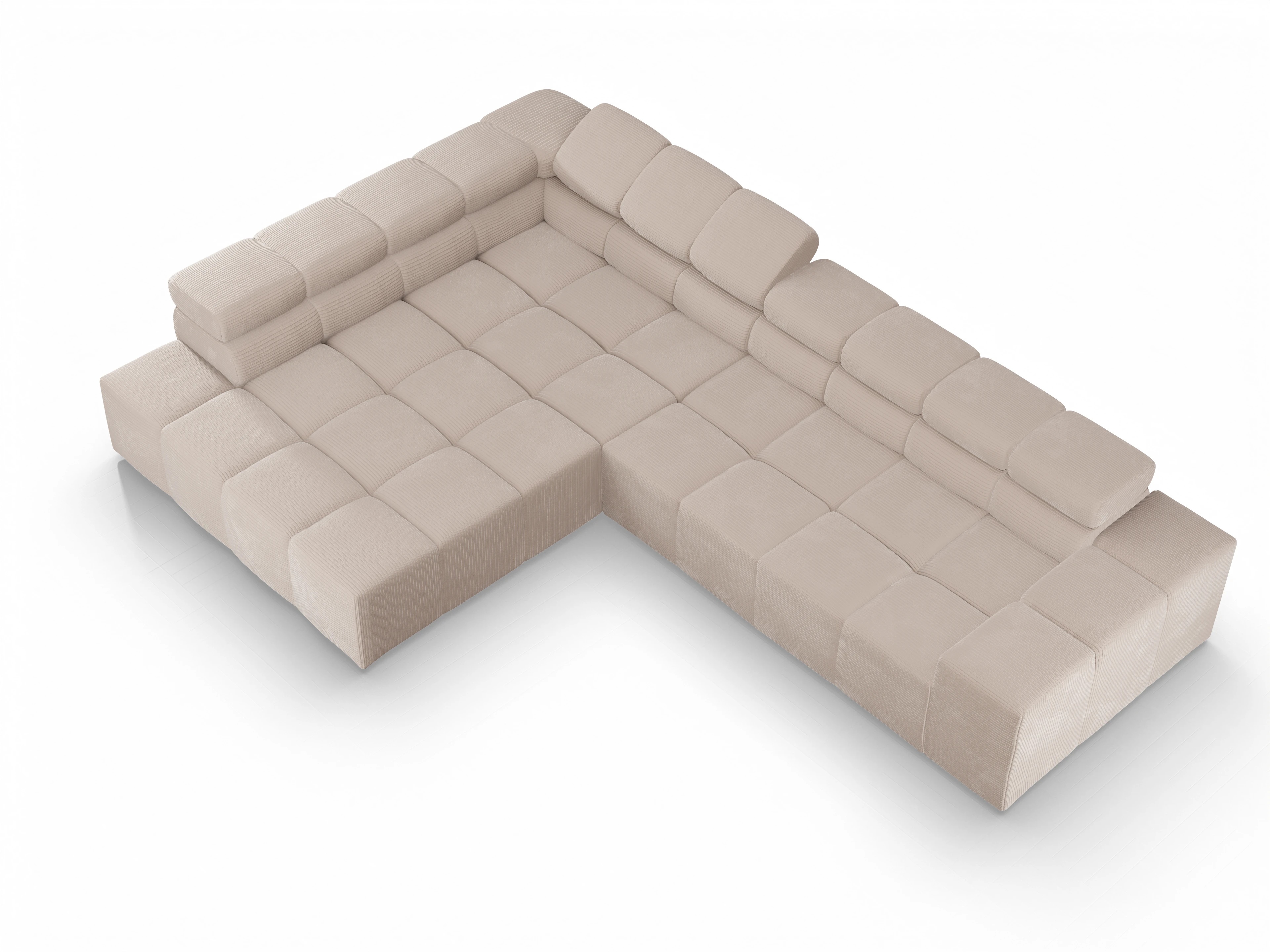 Das Camara Ecksofa besteht aus einer Umbauecke groß mit offenem Abschluß links und einem 2-Sitzer mit einer Armlehne rechts. 2 Spitzkissen in Stoff ca. 50 x 40 cm sind bei dieser Sofagarnitur inklusive.