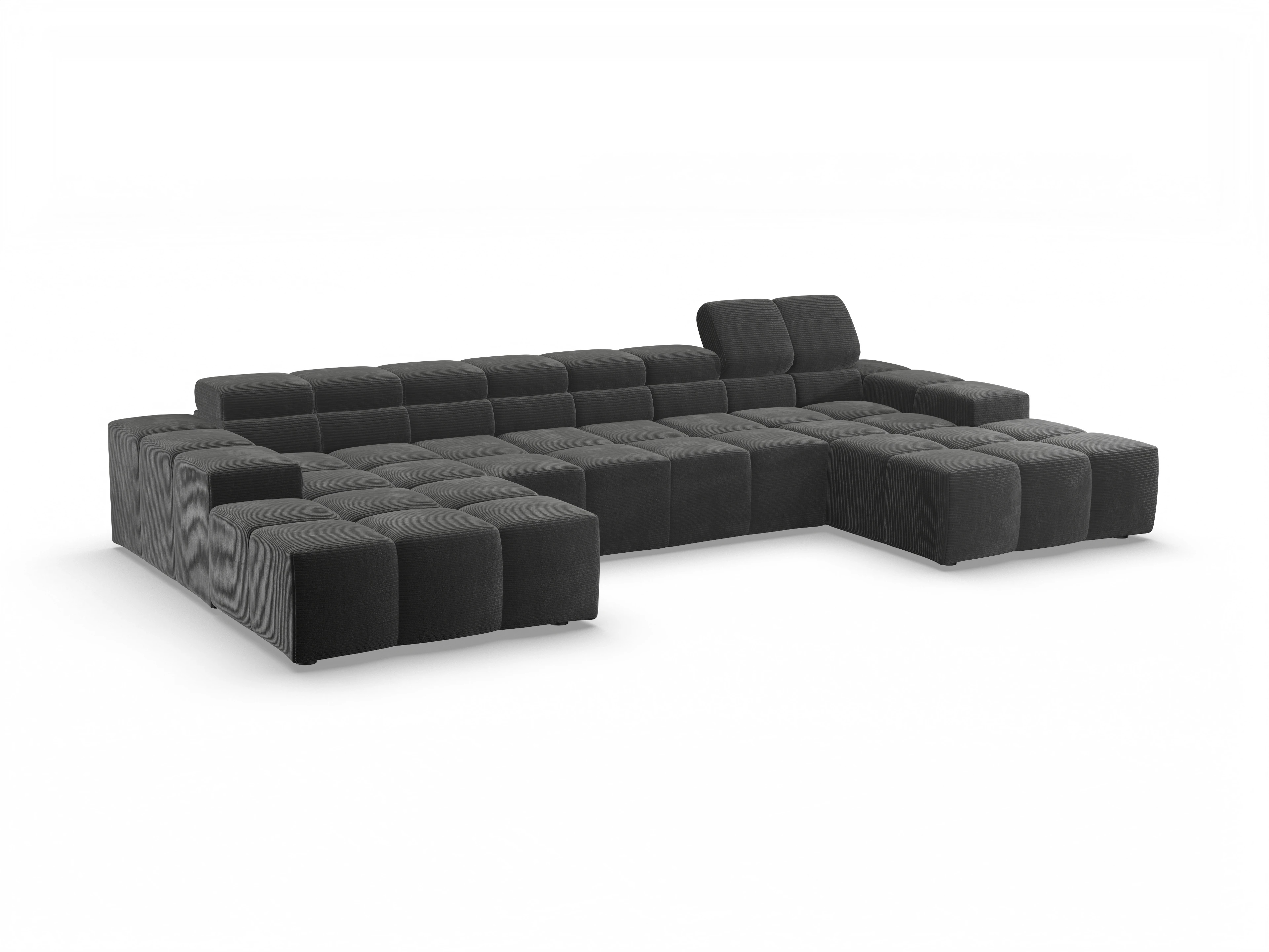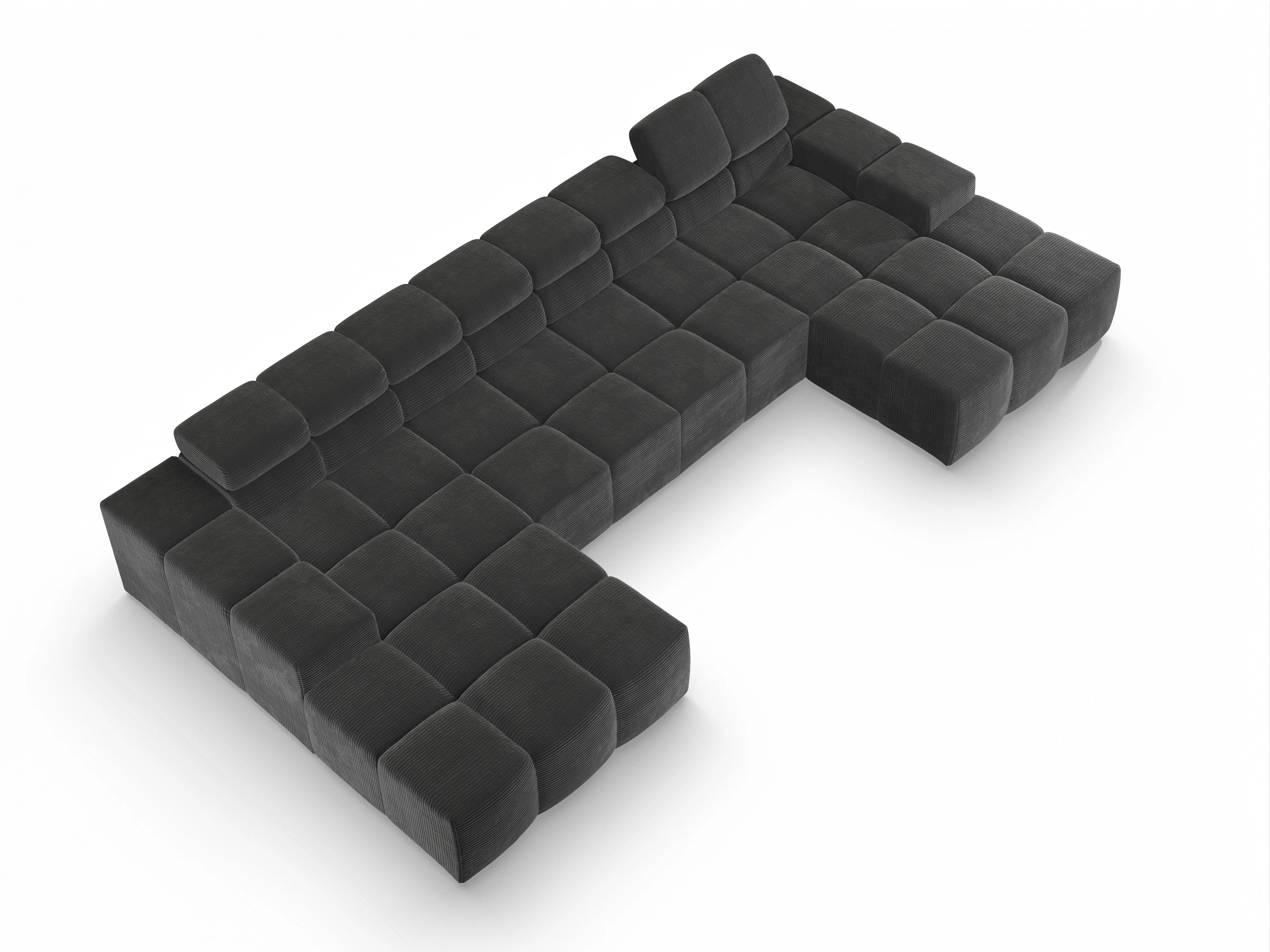 Die Wohnlandschaft Camara besteht aus einem Longchair mit einer Armlehne links und einem 2-Sitzer ohne Armlehnen mittig sowie einem Longchair mit einer Armlehne rechts.