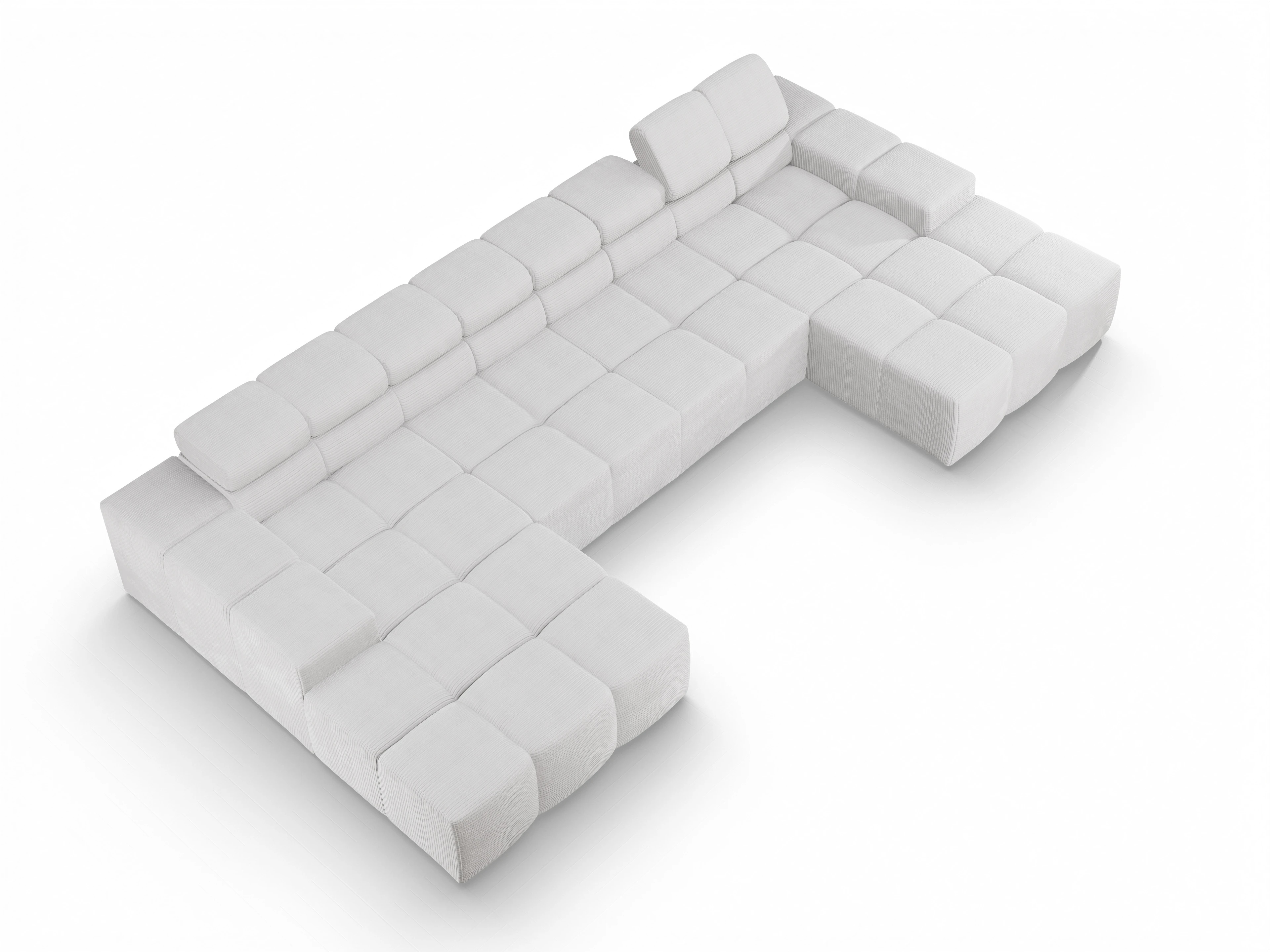 Die Wohnlandschaft Camara besteht aus einem Longchair mit einer Armlehne links und einem 2-Sitzer ohne Armlehnen mittig sowie einem Longchair mit einer Armlehne rechts.