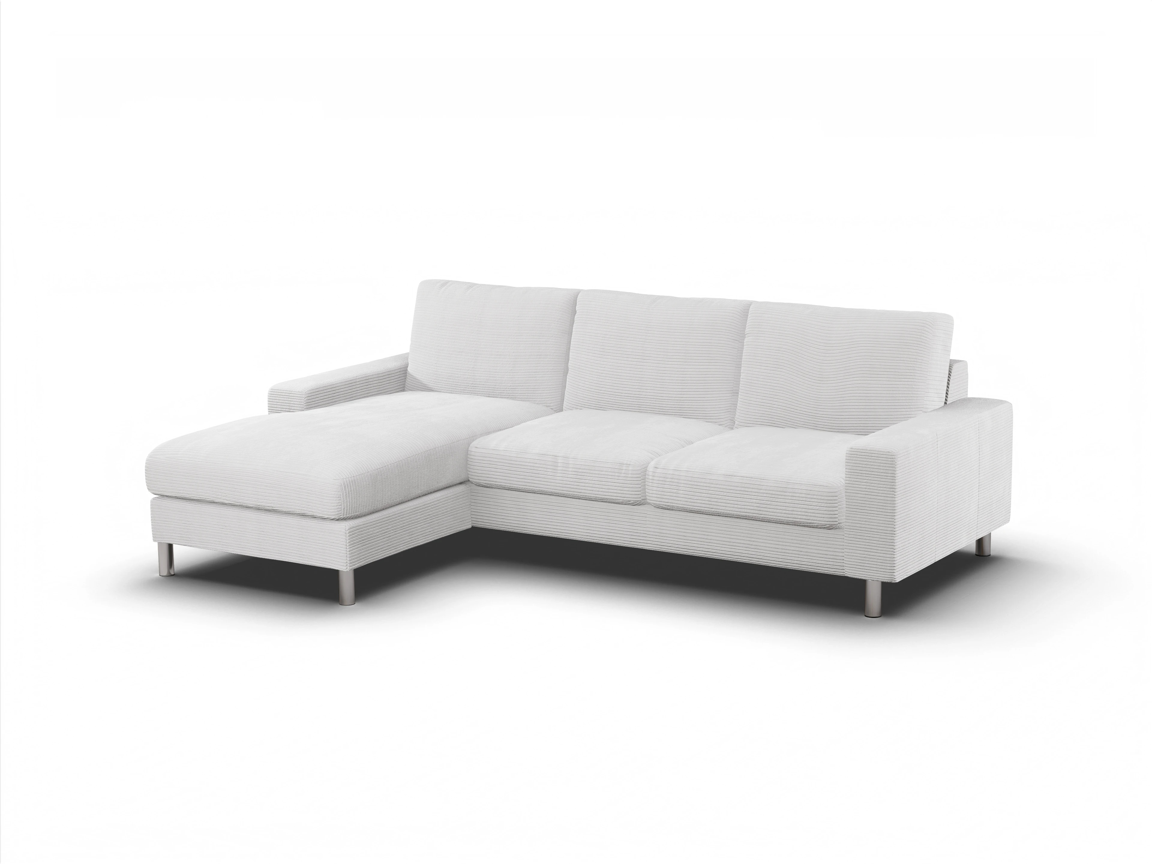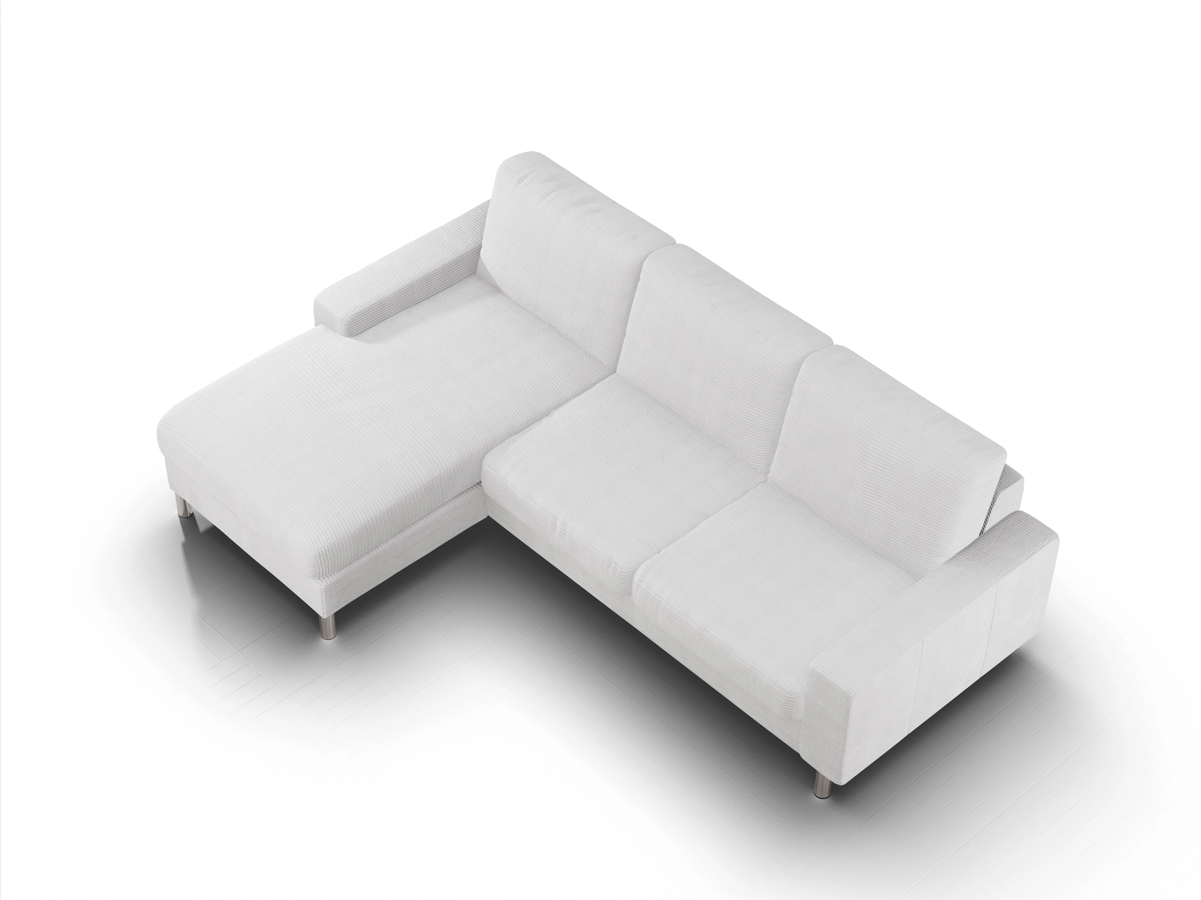 Das Campo Ecksofa setzt sich aus einem Longchair mit Armlehne links und einem 2-Sitzer mit Armlehne rechts zusammen.
