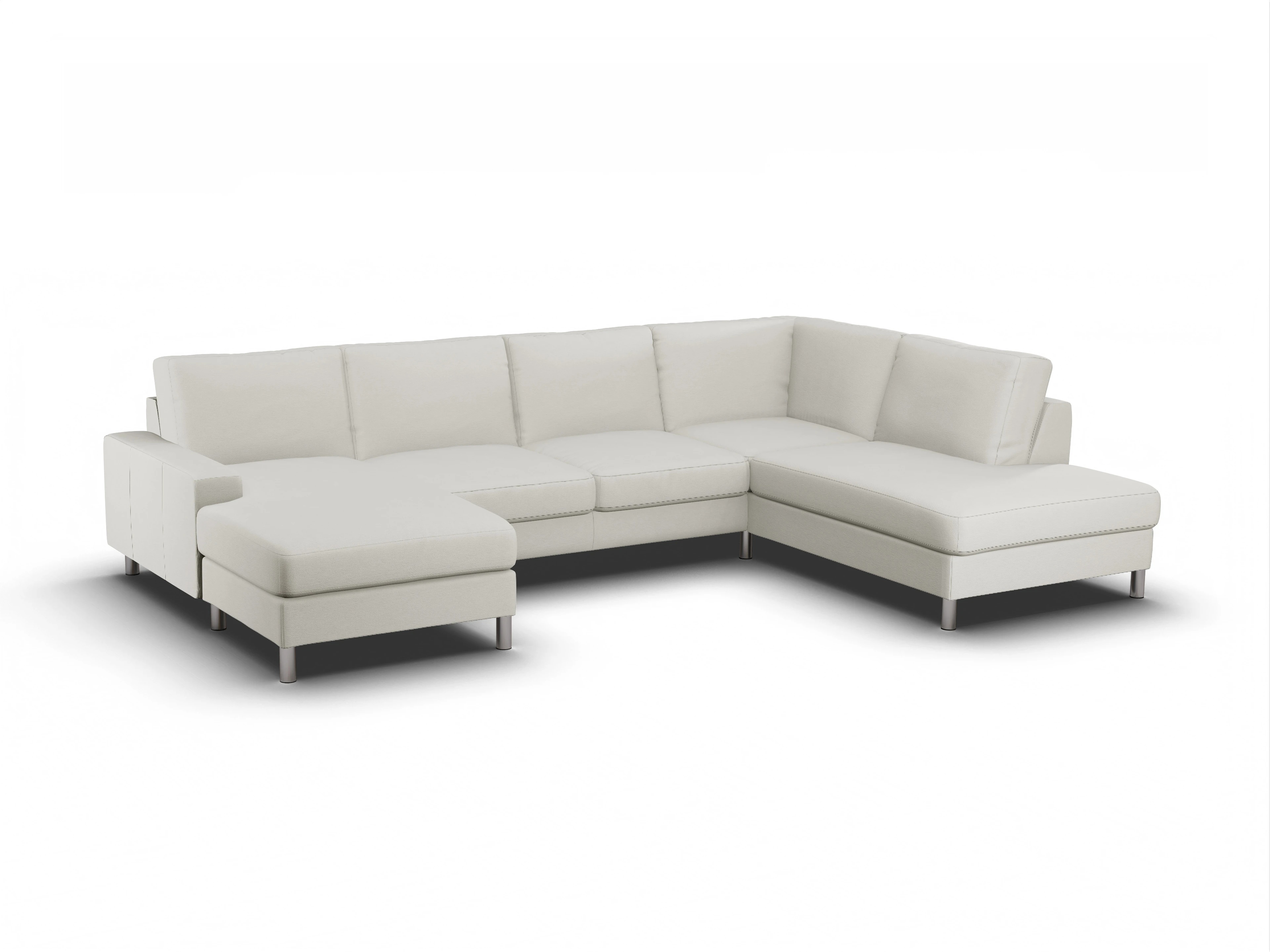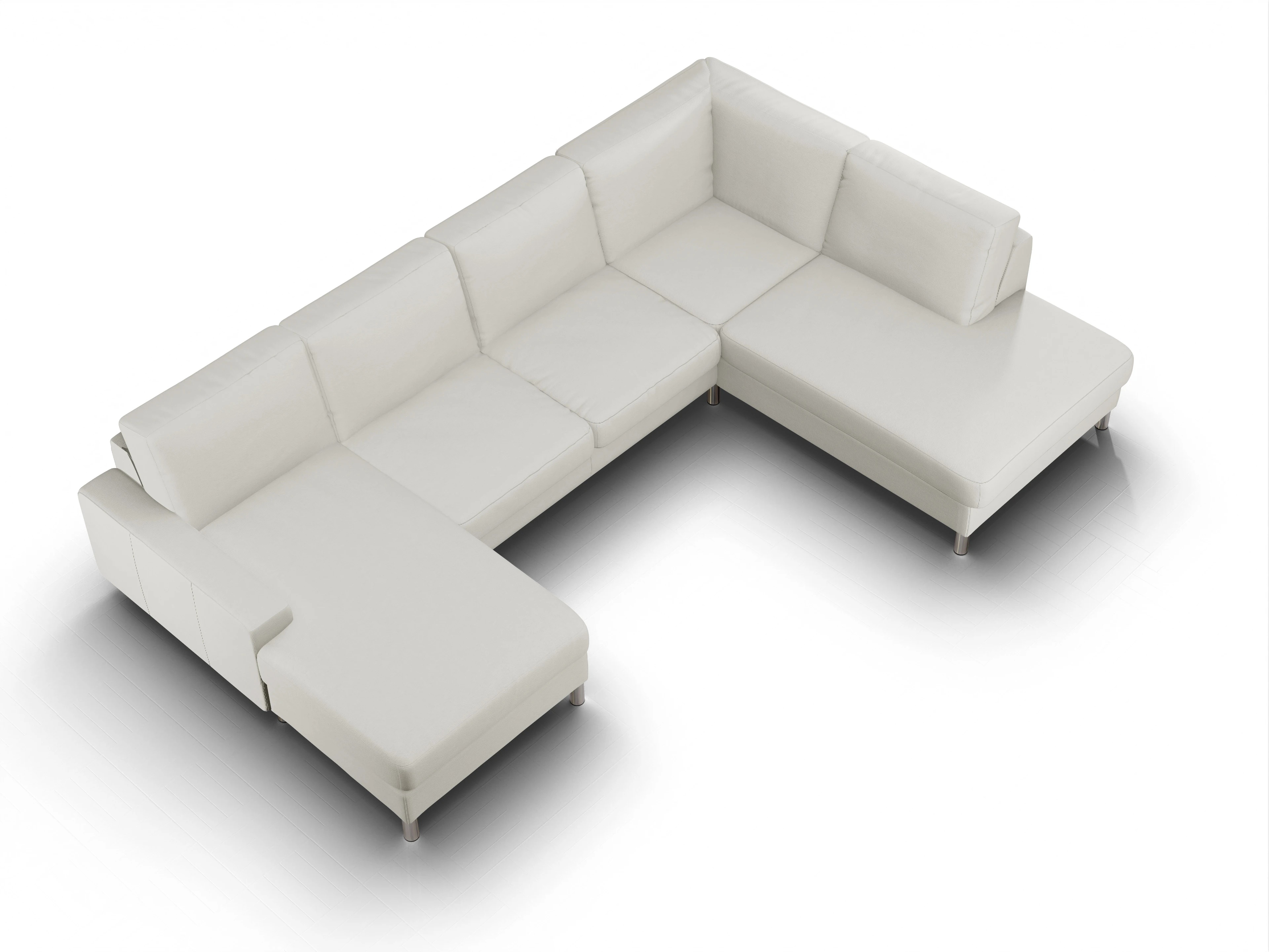 Die Campo Wohnlandschaft besteht aus einem Longchair mit Armlehne links, einem 2-Sitzer ohne Armlehne mittig sowie einer Umbauecke rechts.