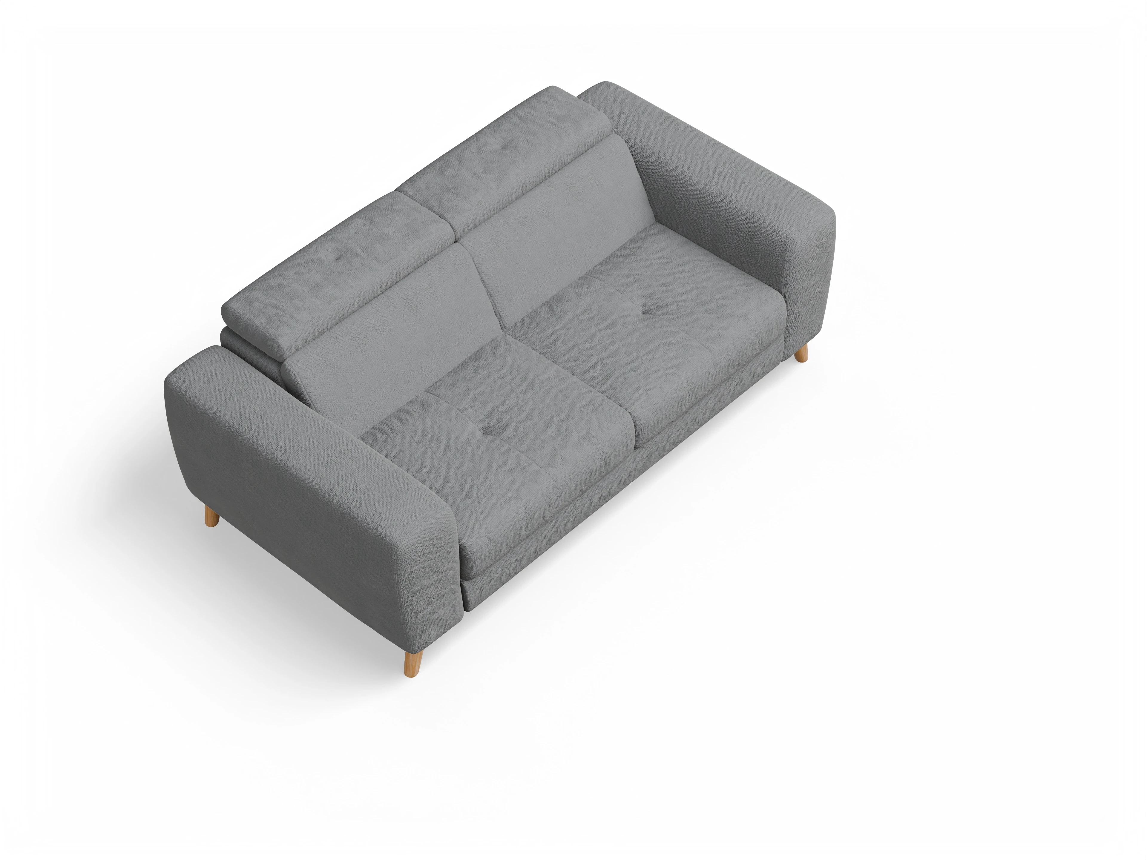 Das Capua Sofa besticht durch sein klassisches, skandinavisches Design und wird durch integrierte, verstellbare Kopfstützen stilvoll ergänzt. Ein besonderes Highlight ist, die gegen Aufpreis erhältliche, motorische Relaxfunktion, die auf Knopfdruck höchsten Komfort bietet. Die breiten Armlehnen sorgen für zusätzliche Bequemlichkeit, während die runden Holzfüße dem Sofa einen natürlichen Look verleihen. Dieses Möbelstück vereint elegantes Design mit modernen Funktionen und ist perfekt für jeden Raum, der sowohl stilvolle Ästhetik als auch hervorragenden Komfort bieten soll. Ideal für entspannte Stunden und ein gemütliches Zuhause.