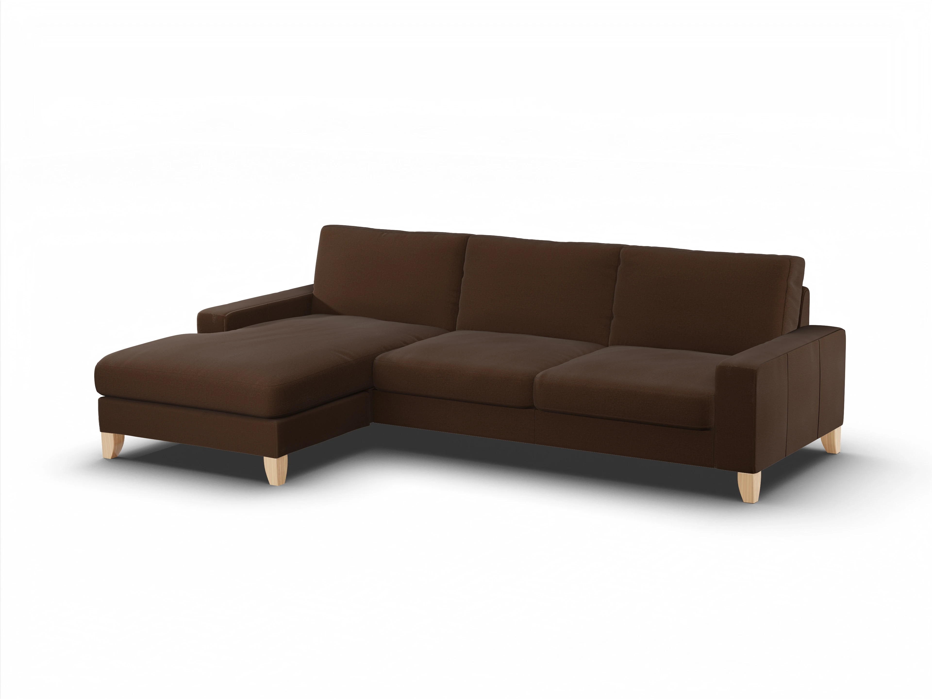 Das Casco Ecksofa besteht aus einem Longchair mit Armlehne links und einem 3-Sitzer mit Armlehne rechts.