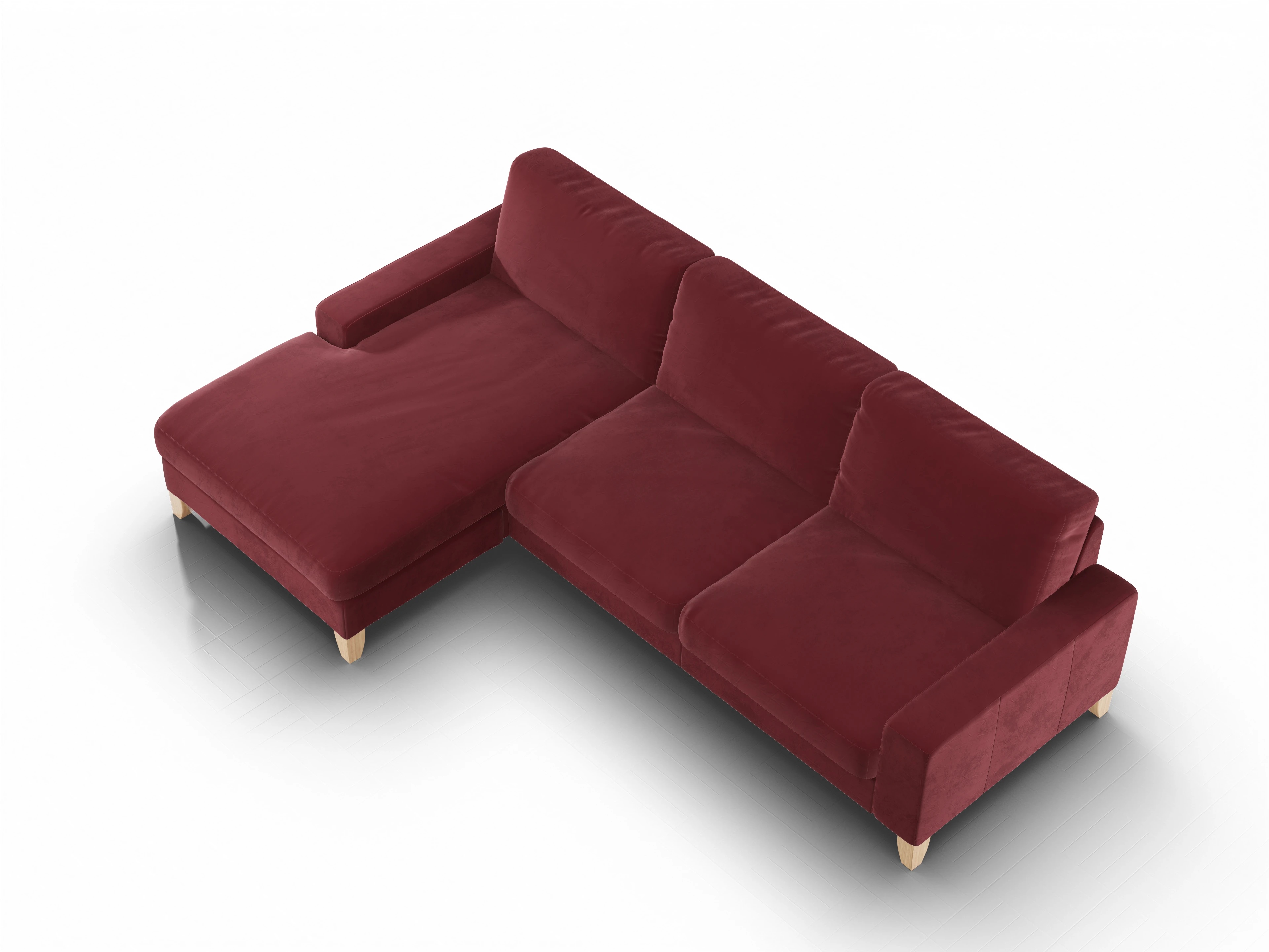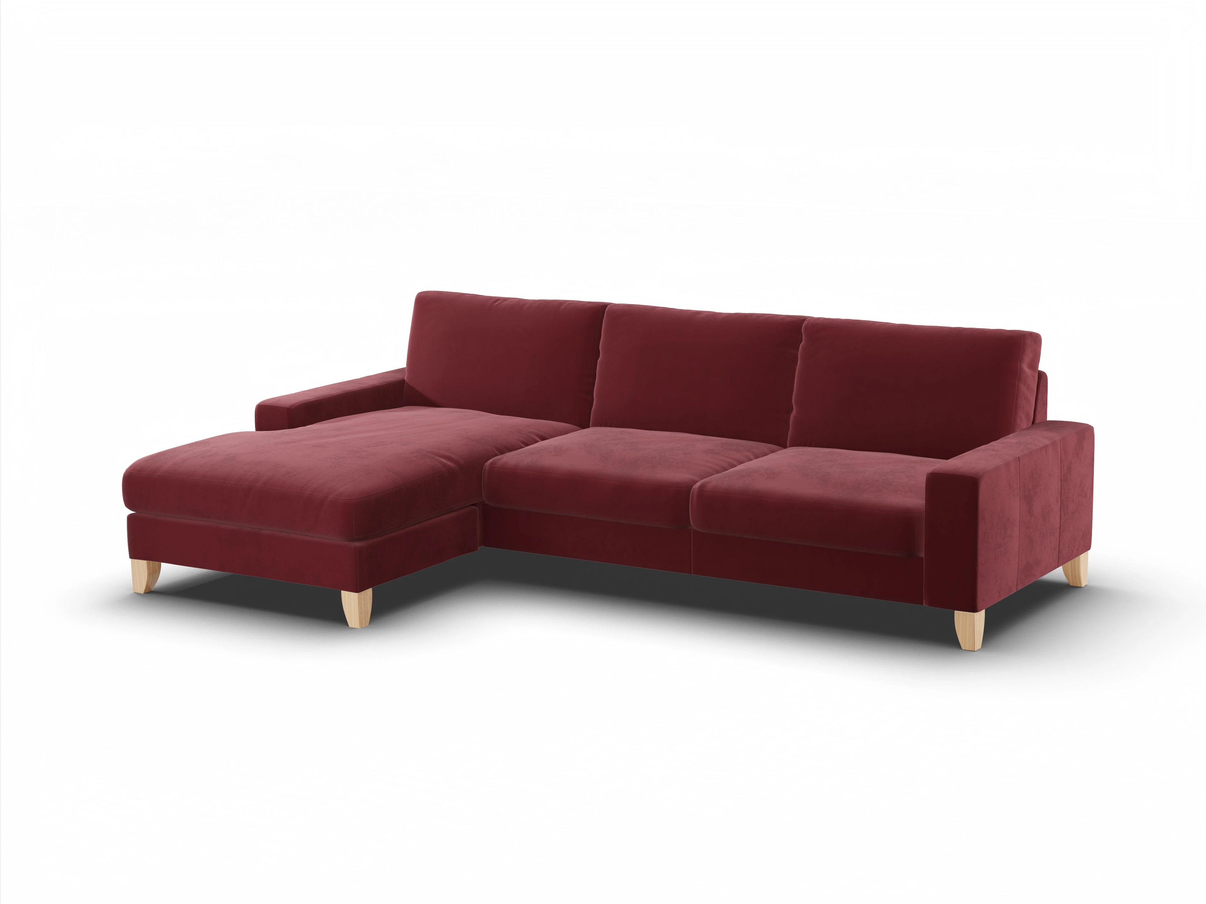 Das Casco Ecksofa besteht aus einem Longchair mit Armlehne links und einem 3-Sitzer mit Armlehne rechts.