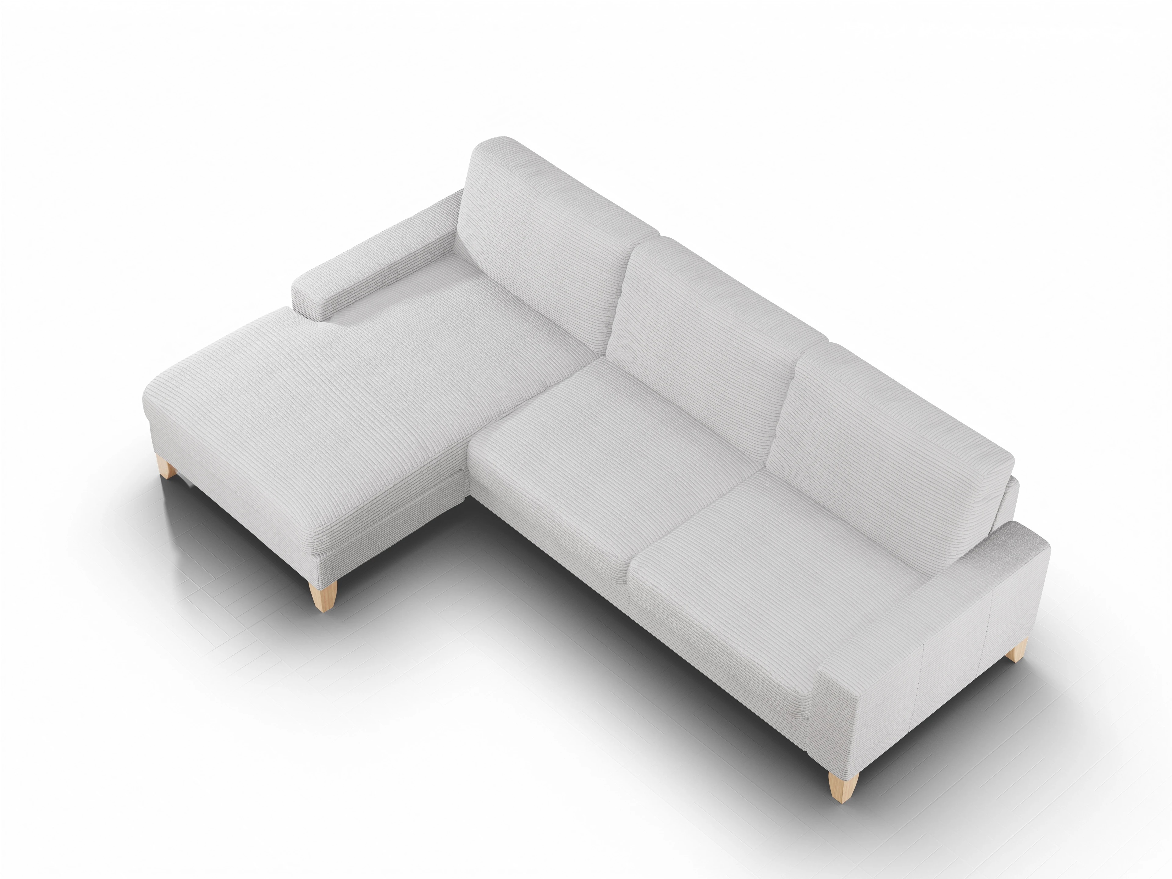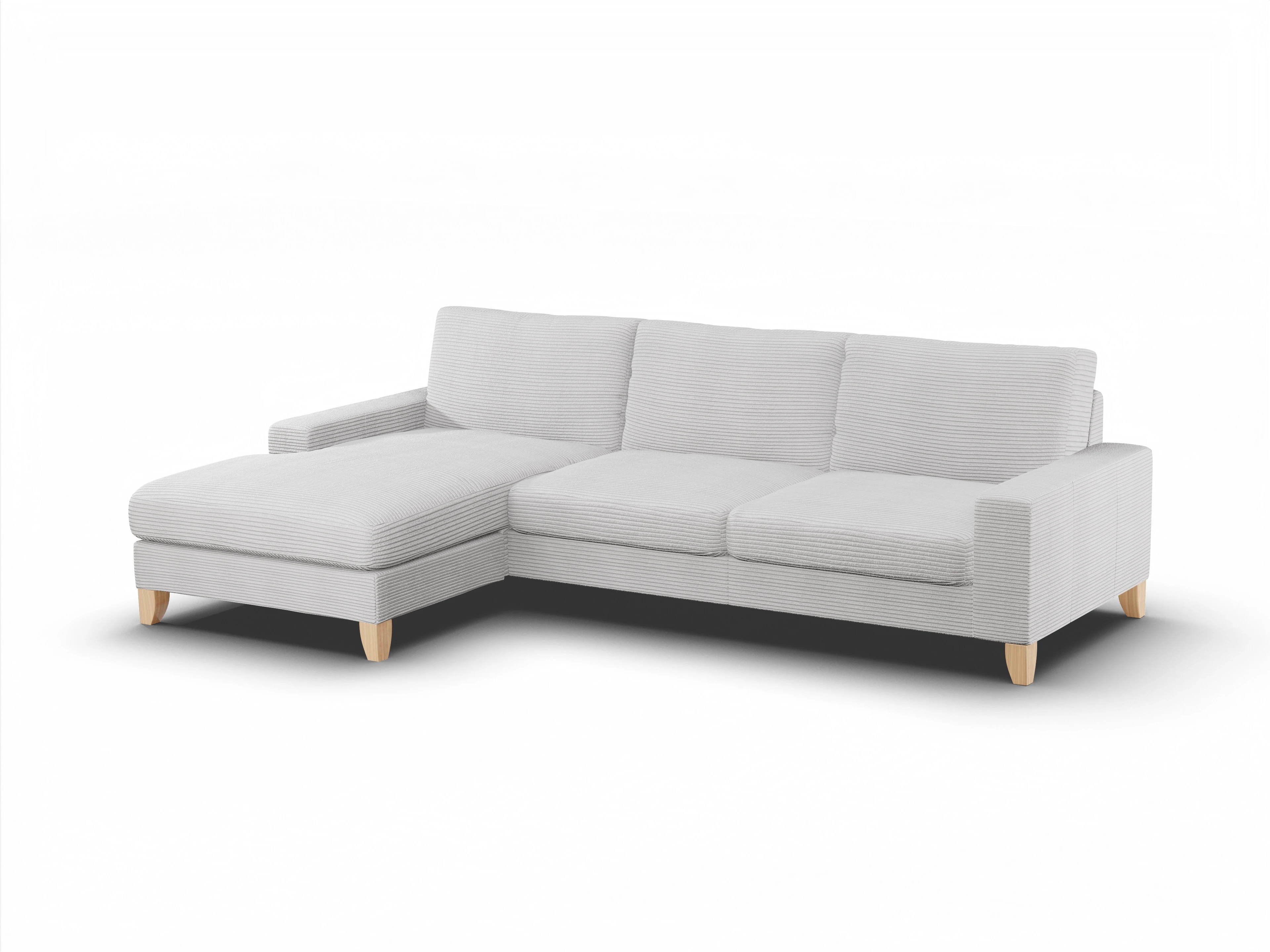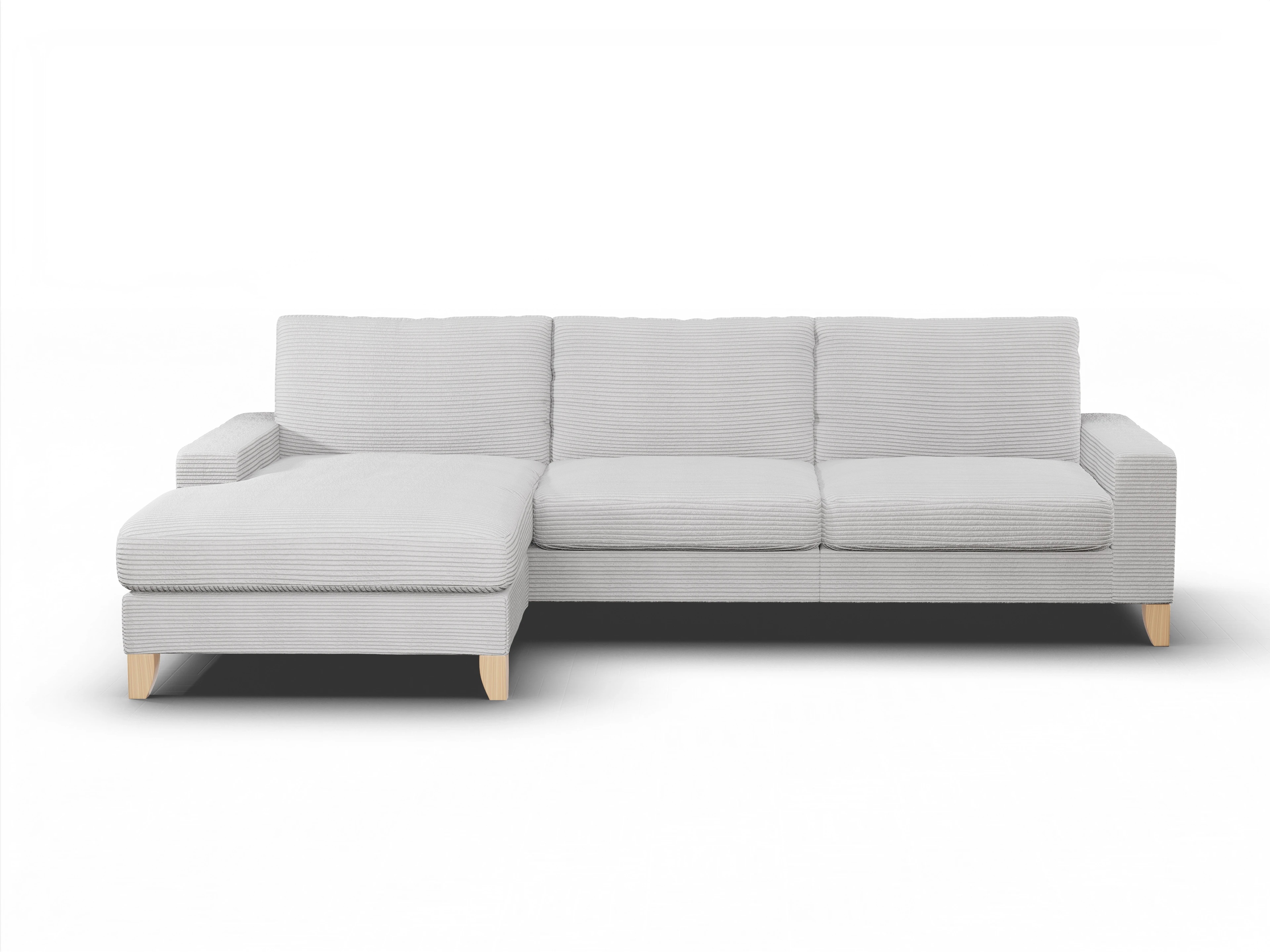 Das Casco Ecksofa besteht aus einem Longchair mit Armlehne links und einem 3-Sitzer mit Armlehne rechts.
