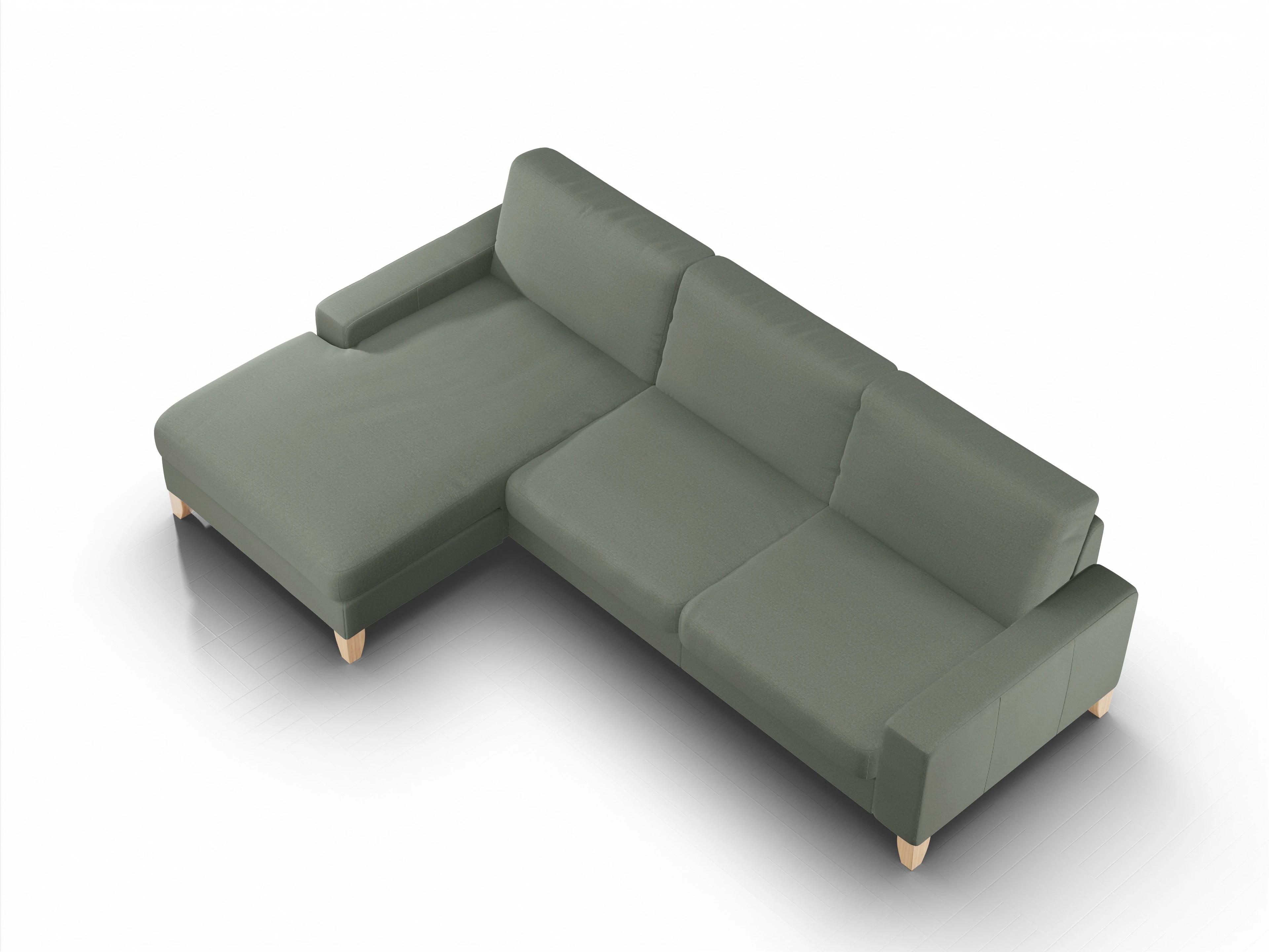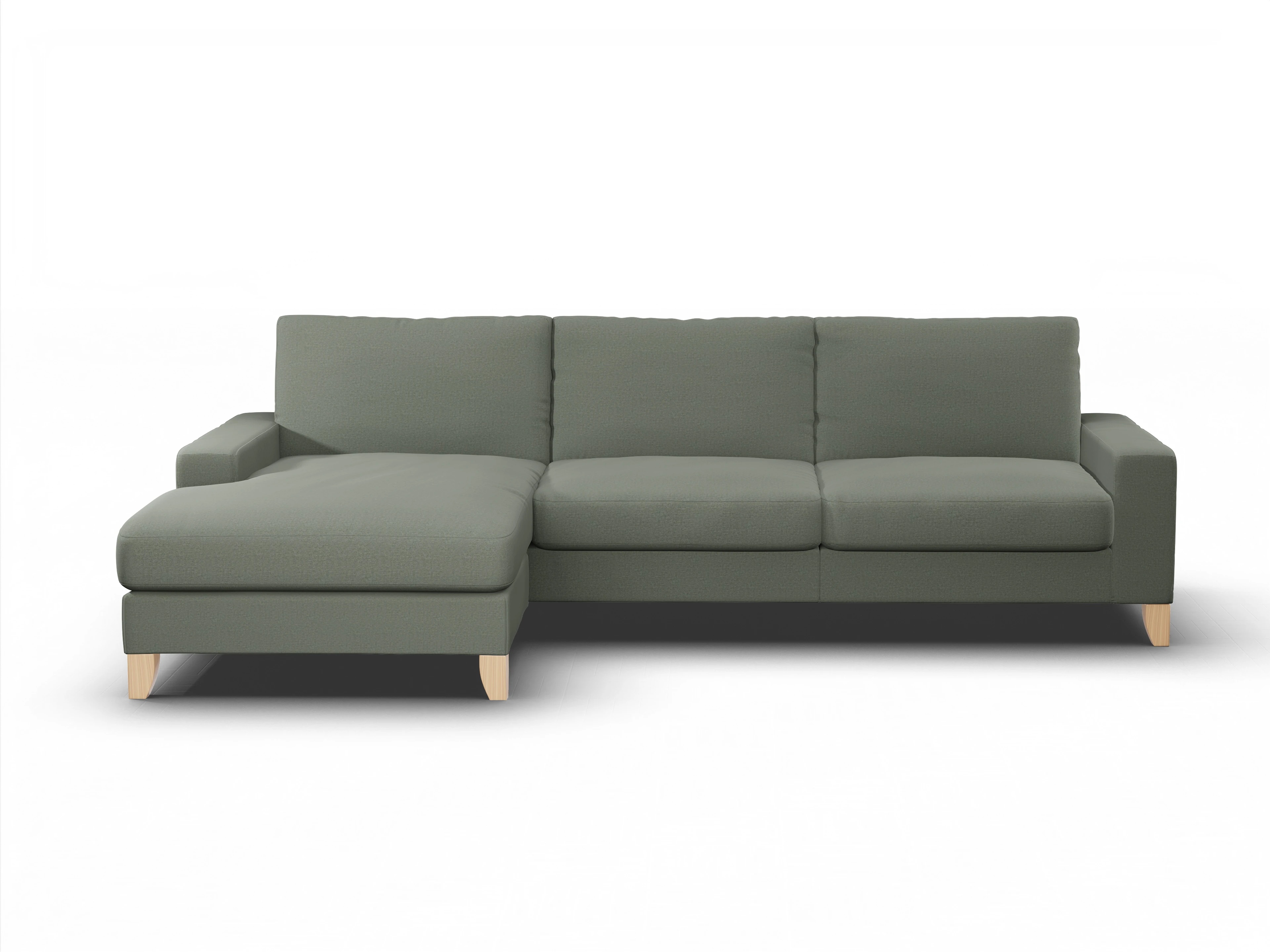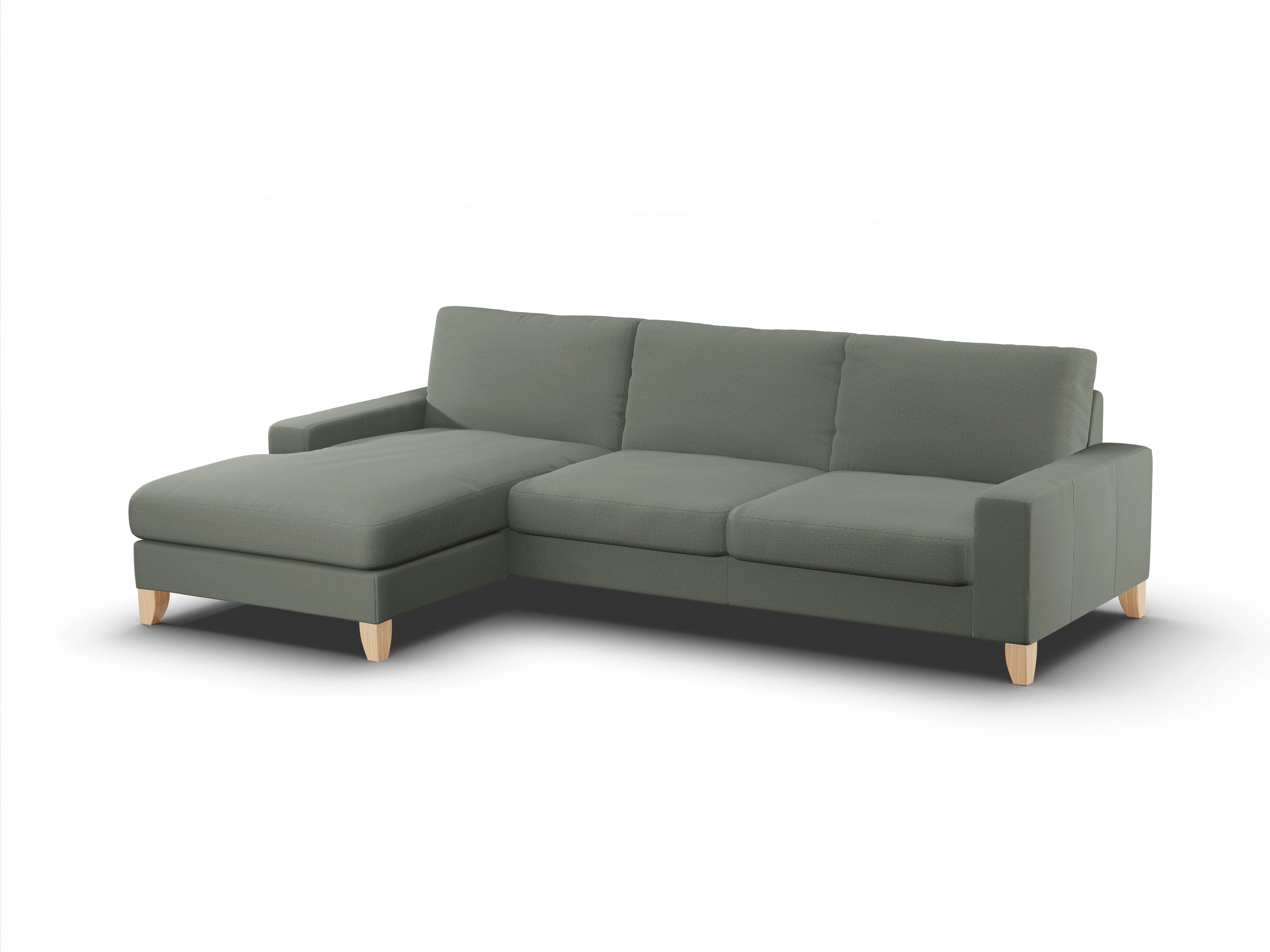 Das Casco Ecksofa besteht aus einem Longchair mit Armlehne links und einem 3-Sitzer mit Armlehne rechts.