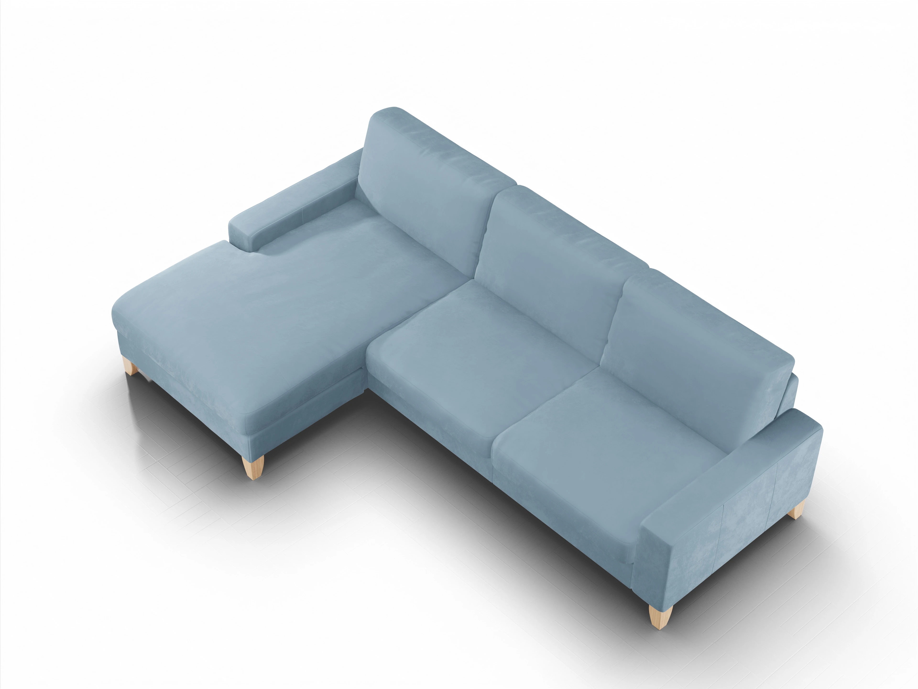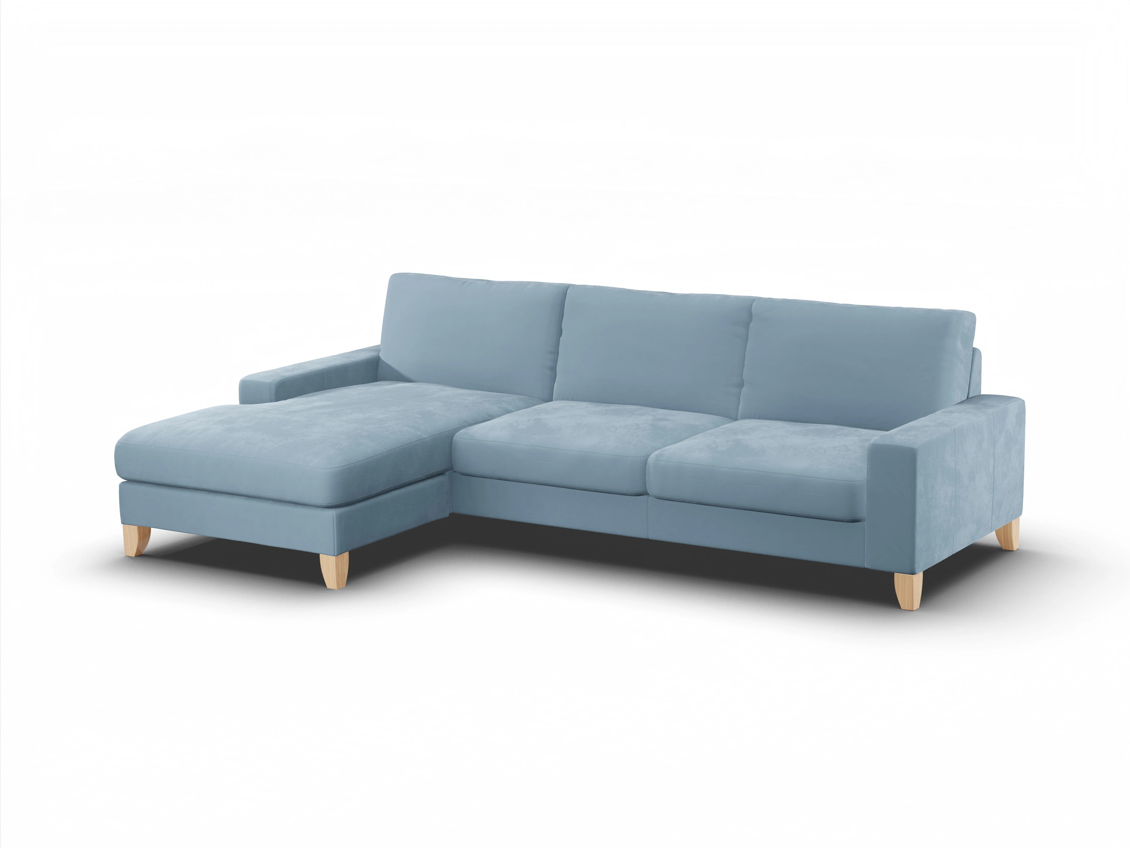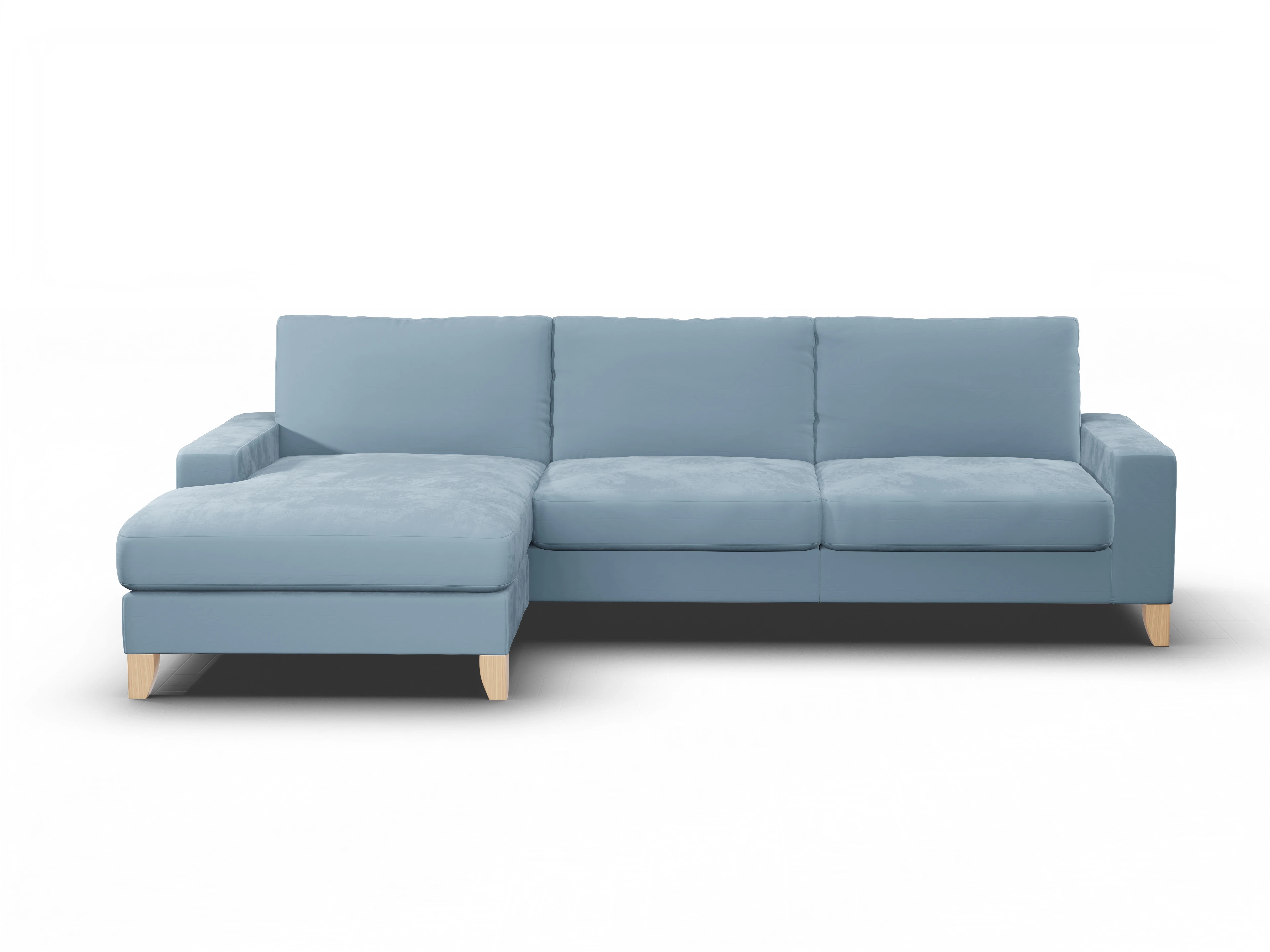 Das Casco Ecksofa besteht aus einem Longchair mit Armlehne links und einem 3-Sitzer mit Armlehne rechts.