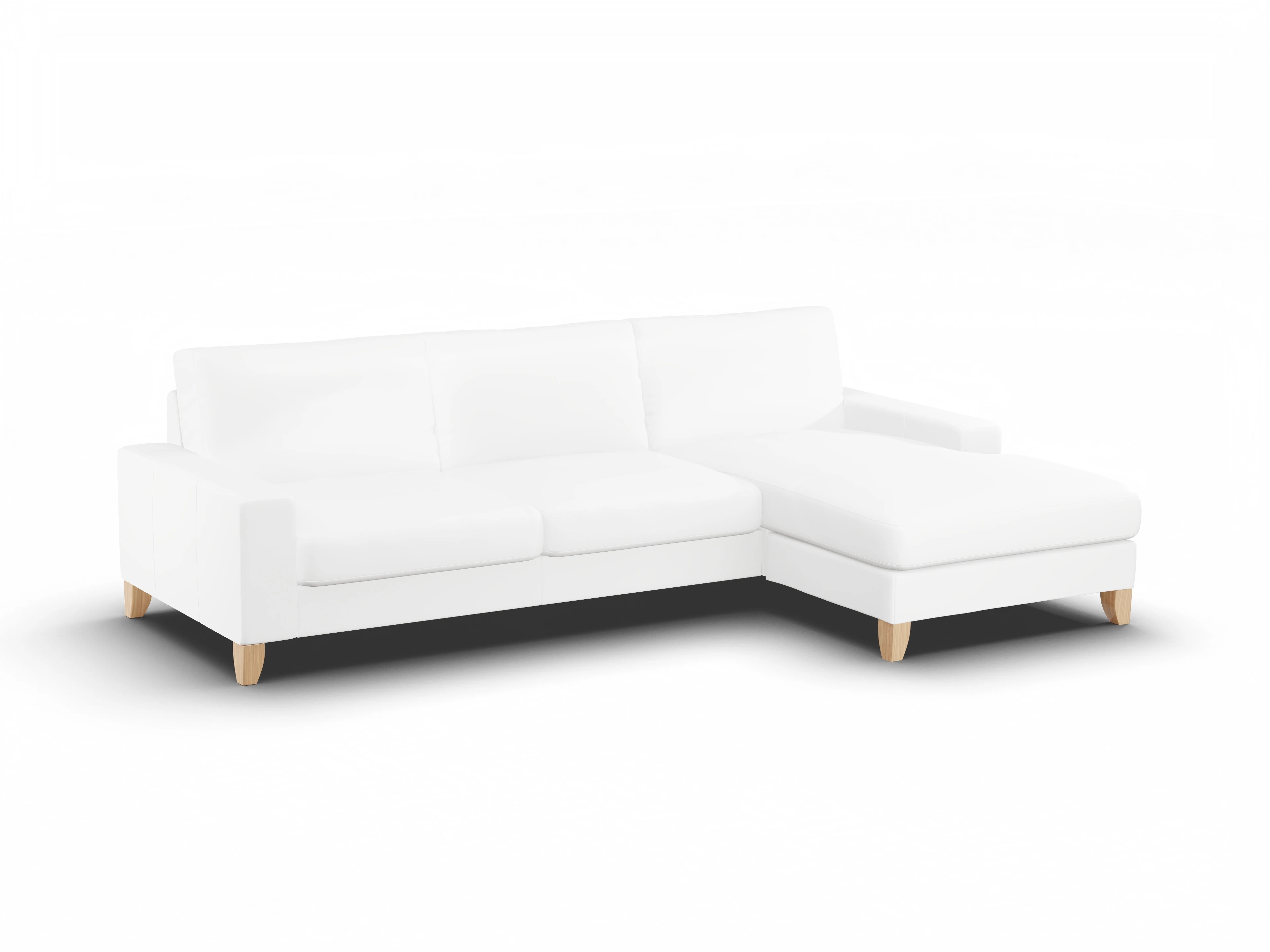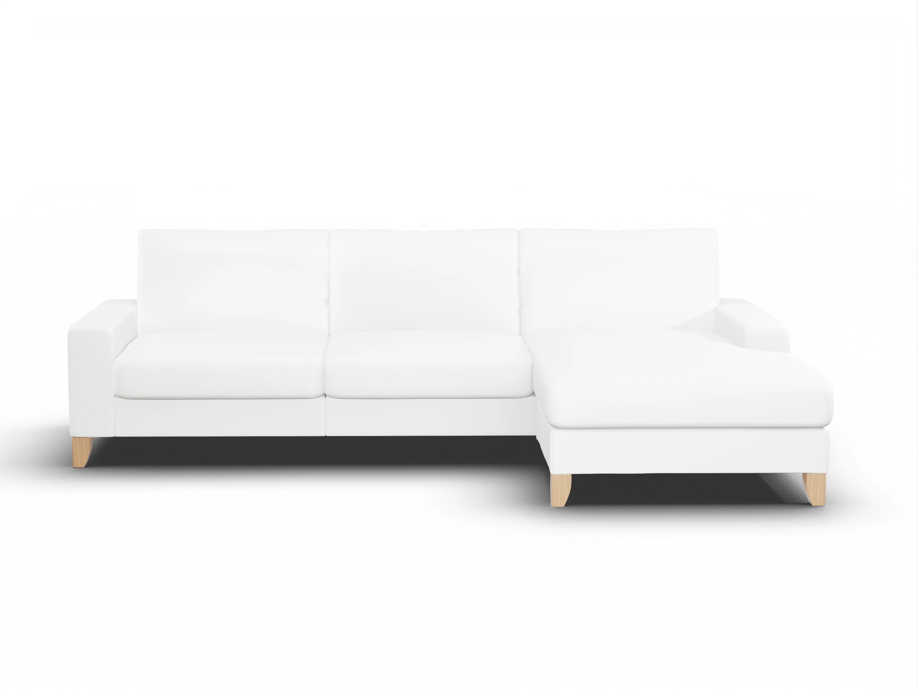 Das Casco Ecksofa besteht aus einem 3-Sitzer mit Armlehne links und einem Longchair mit Armlehne rechts.