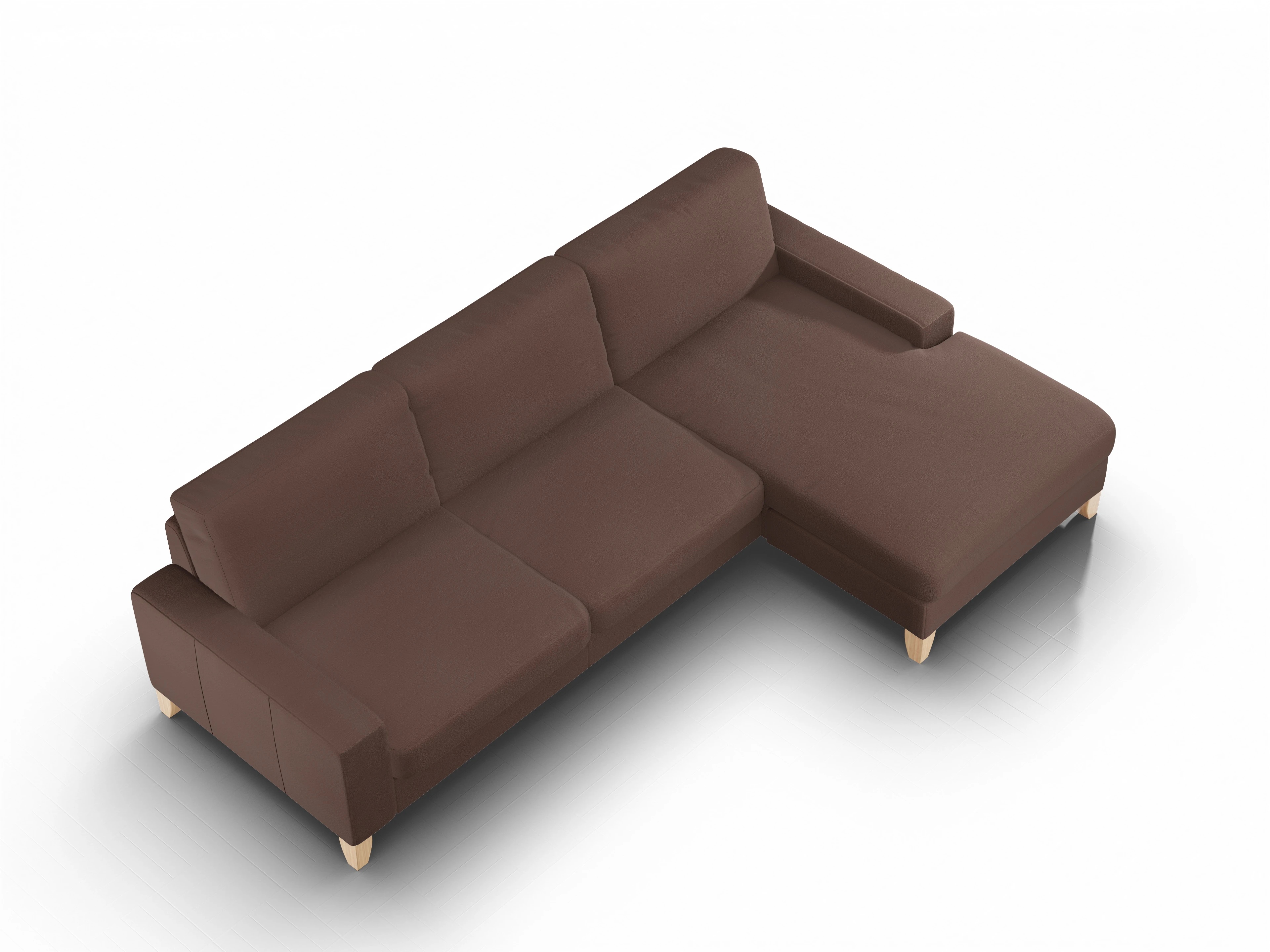 Das Casco Ecksofa besteht aus einem 3-Sitzer mit Armlehne links und einem Longchair mit Armlehne rechts.