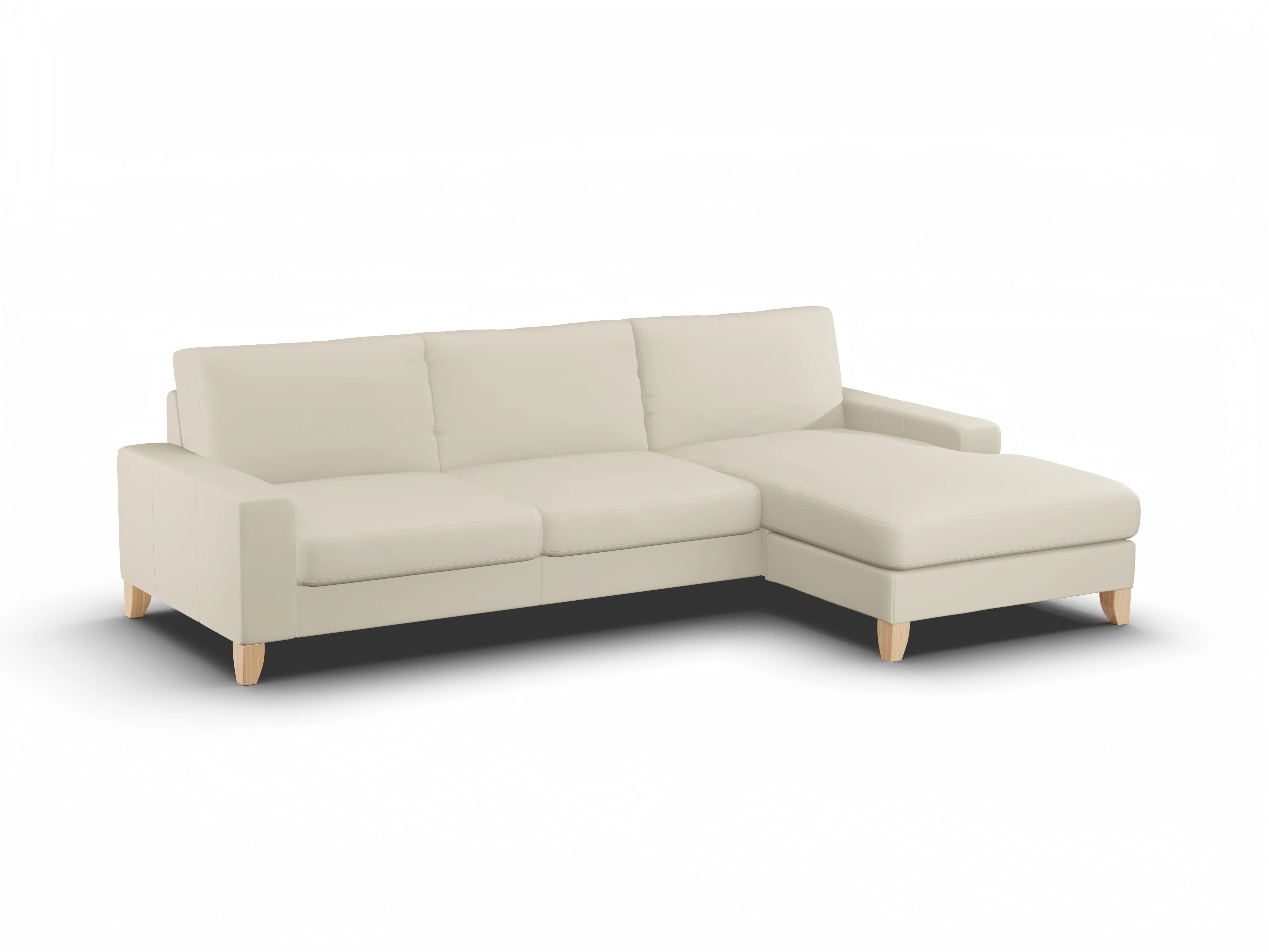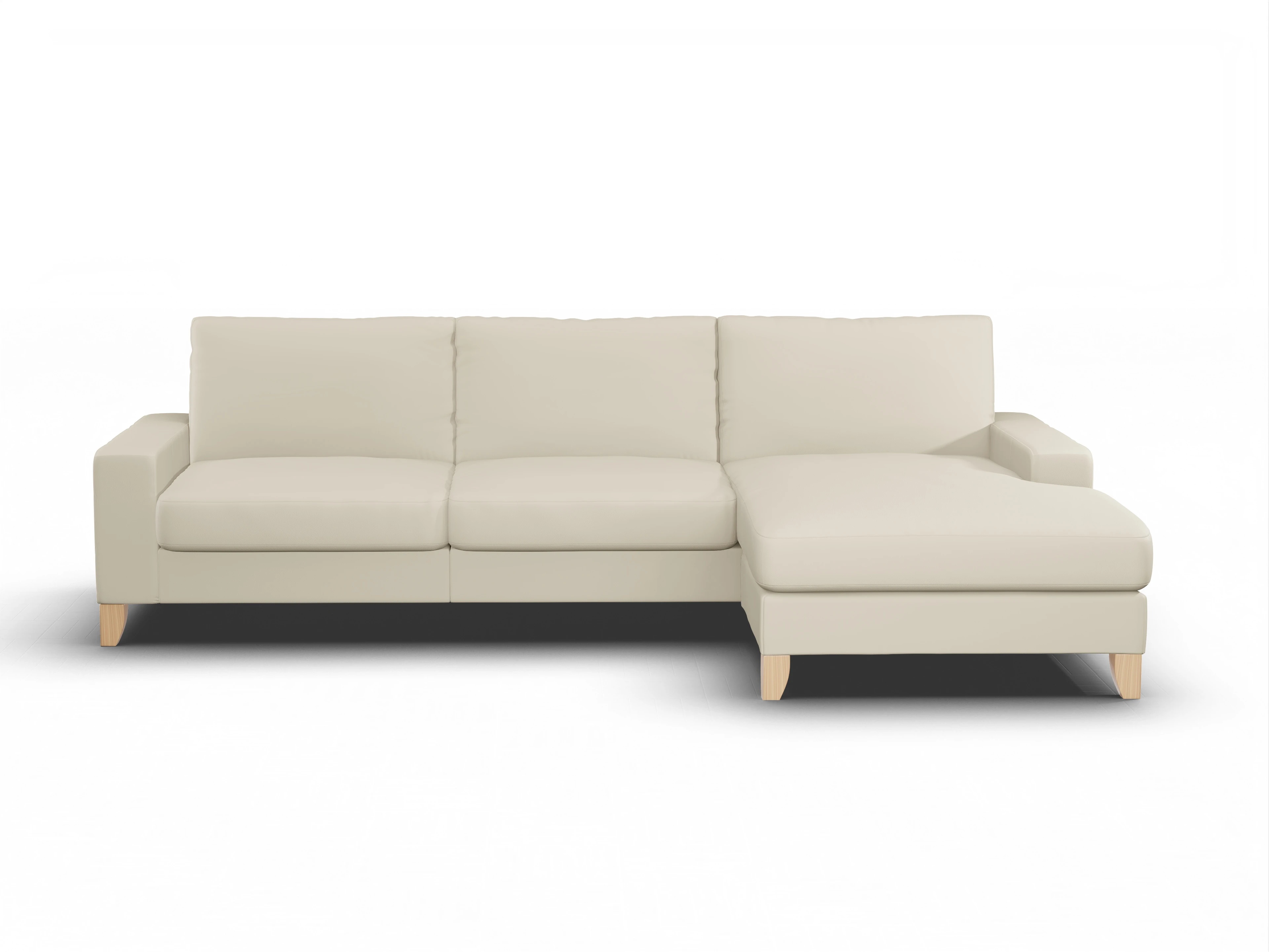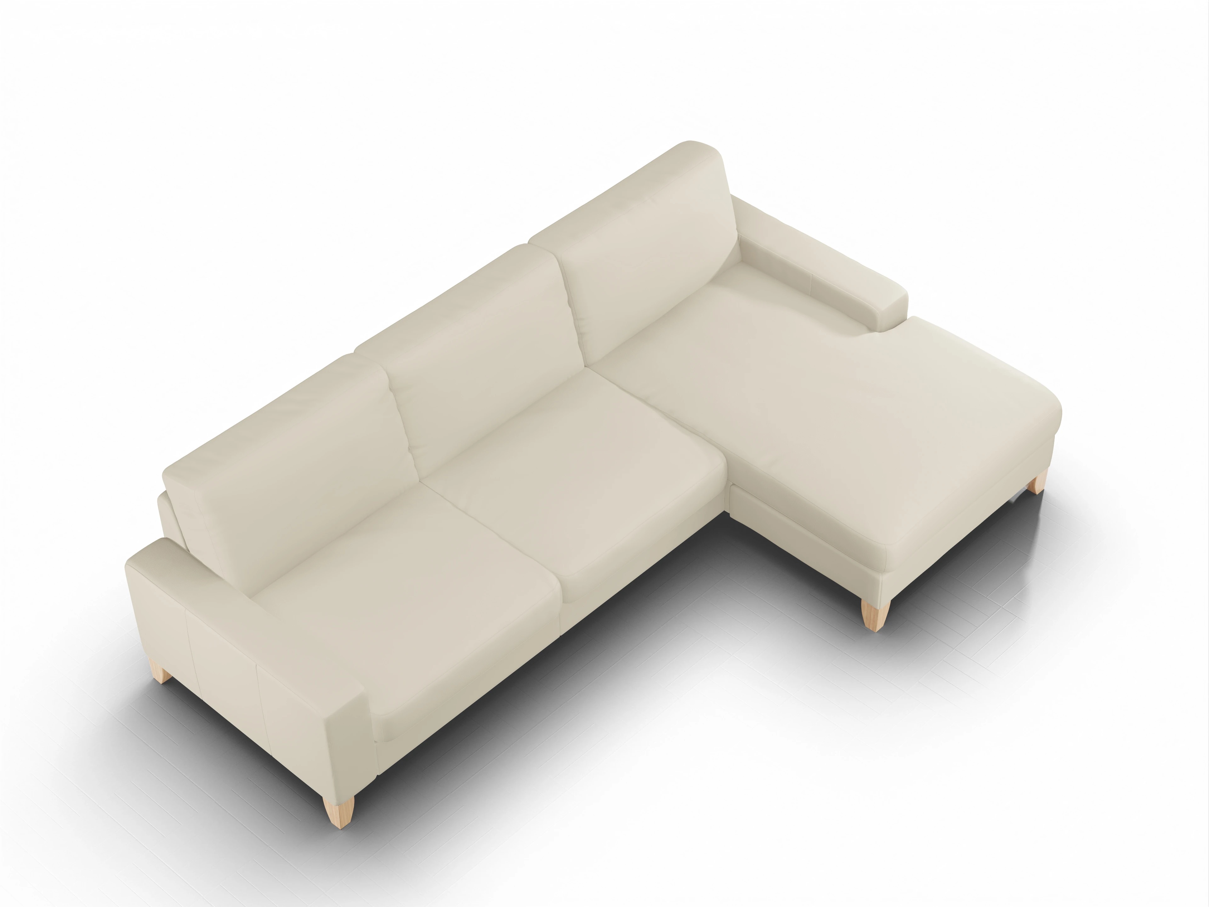 Das Casco Ecksofa besteht aus einem 3-Sitzer mit Armlehne links und einem Longchair mit Armlehne rechts.