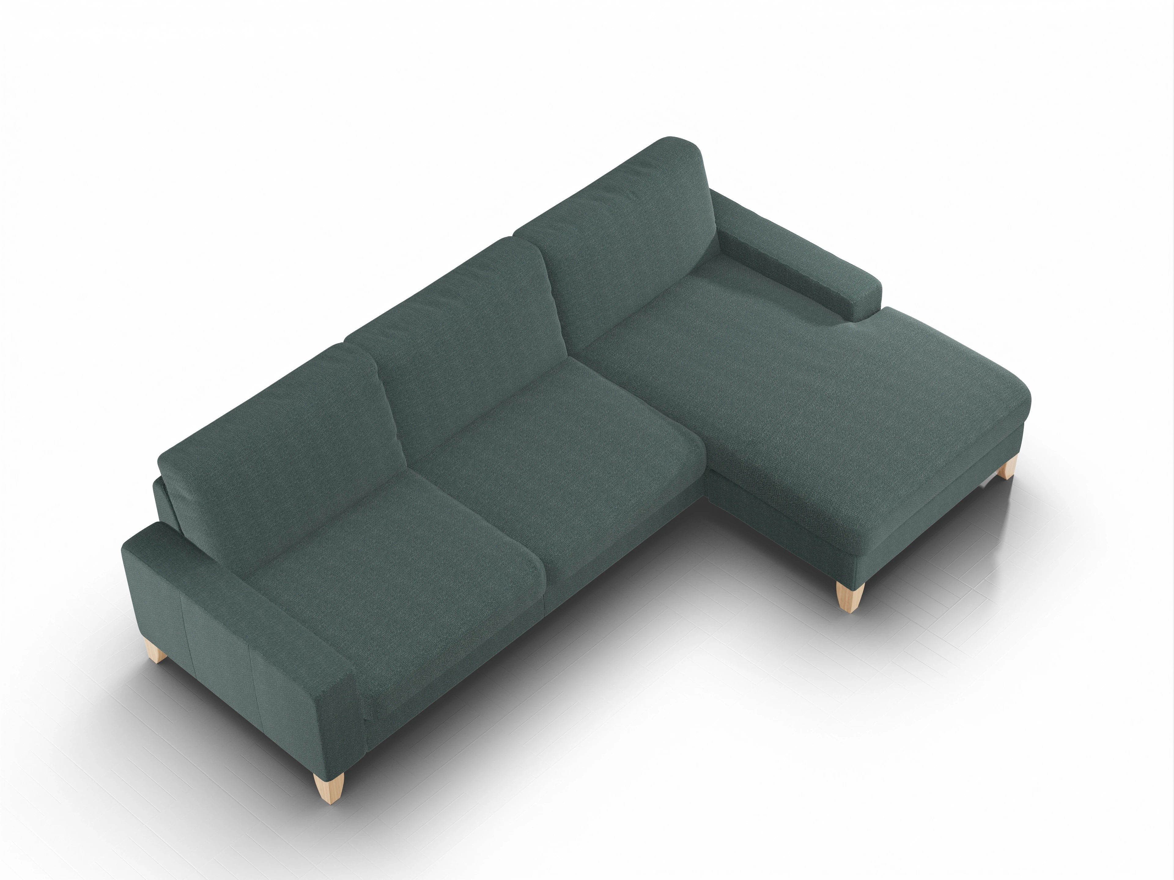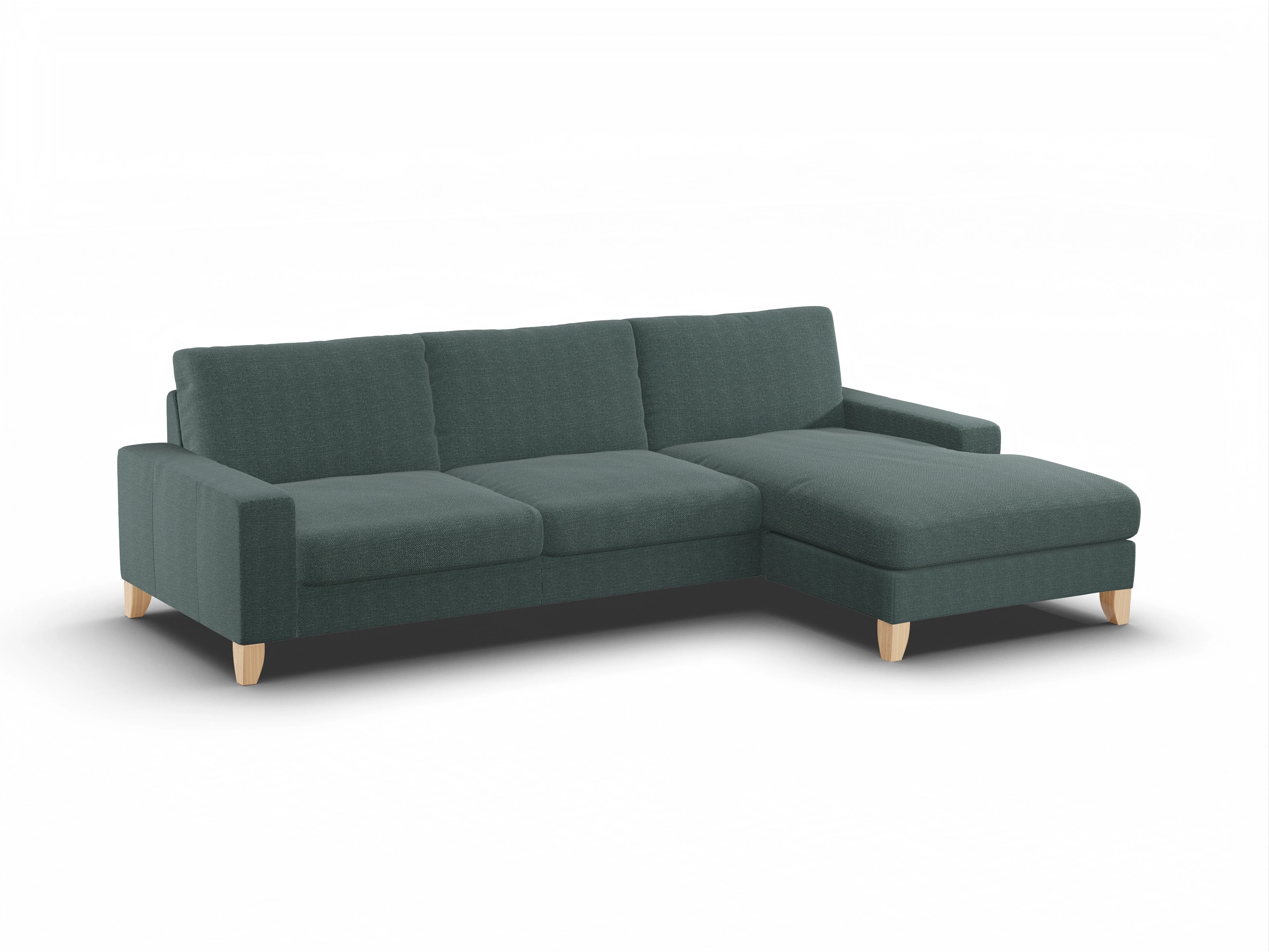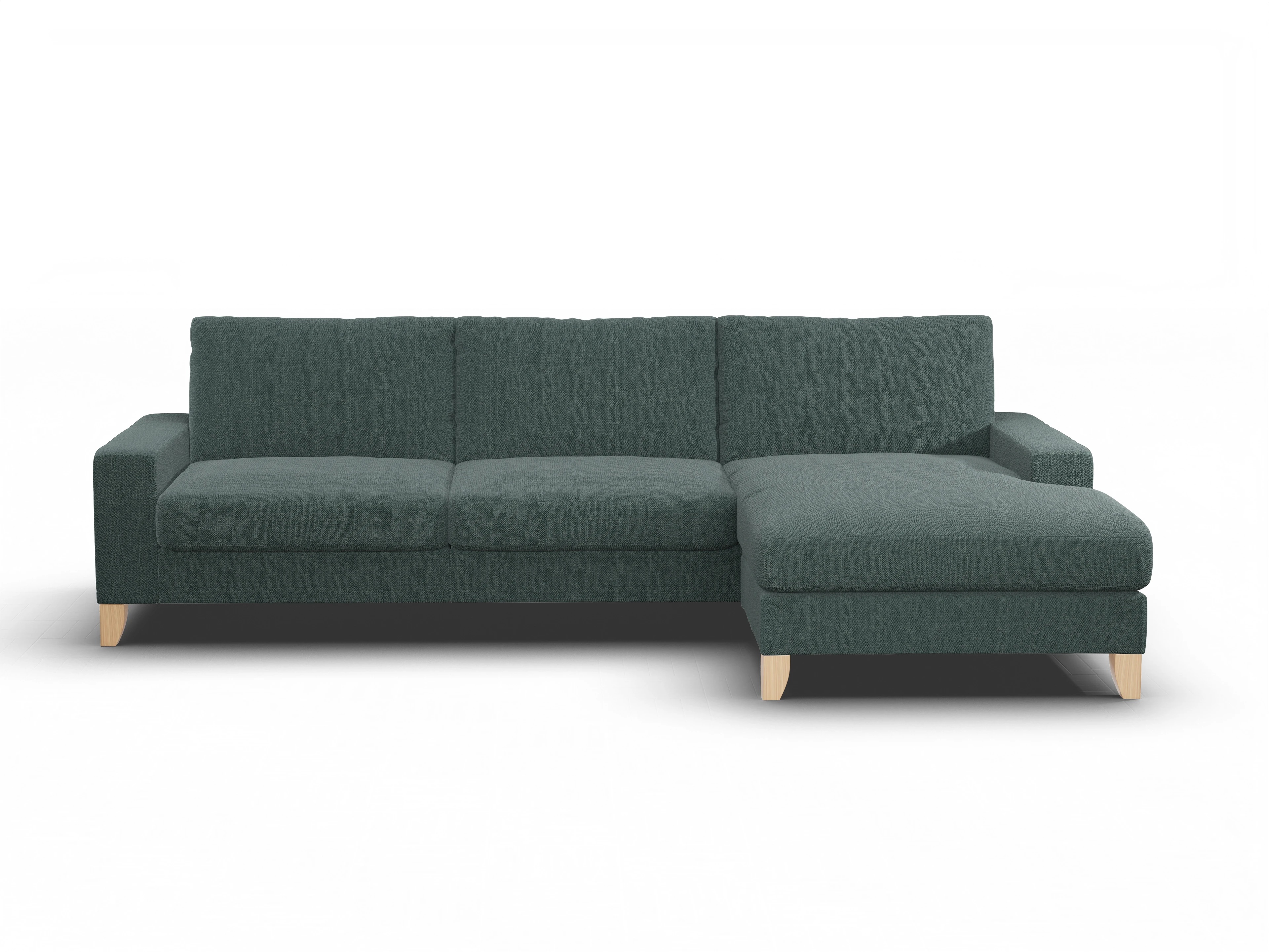 Das Casco Ecksofa besteht aus einem 3-Sitzer mit Armlehne links und einem Longchair mit Armlehne rechts.