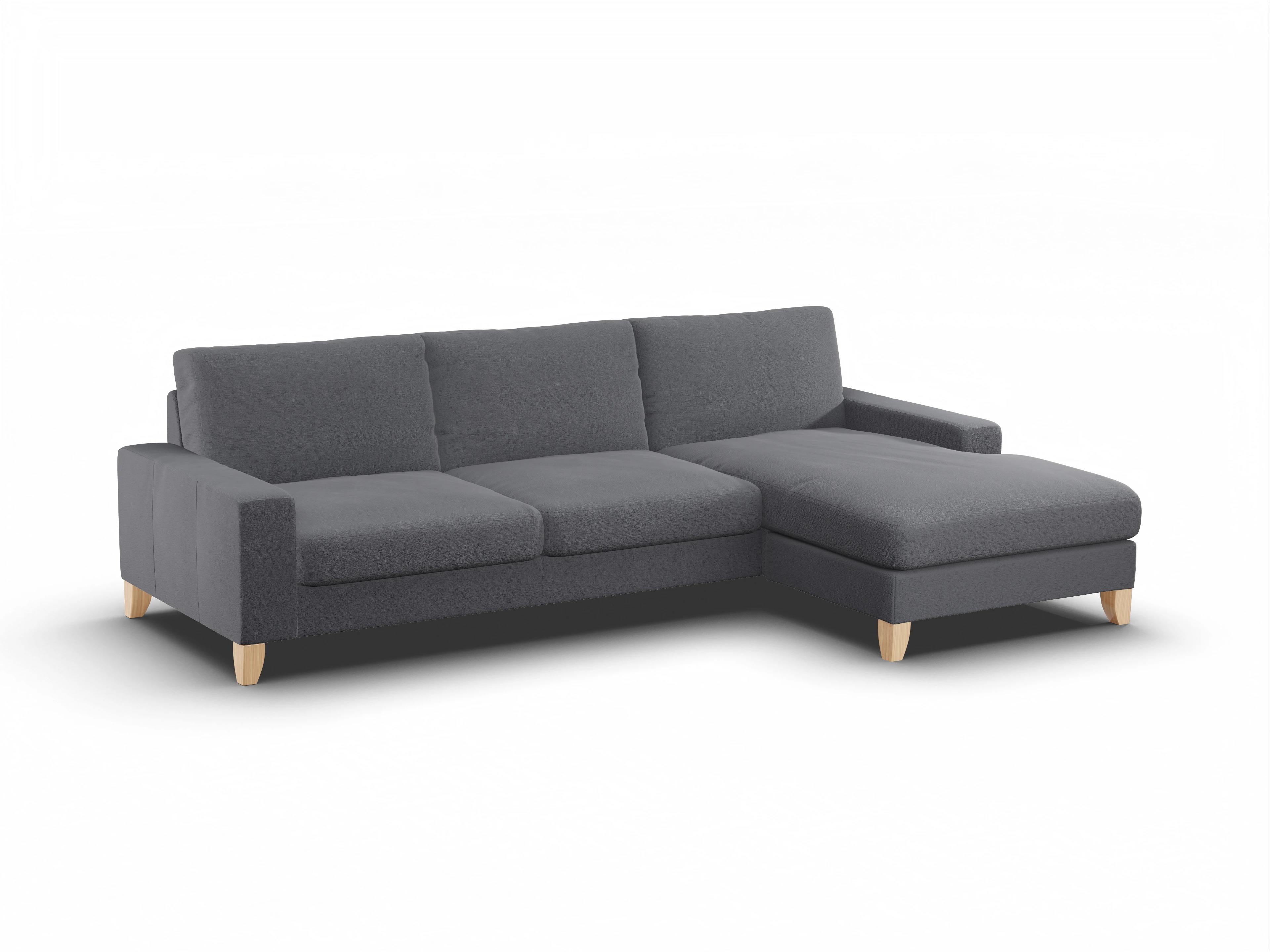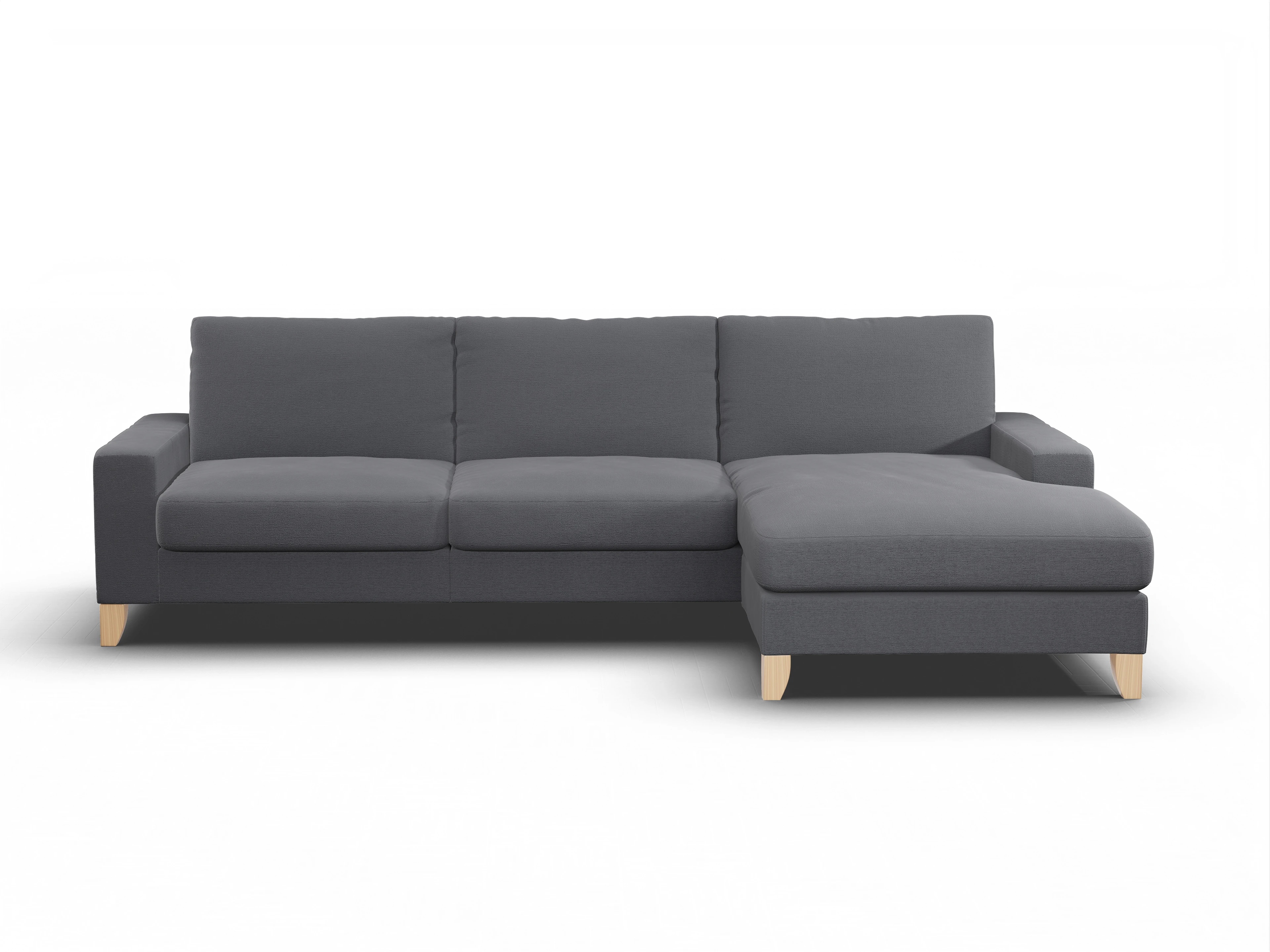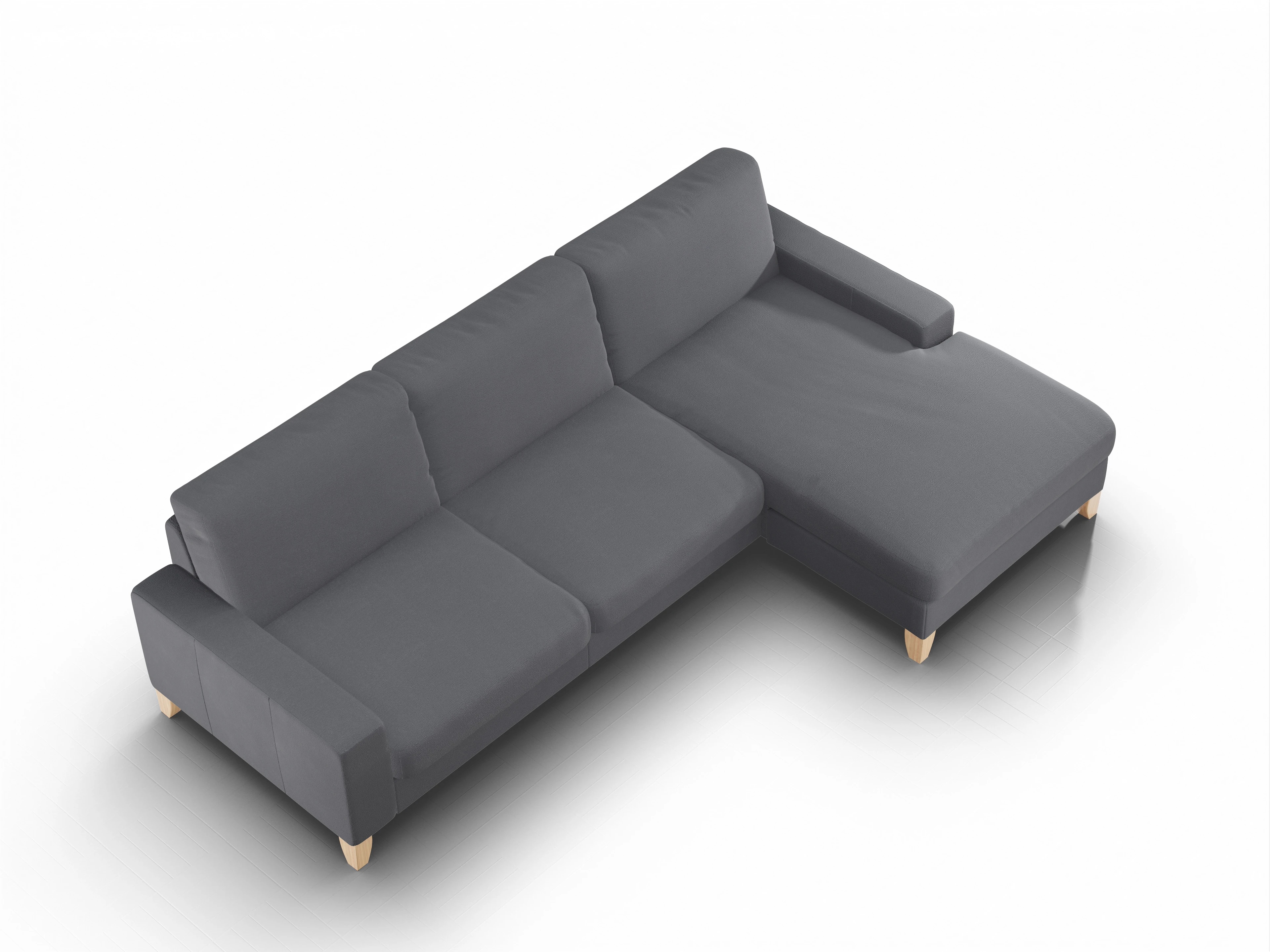 Das Casco Ecksofa besteht aus einem 3-Sitzer mit Armlehne links und einem Longchair mit Armlehne rechts.
