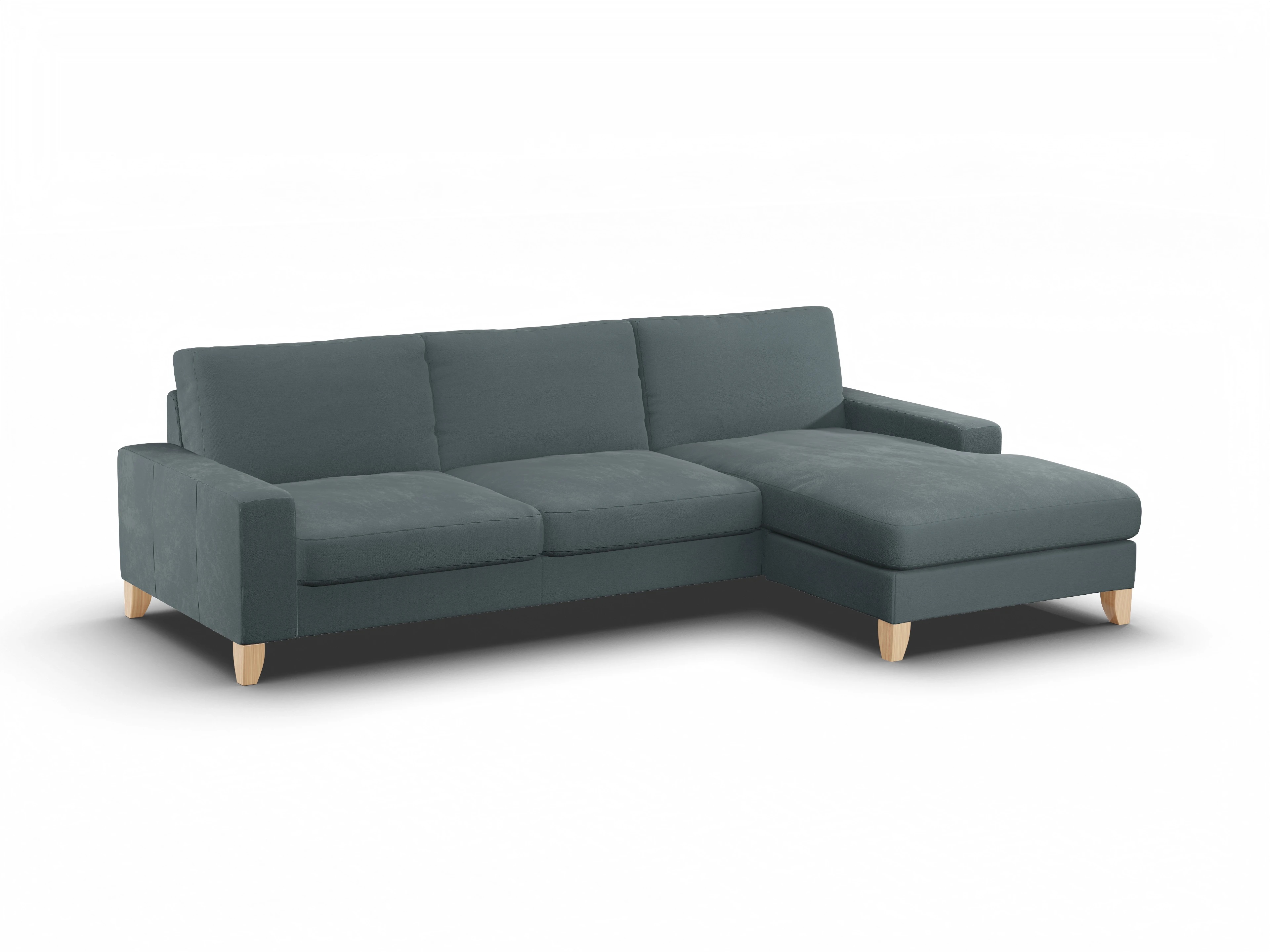 Das Casco Ecksofa besteht aus einem 3-Sitzer mit Armlehne links und einem Longchair mit Armlehne rechts.