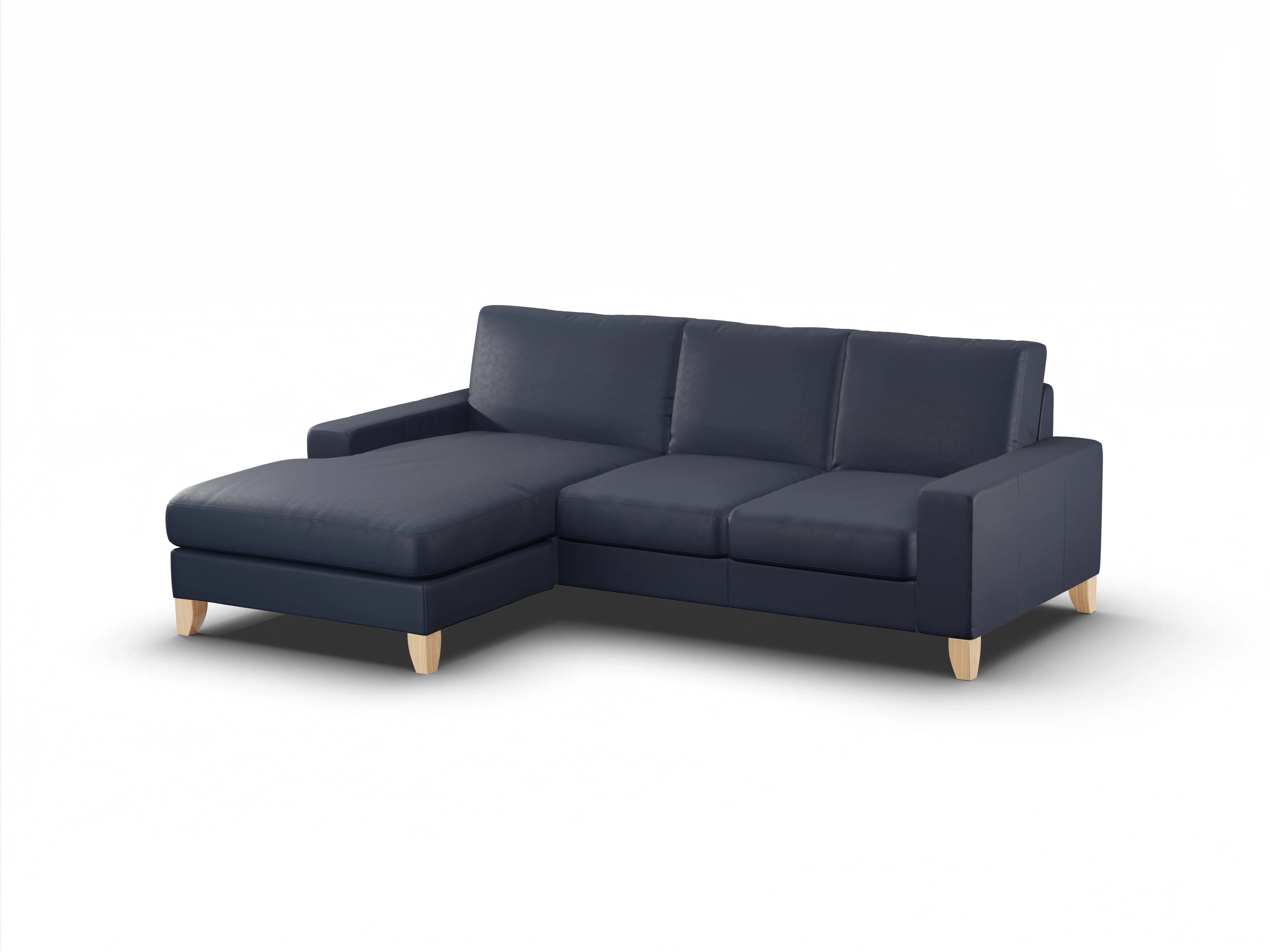 Das Casco Ecksofa besteht aus einem Longchair mit einer Armlehne links, einem 1-Sitzer ohne Armlehne und einem 1-Sitzer mit einer Armlehne rechts.