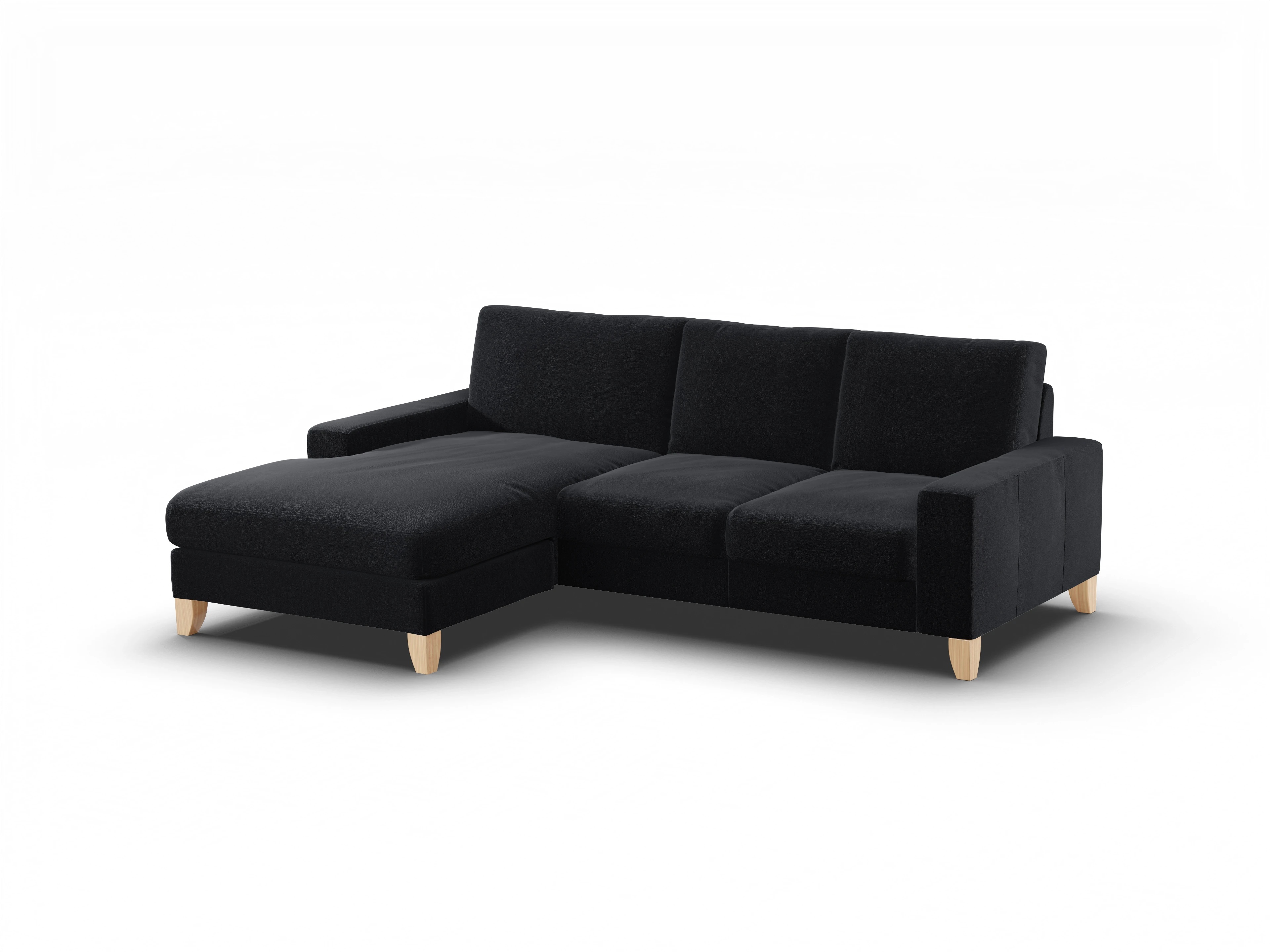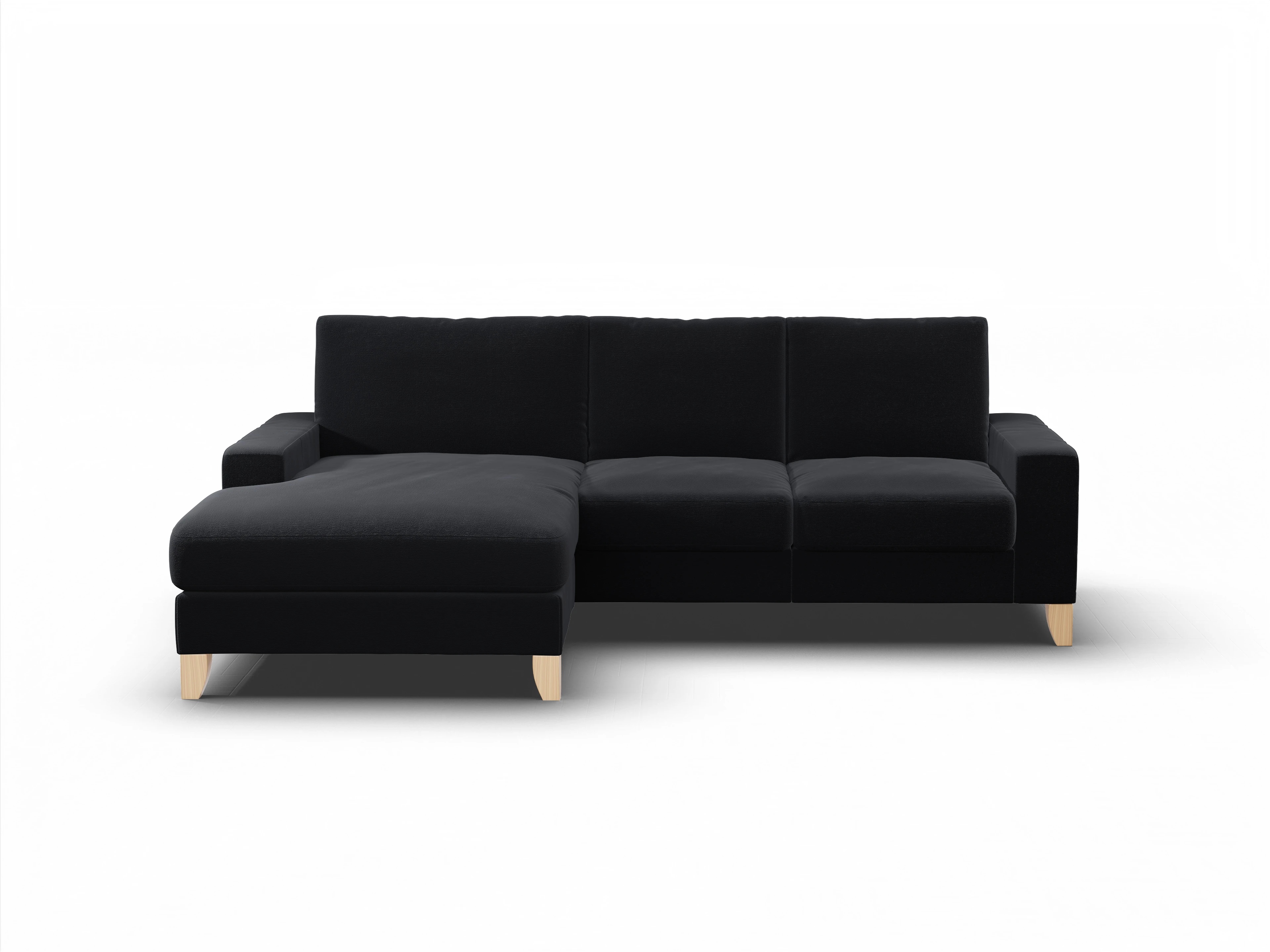 Das Casco Ecksofa besteht aus einem Longchair mit einer Armlehne links, einem 1-Sitzer ohne Armlehne und einem 1-Sitzer mit einer Armlehne rechts.