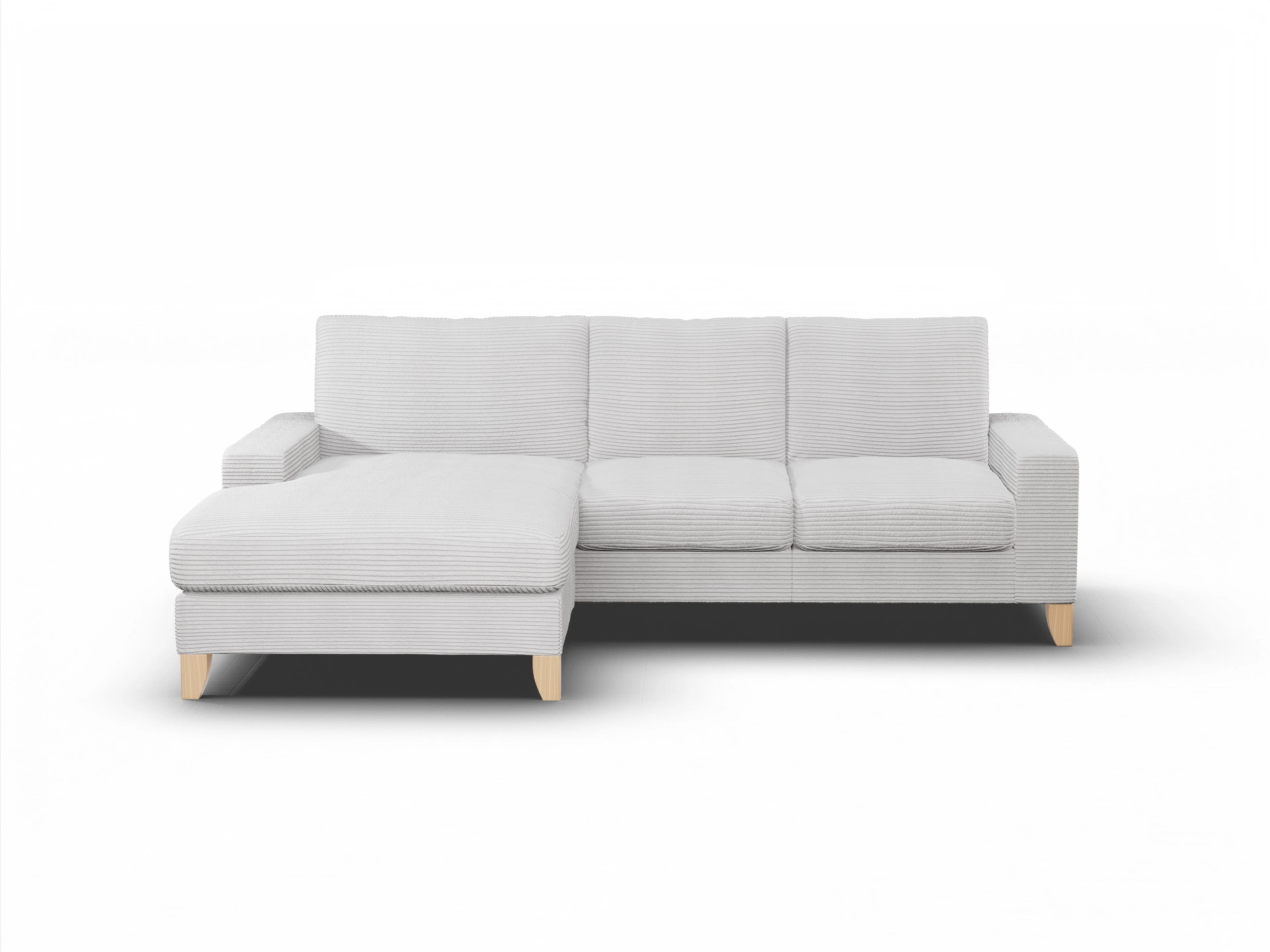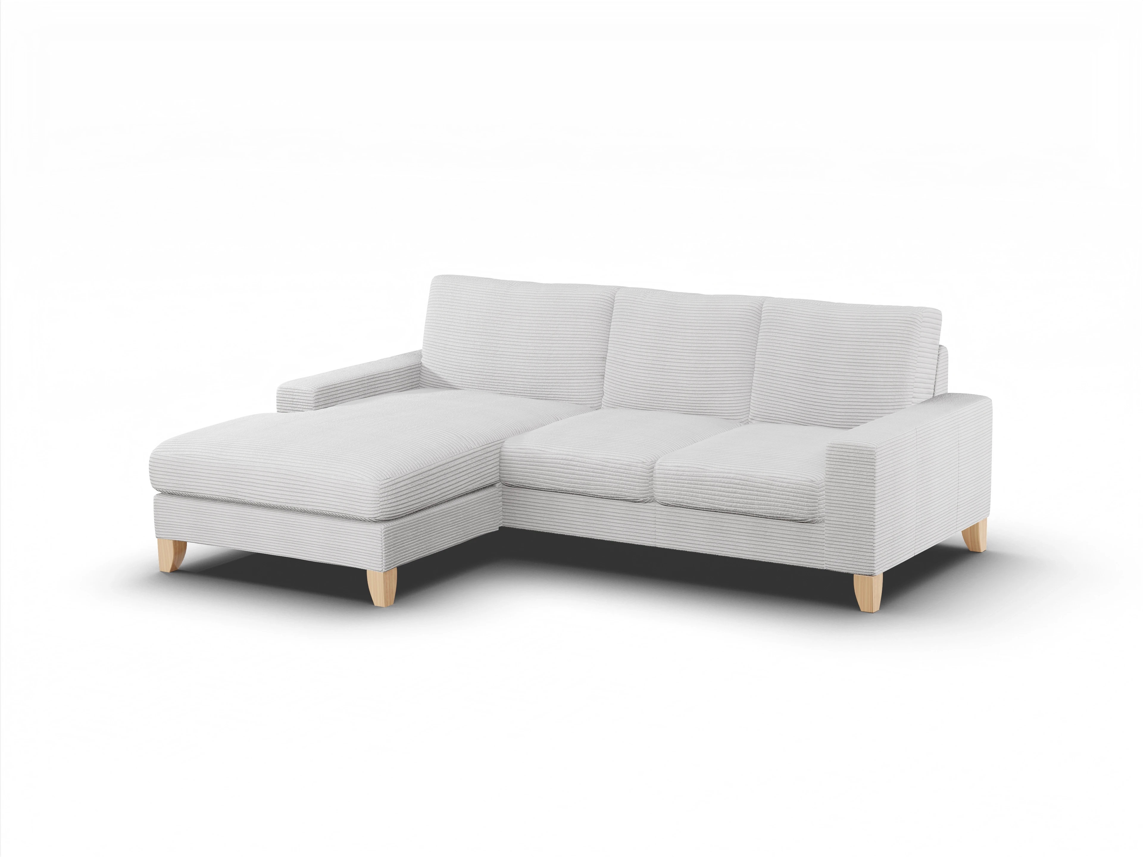 Das Casco Ecksofa besteht aus einem Longchair mit einer Armlehne links, einem 1-Sitzer ohne Armlehne und einem 1-Sitzer mit einer Armlehne rechts.