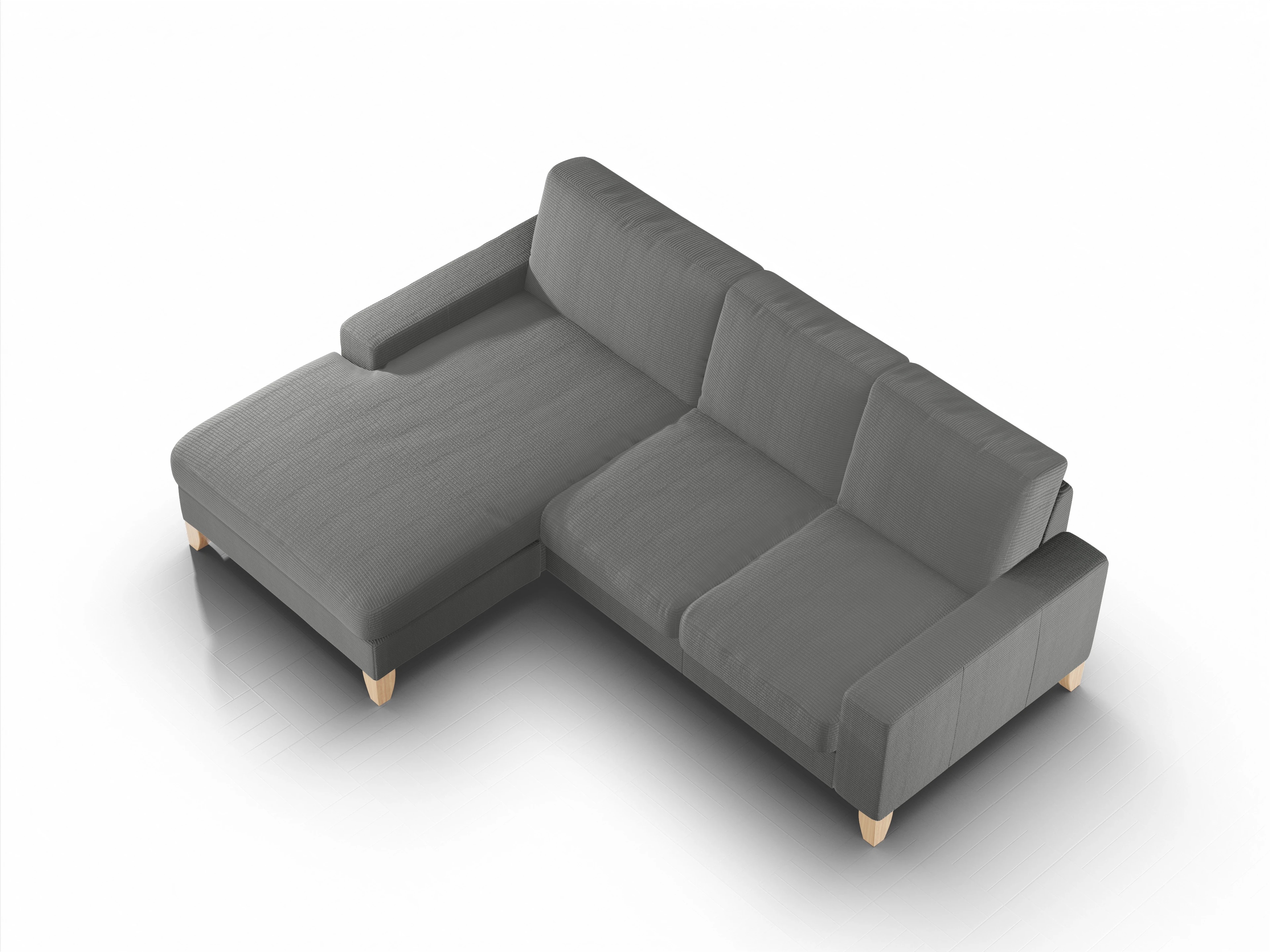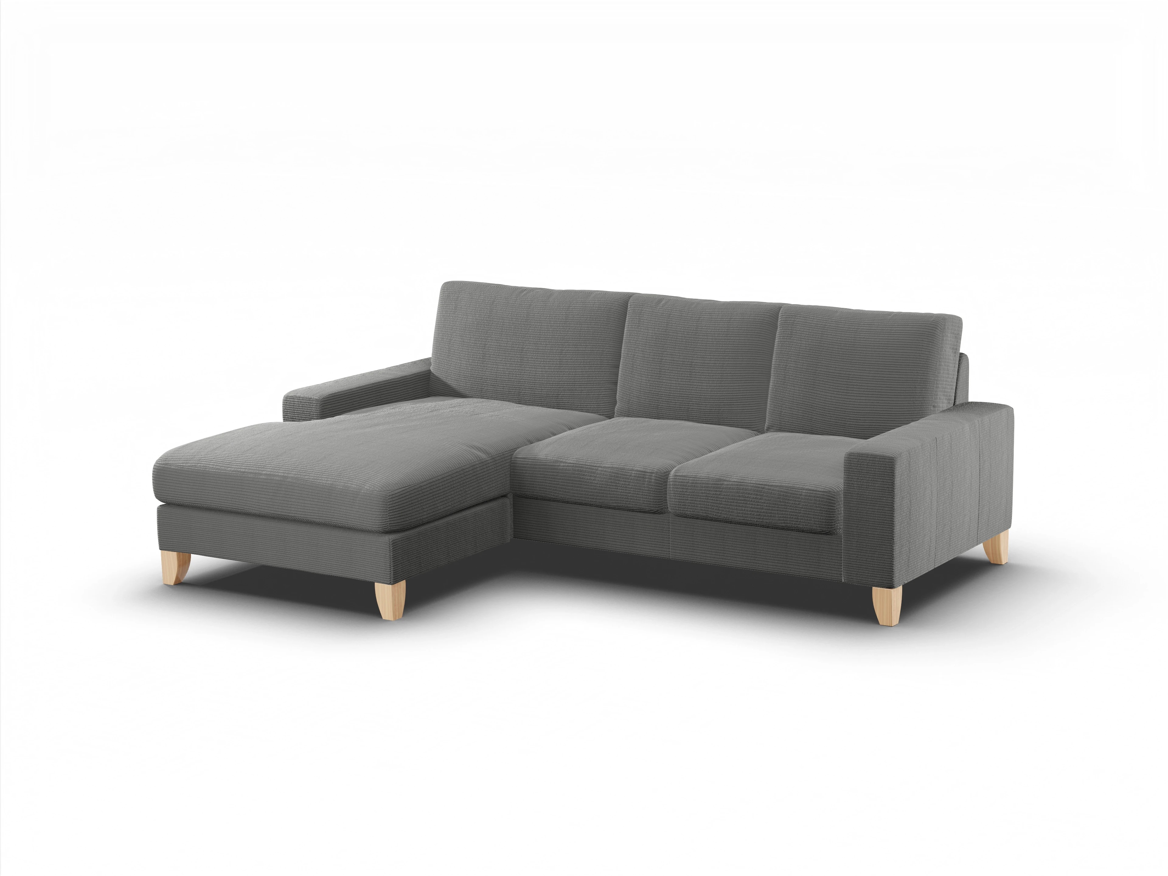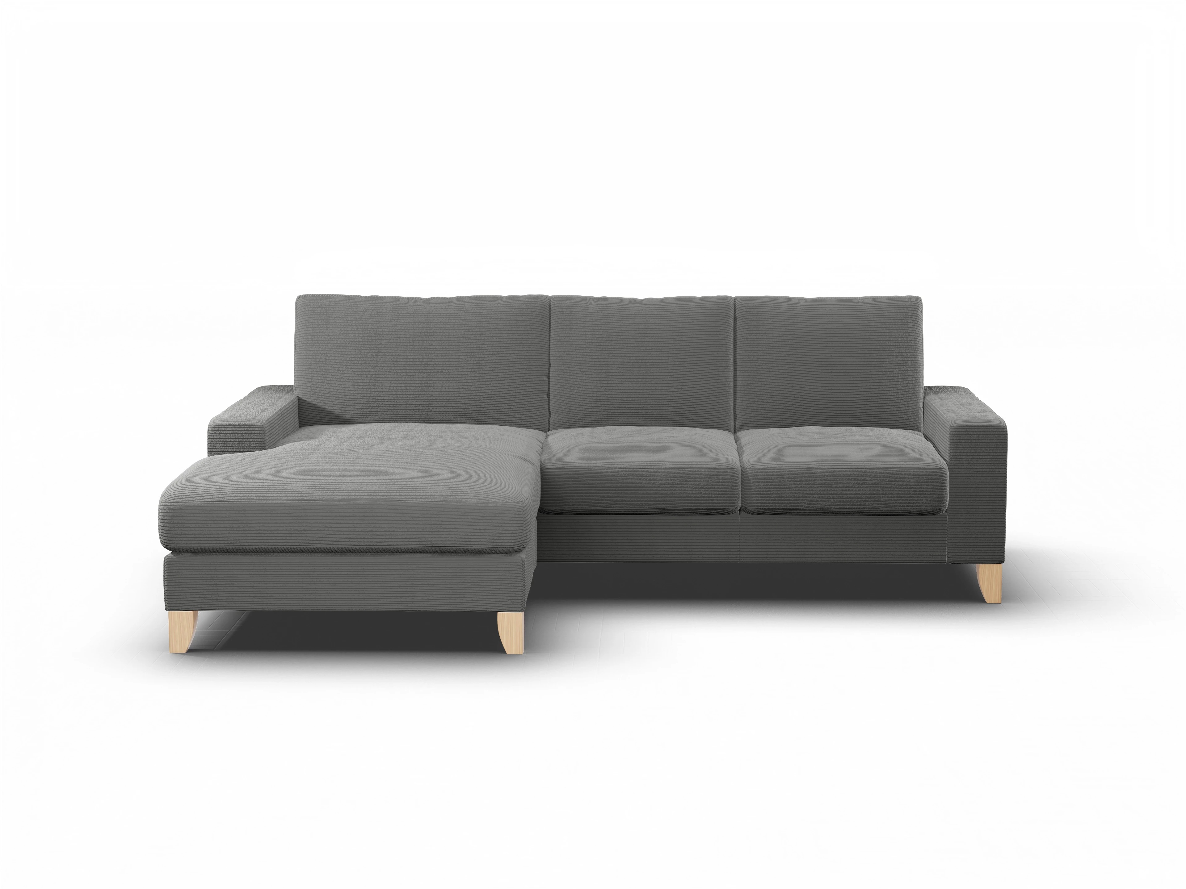 Das Casco Ecksofa besteht aus einem Longchair mit einer Armlehne links, einem 1-Sitzer ohne Armlehne und einem 1-Sitzer mit einer Armlehne rechts.
