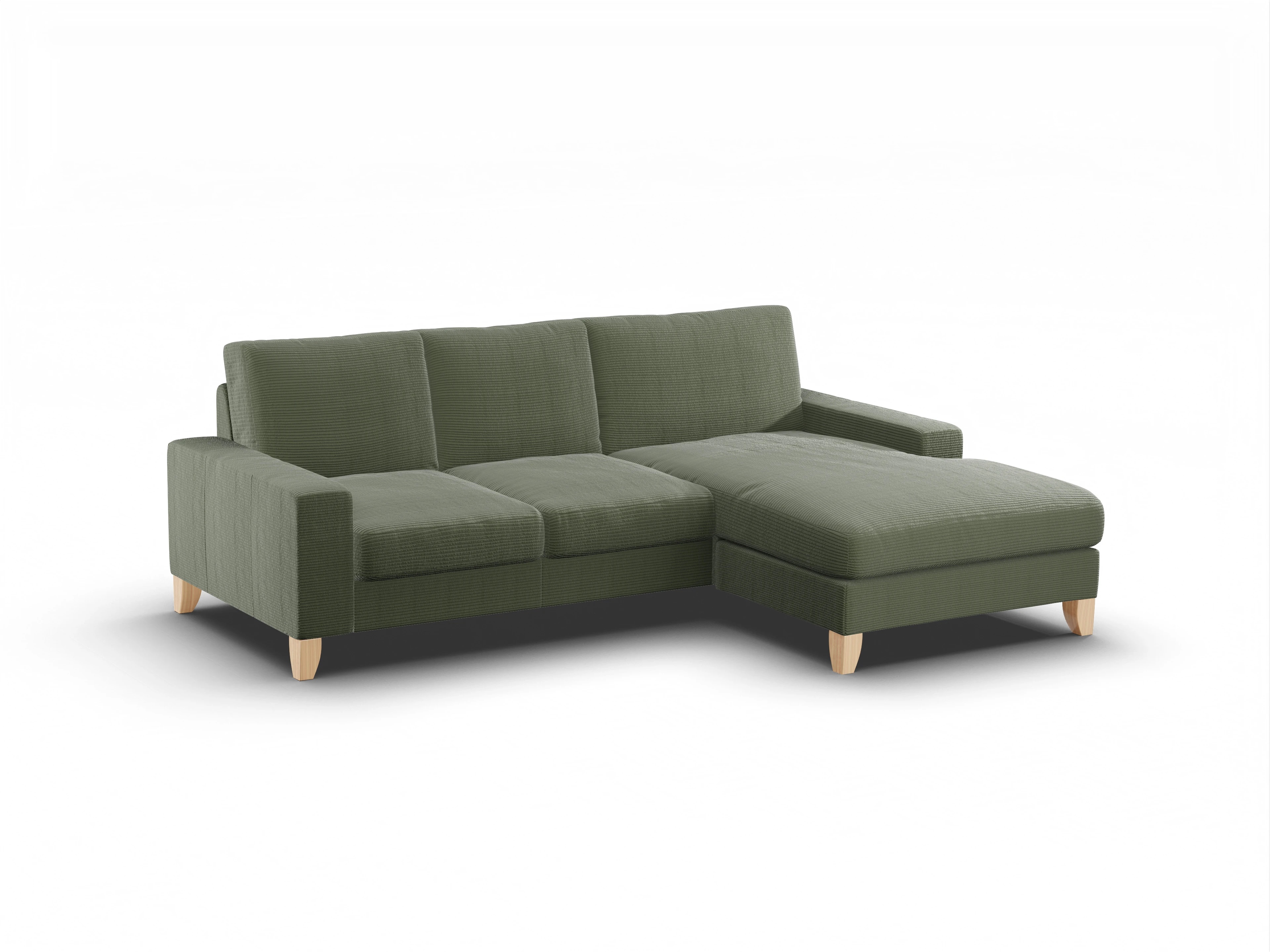Das Casco Ecksofa besteht aus einem 1-Sitzer mit einer Armlehne links, einem 1-Sitzer ohne Armlehne und einem Longchair mit einer Armlehne rechts.