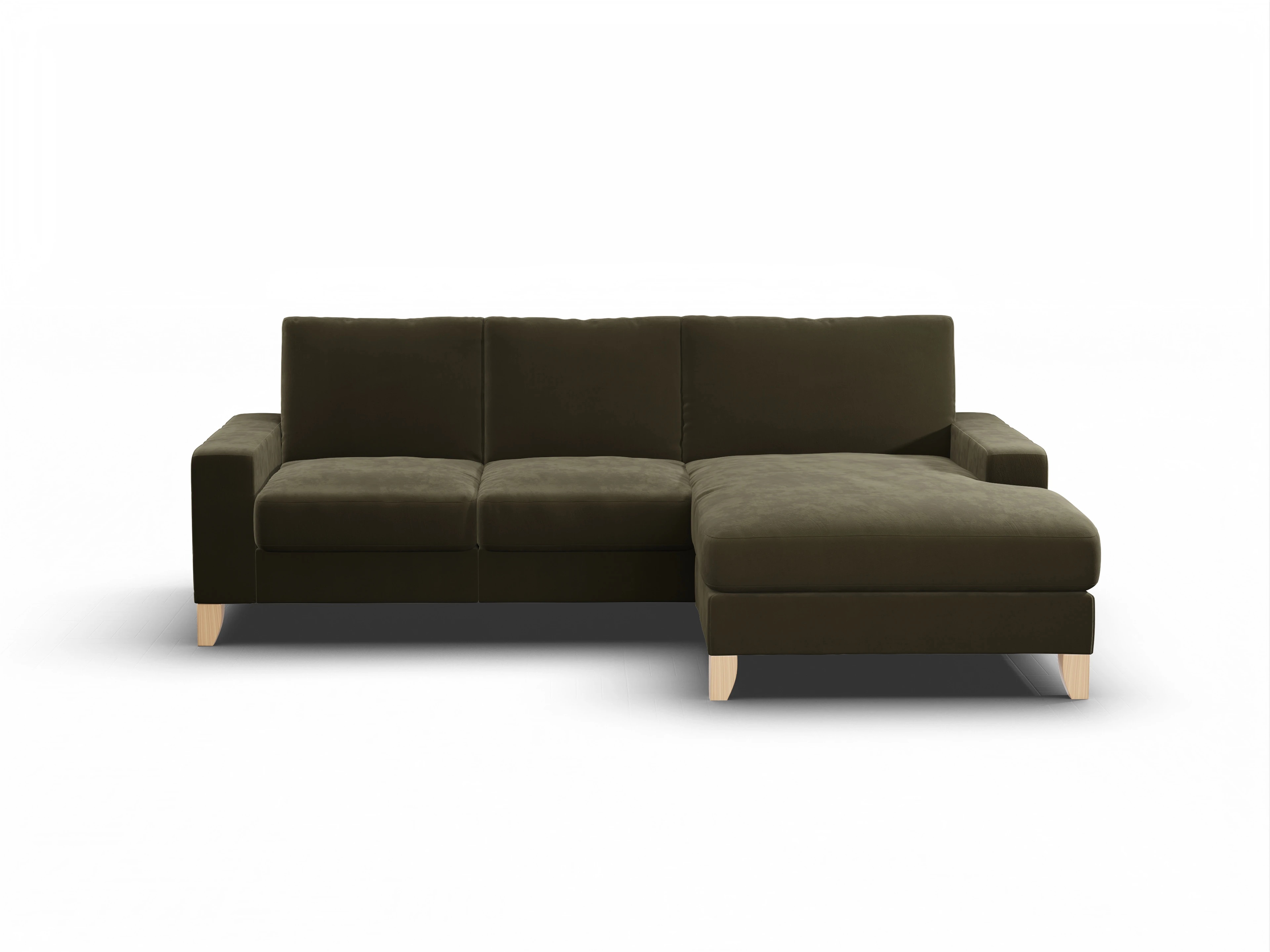 Das Casco Ecksofa besteht aus einem 1-Sitzer mit einer Armlehne links, einem 1-Sitzer ohne Armlehne und einem Longchair mit einer Armlehne rechts.