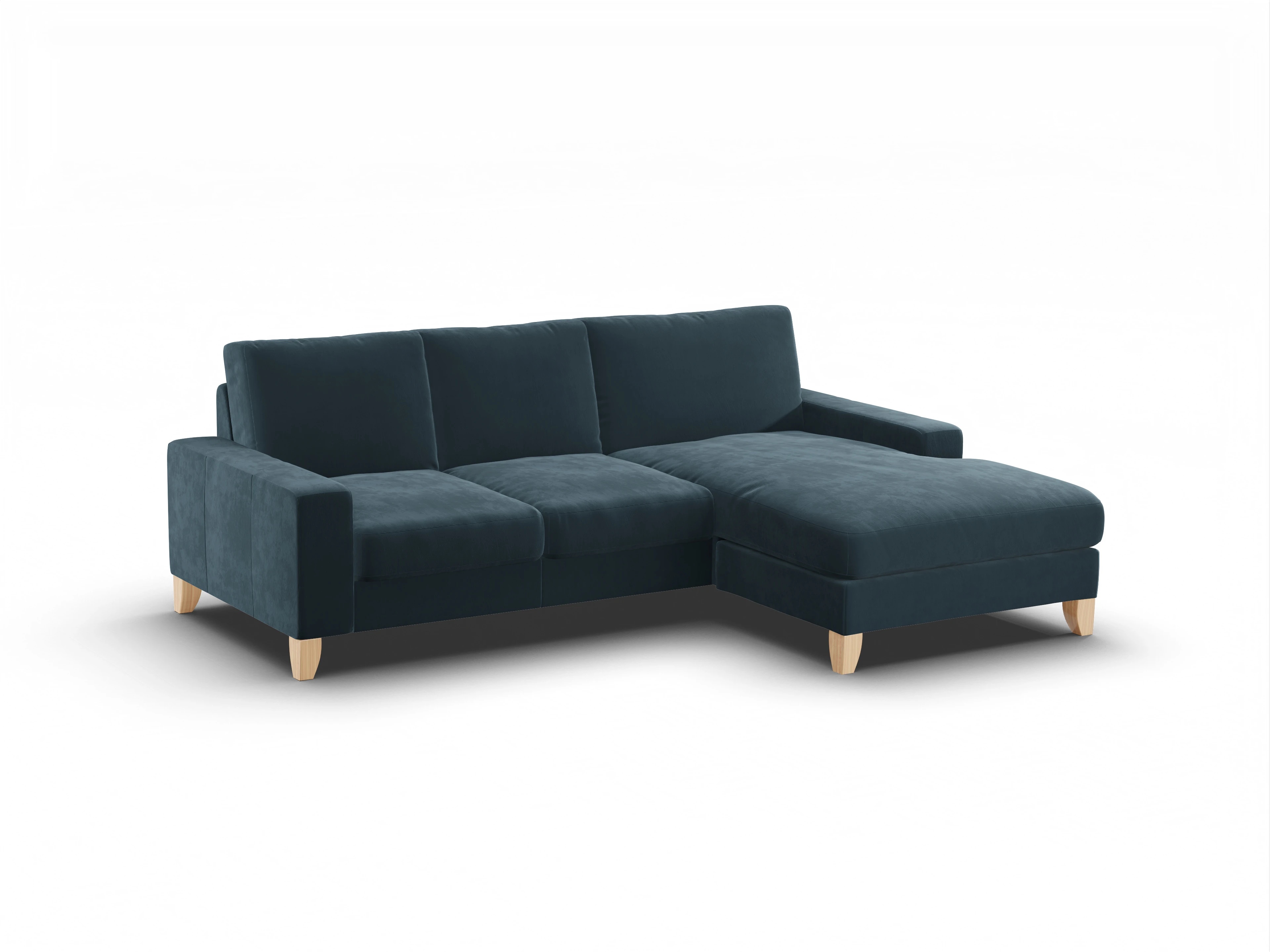 Das Casco Ecksofa besteht aus einem 1-Sitzer mit einer Armlehne links, einem 1-Sitzer ohne Armlehne und einem Longchair mit einer Armlehne rechts.