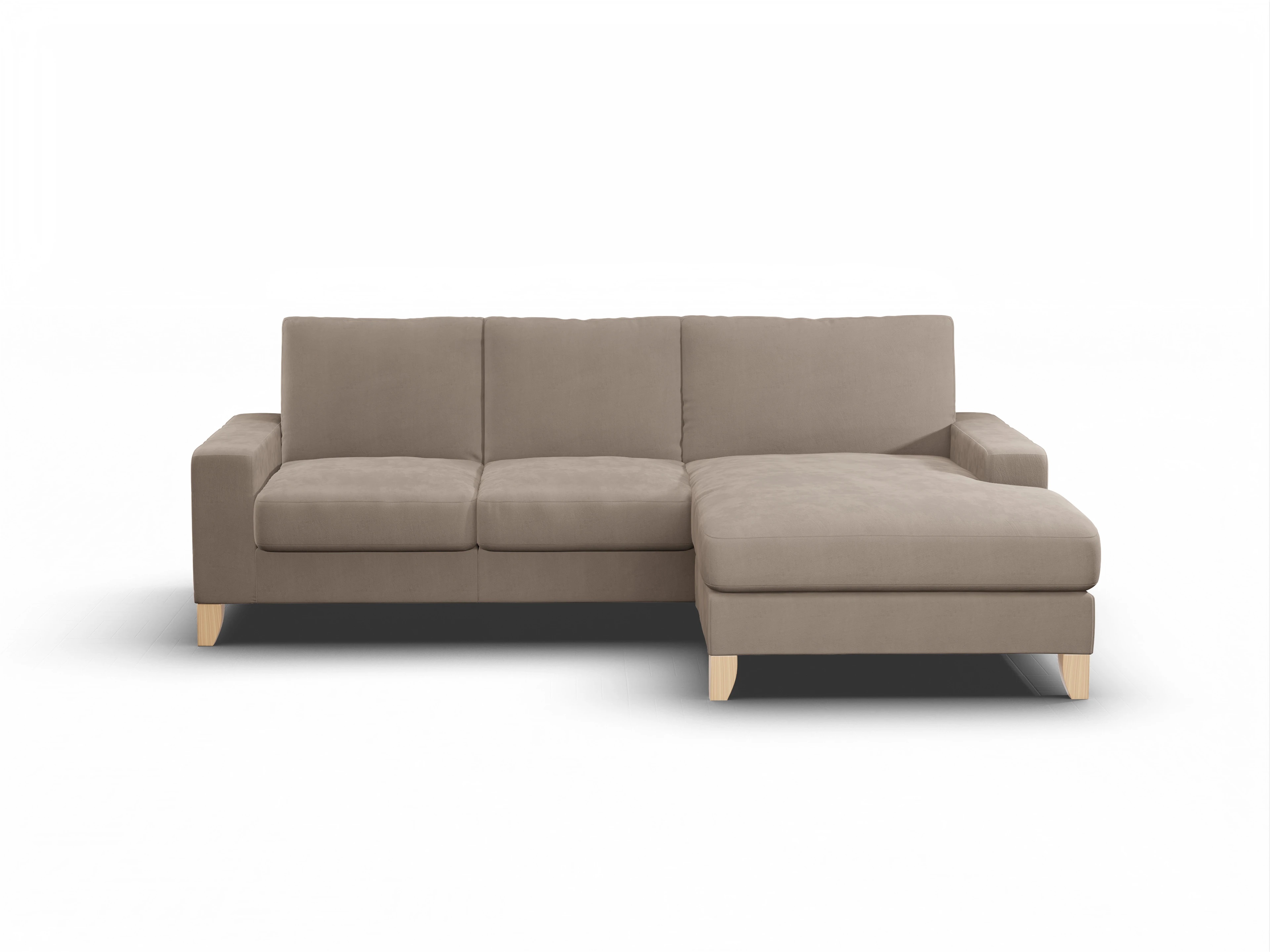 Das Casco Ecksofa besteht aus einem 1-Sitzer mit einer Armlehne links, einem 1-Sitzer ohne Armlehne und einem Longchair mit einer Armlehne rechts.