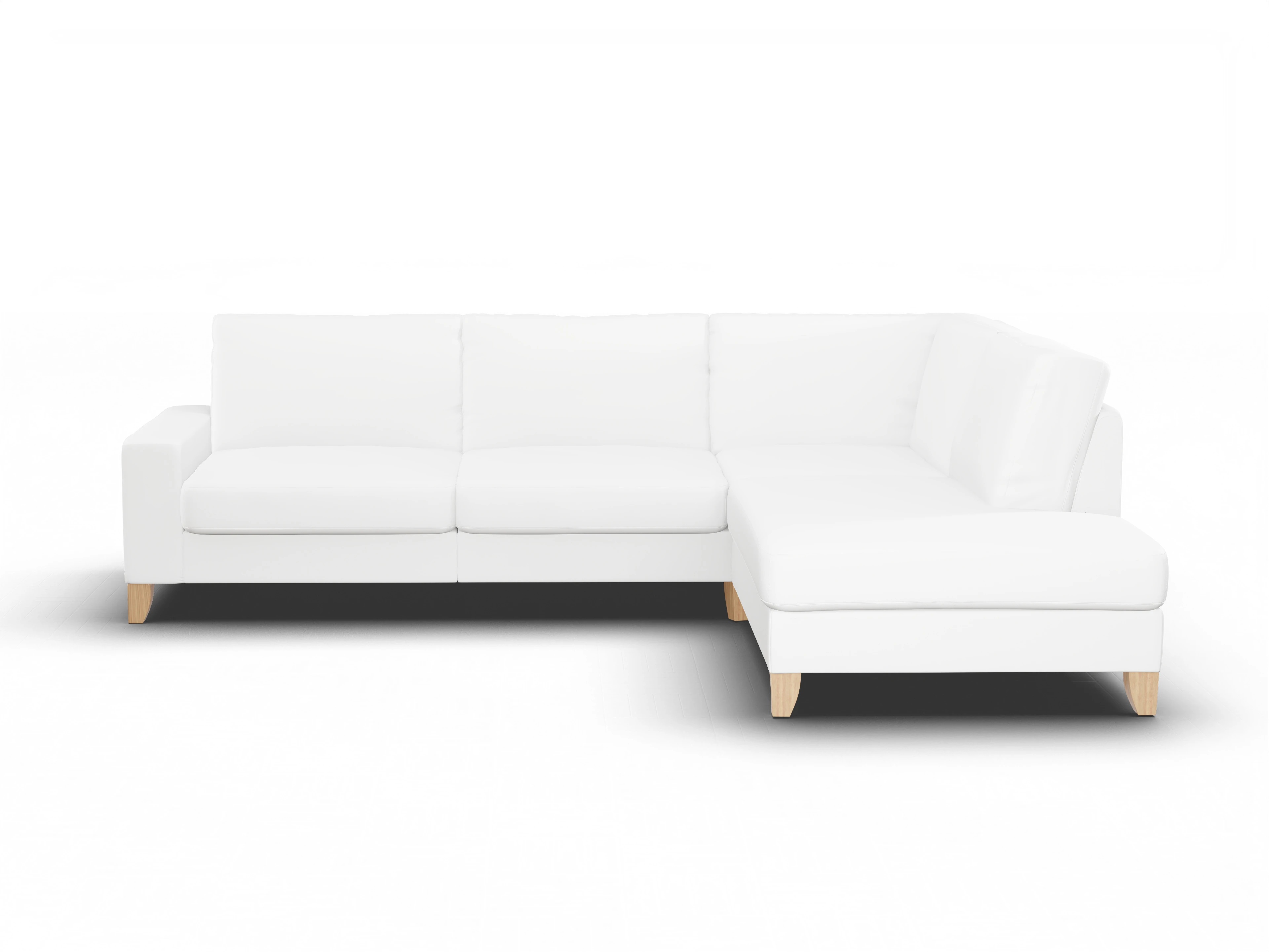 Das Casco Ecksofa besteht aus einem 3-Sitzer mit Armlehne links und einer Umbauecke rechts.
