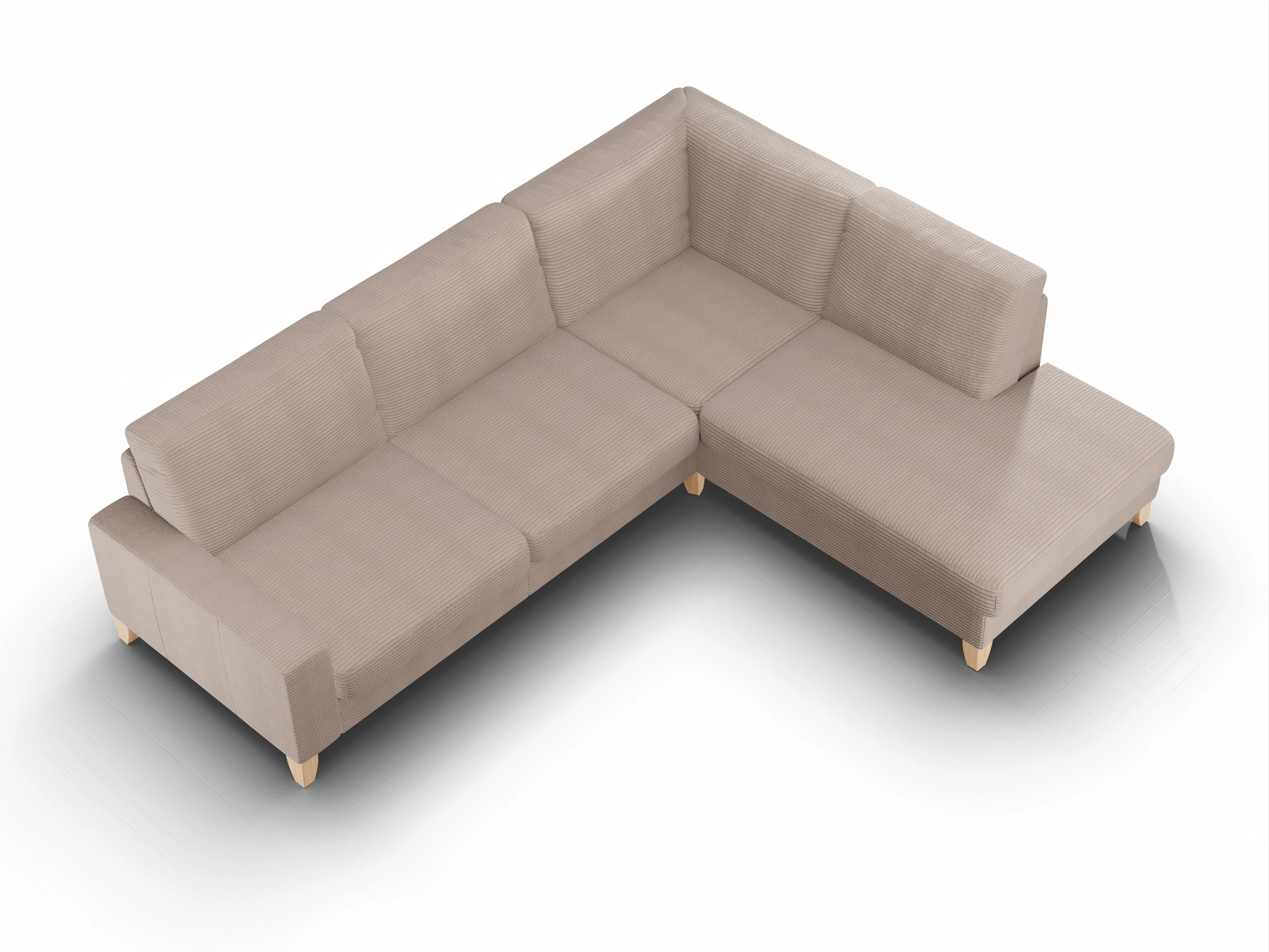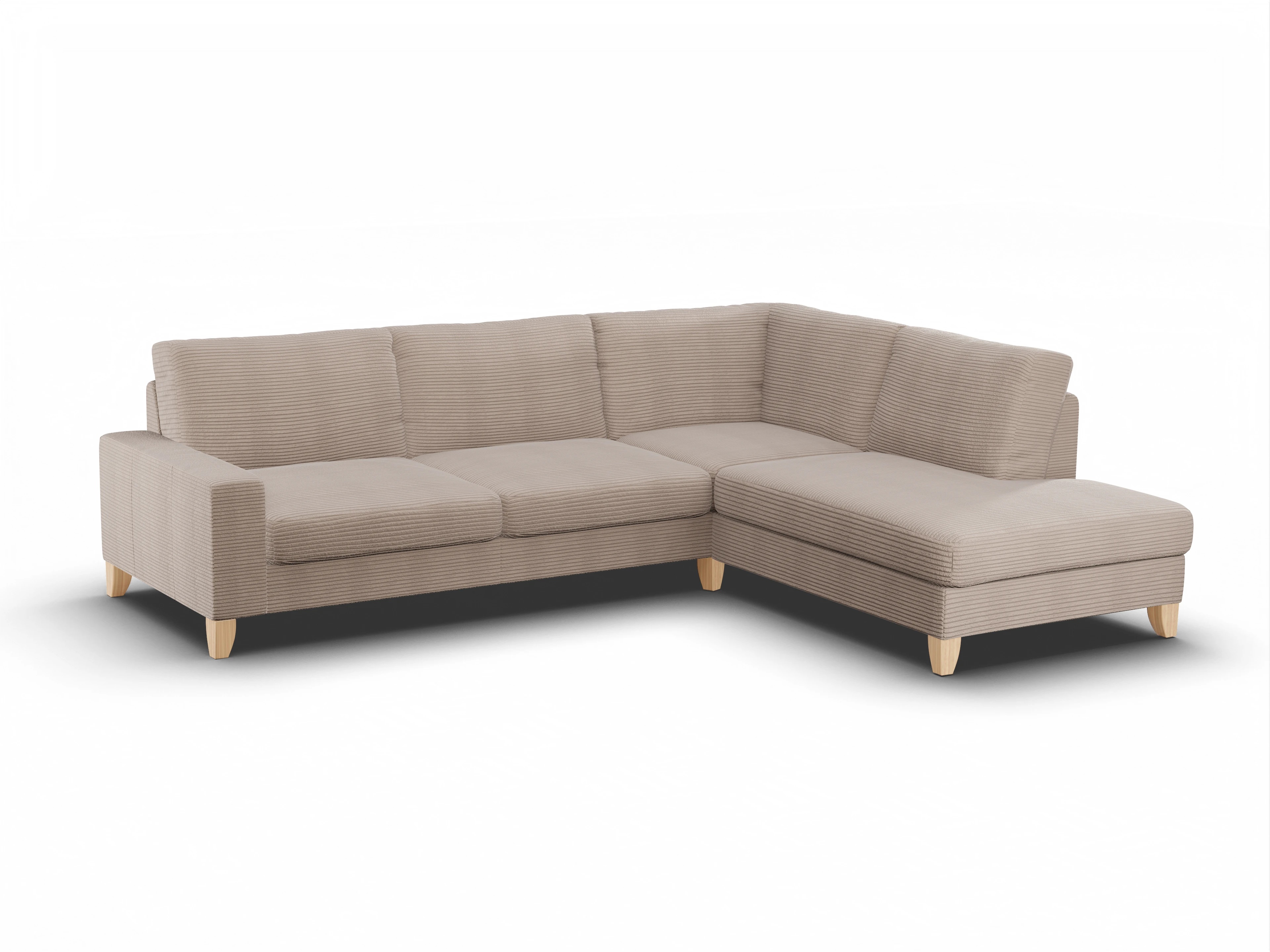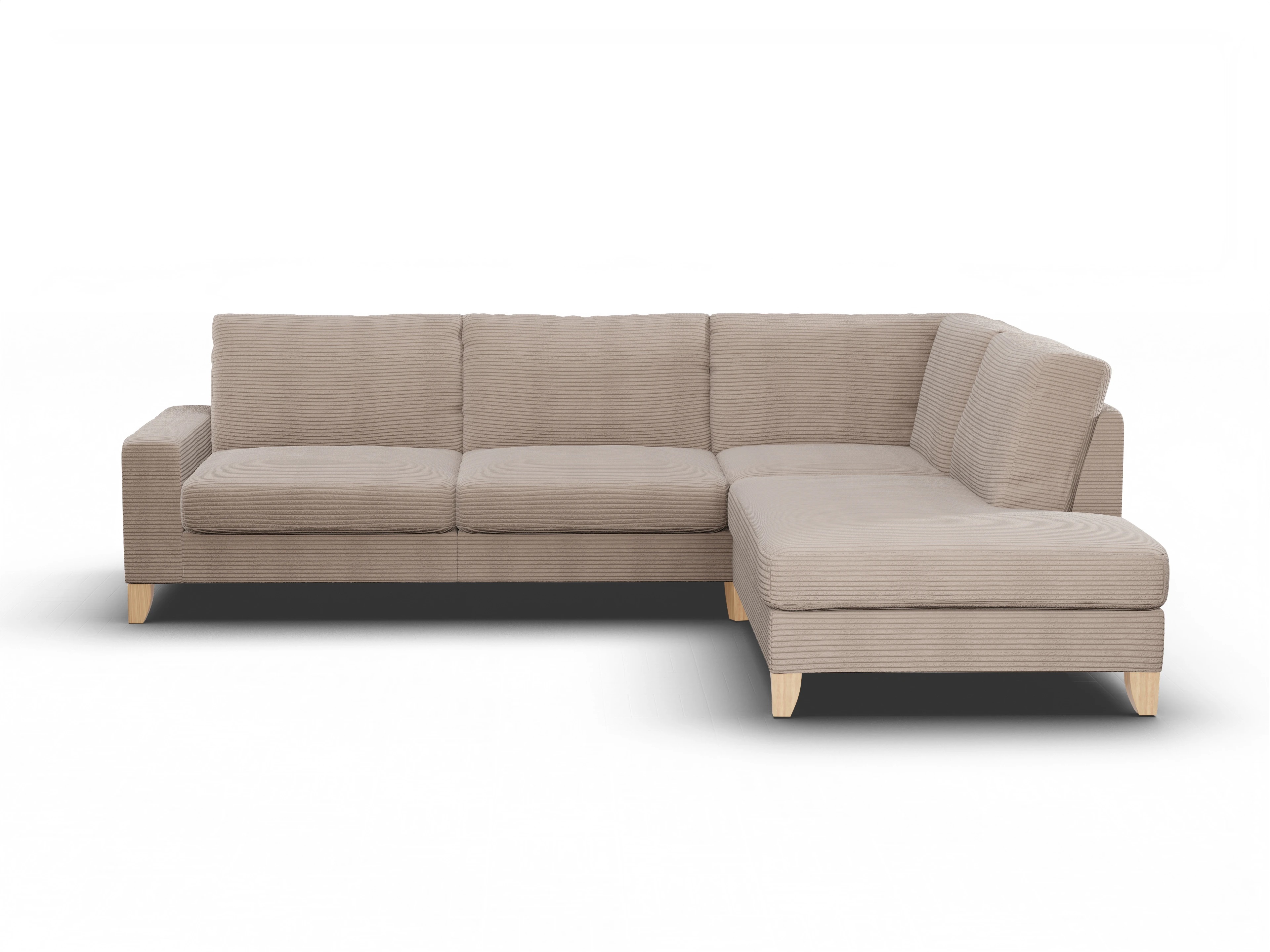 Das Casco Ecksofa besteht aus einem 3-Sitzer mit Armlehne links und einer Umbauecke rechts.