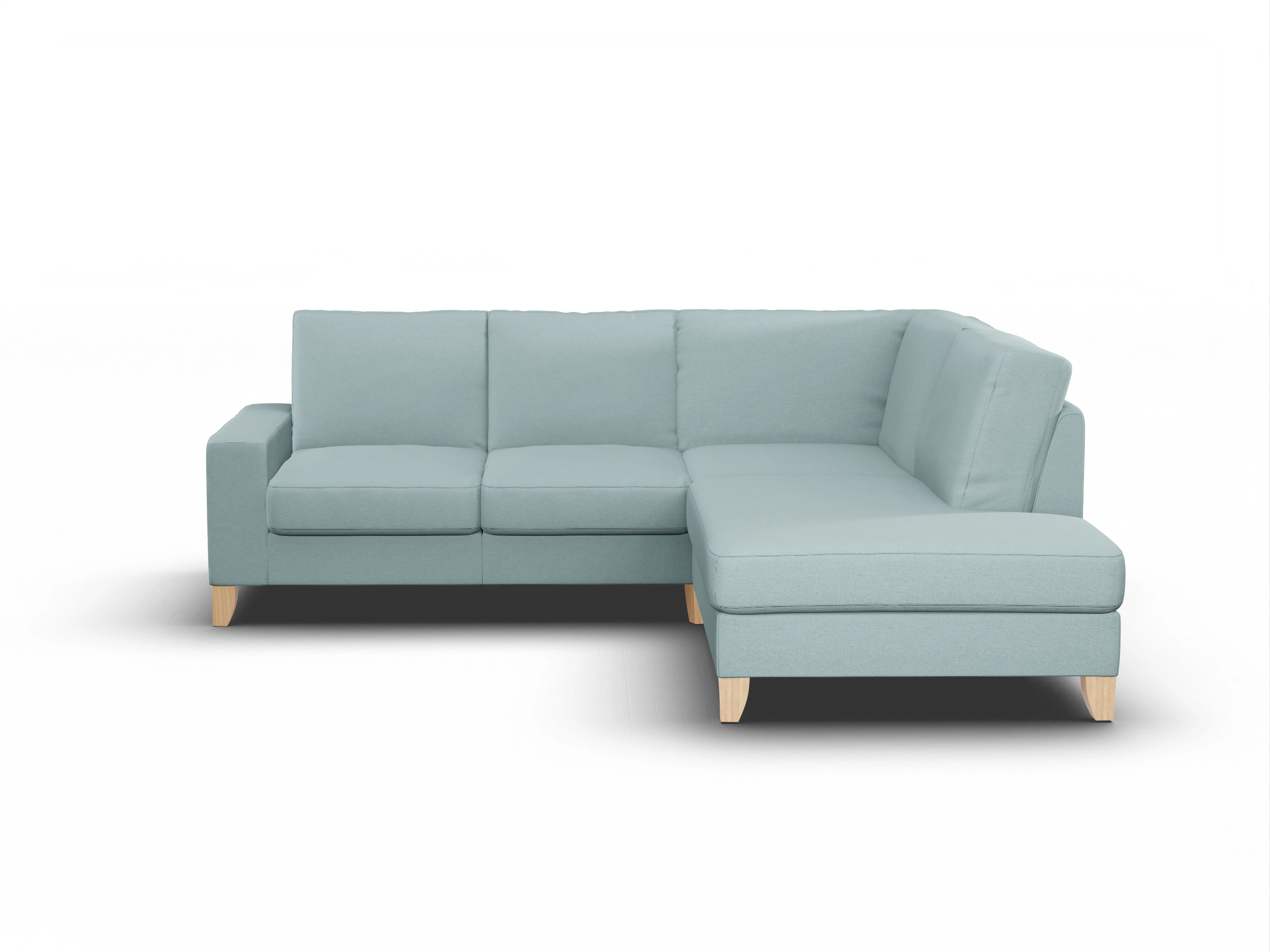 Das Casco Ecksofa besteht aus einem 2-Sitzer mit Armlehne links und einer Umbauecke rechts.