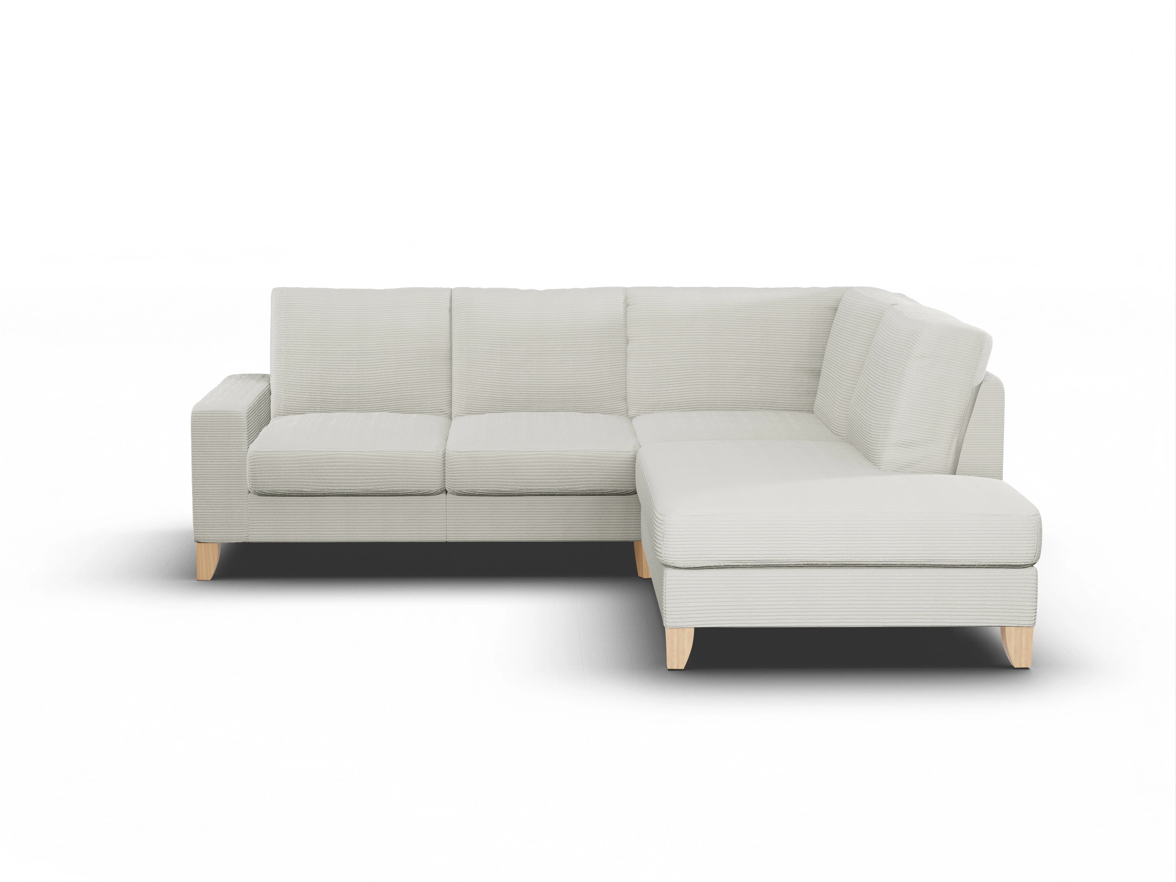 Das Casco Ecksofa besteht aus einem 2-Sitzer mit Armlehne links und einer Umbauecke rechts.
