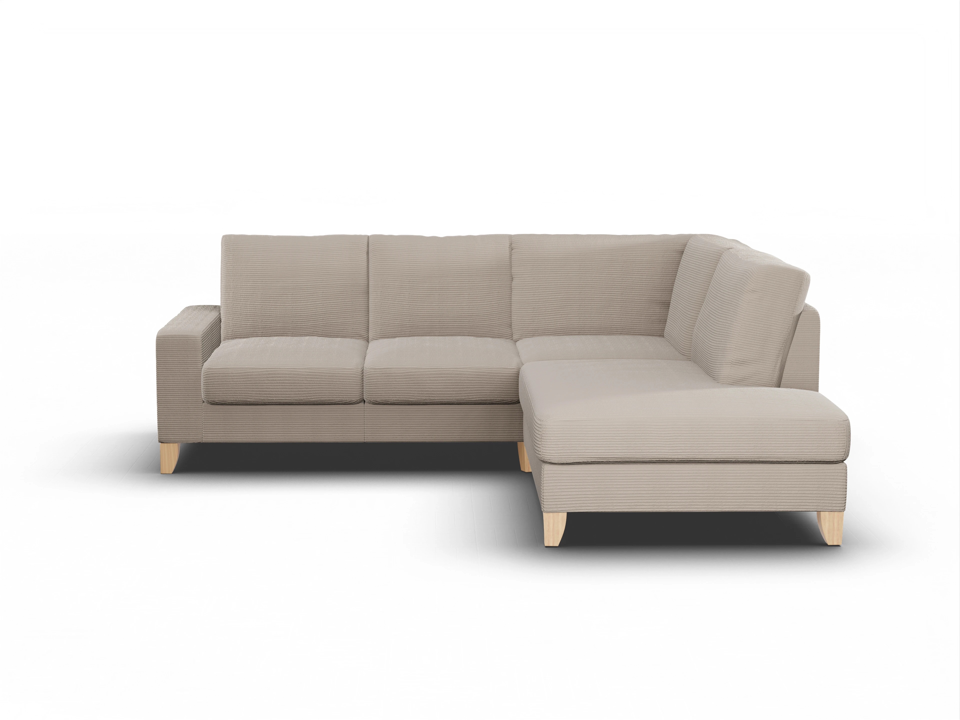 Das Casco Ecksofa besteht aus einem 2-Sitzer mit Armlehne links und einer Umbauecke rechts.