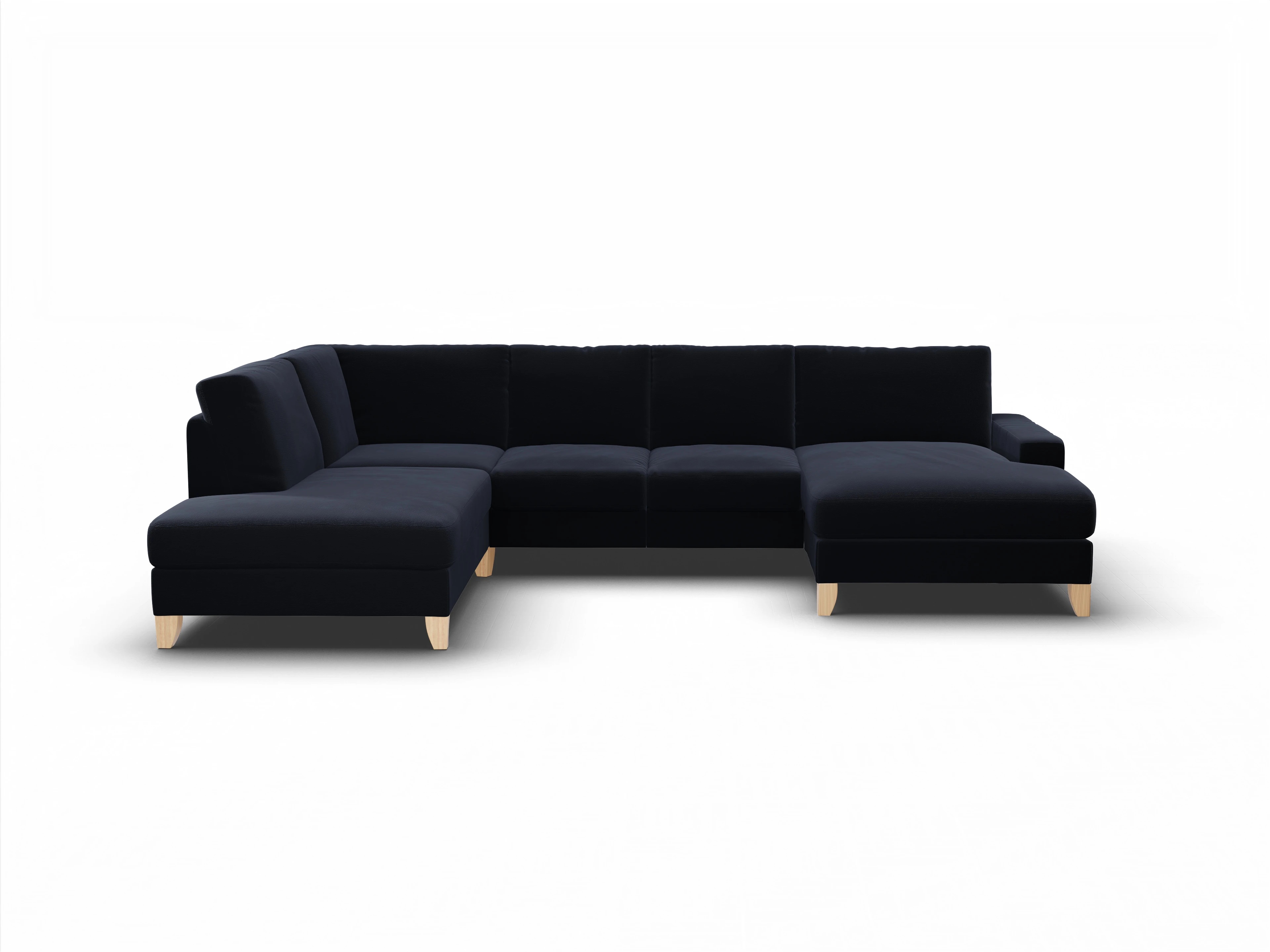 Die Casco Wohnlandschaft besteht aus einer Umbauecke links, einem 2-Sitzer ohne Armlehne mittig und einem Longchair mit Armlehne rechts.