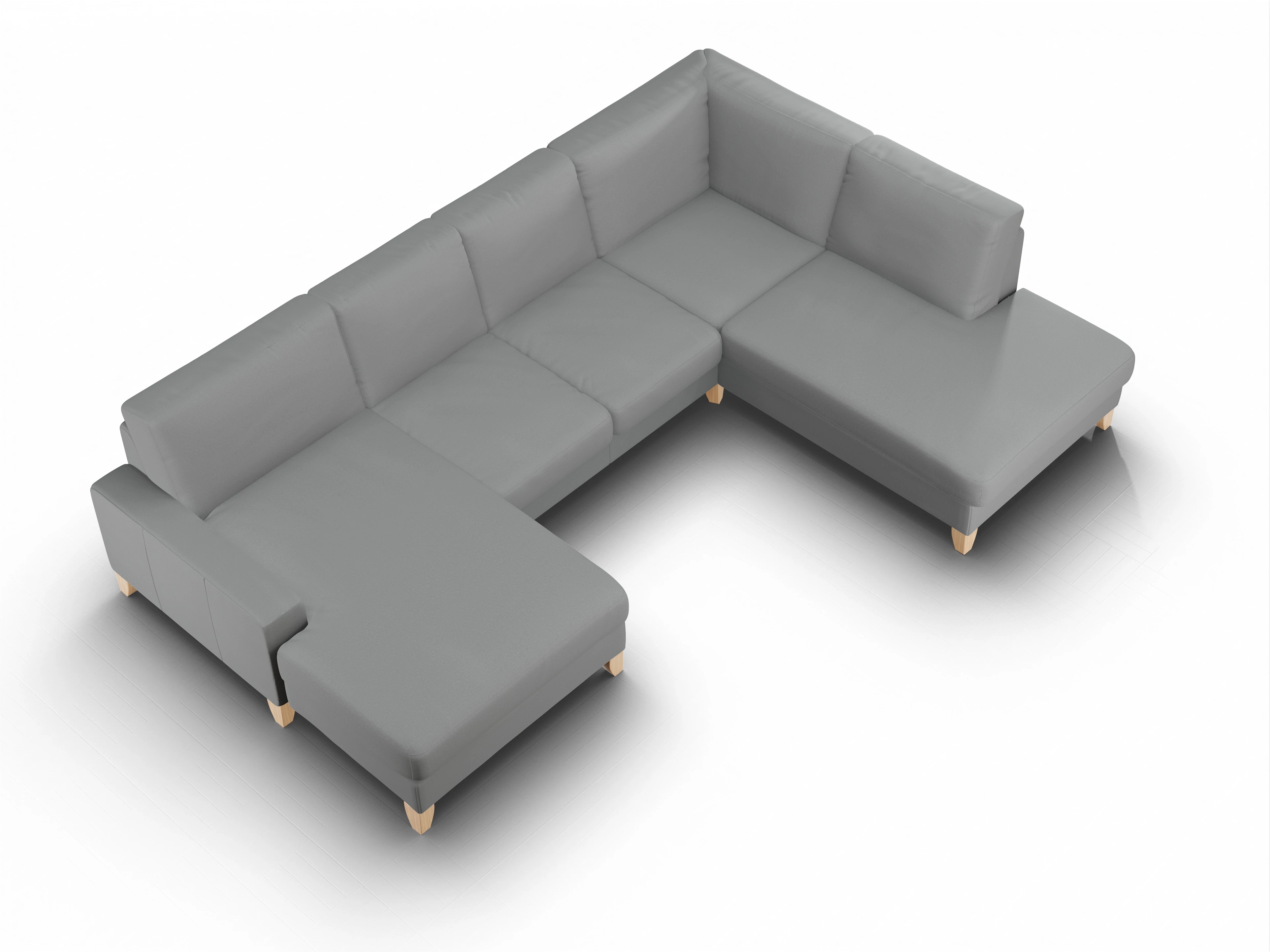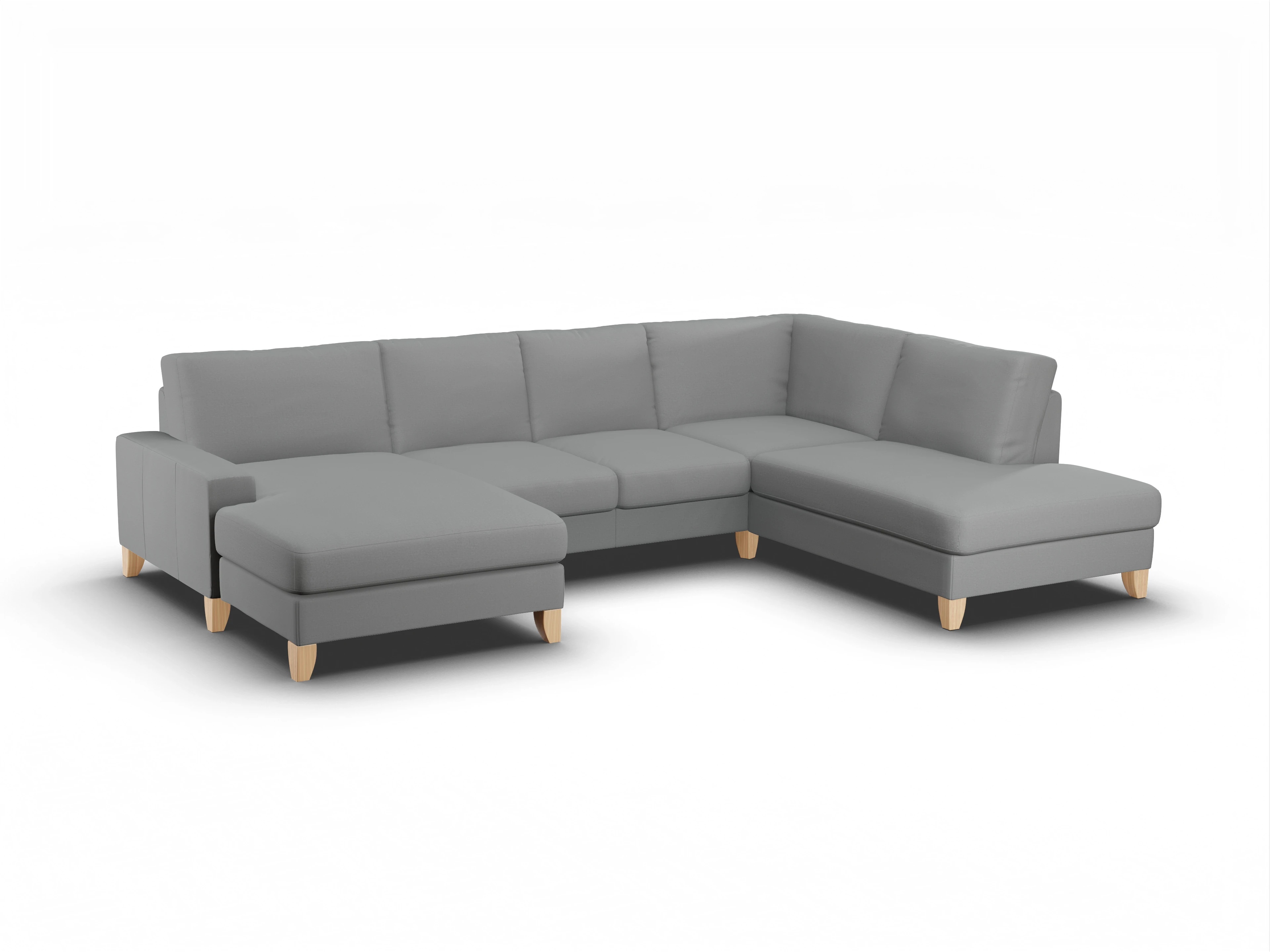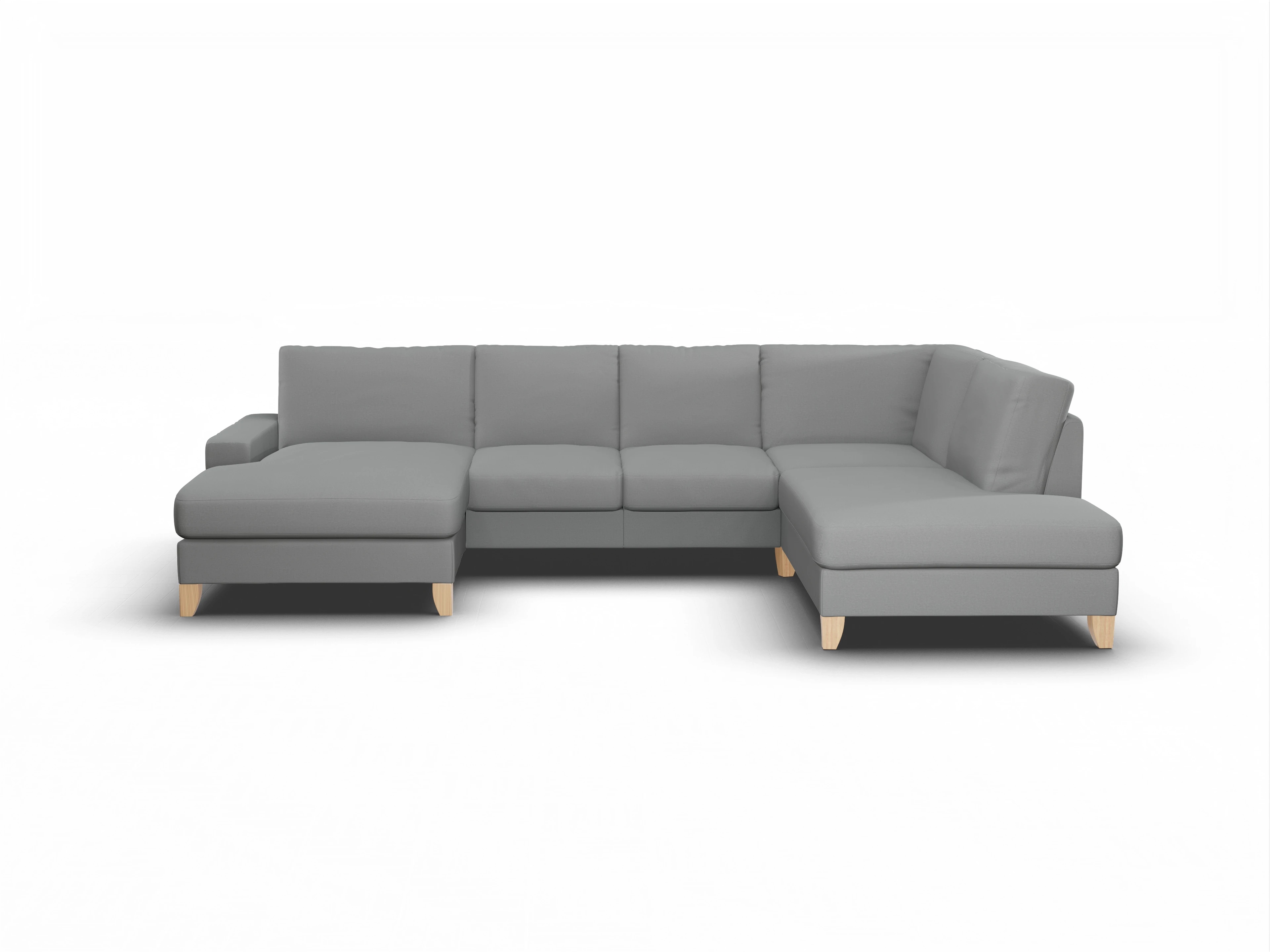 Die Casco Wohnlandschaft besteht aus einem Longchair mit Armlehne links, einem 2-Sitzer ohne Armlehne mittig und einer Umbauecke rechts.