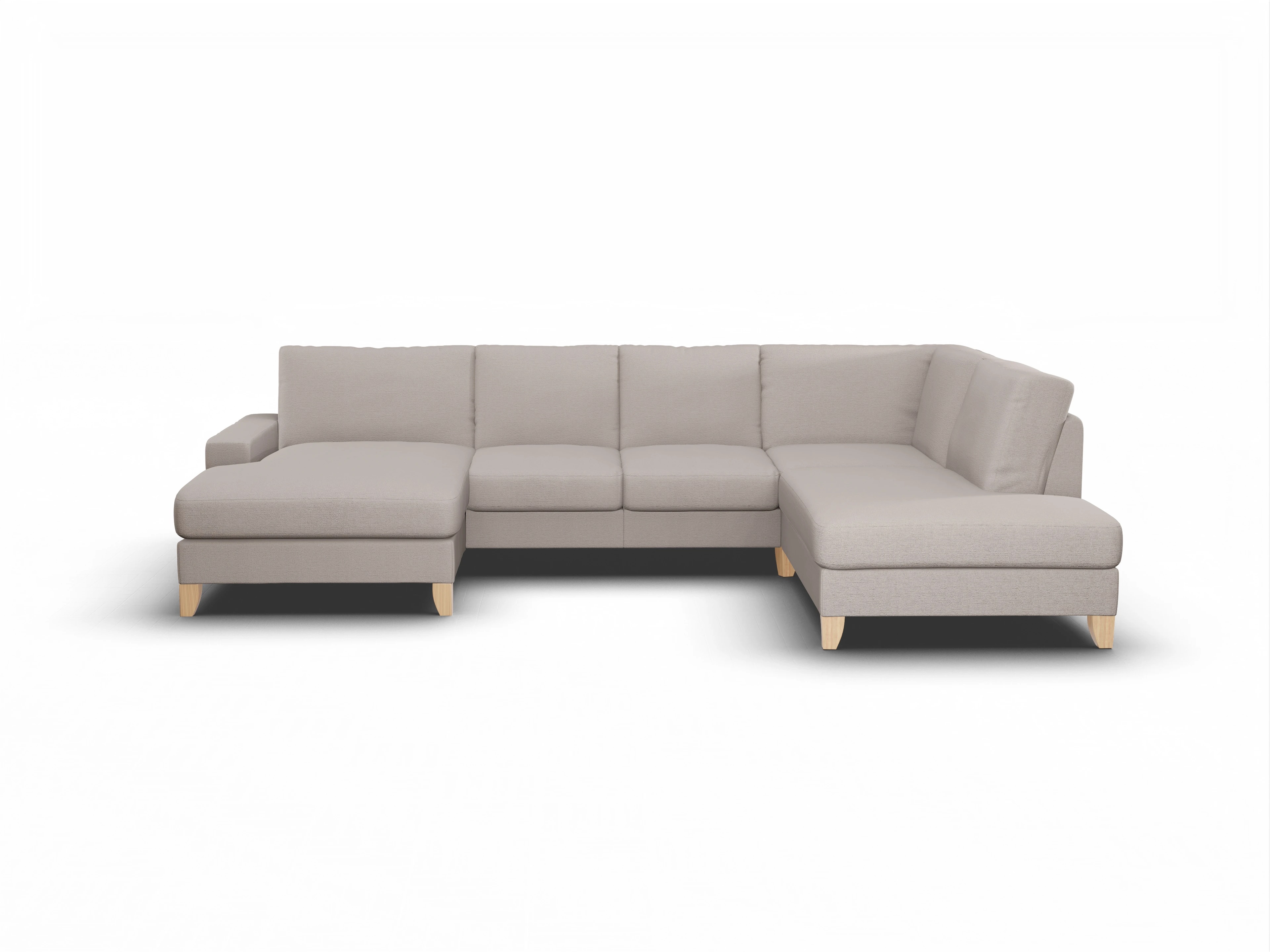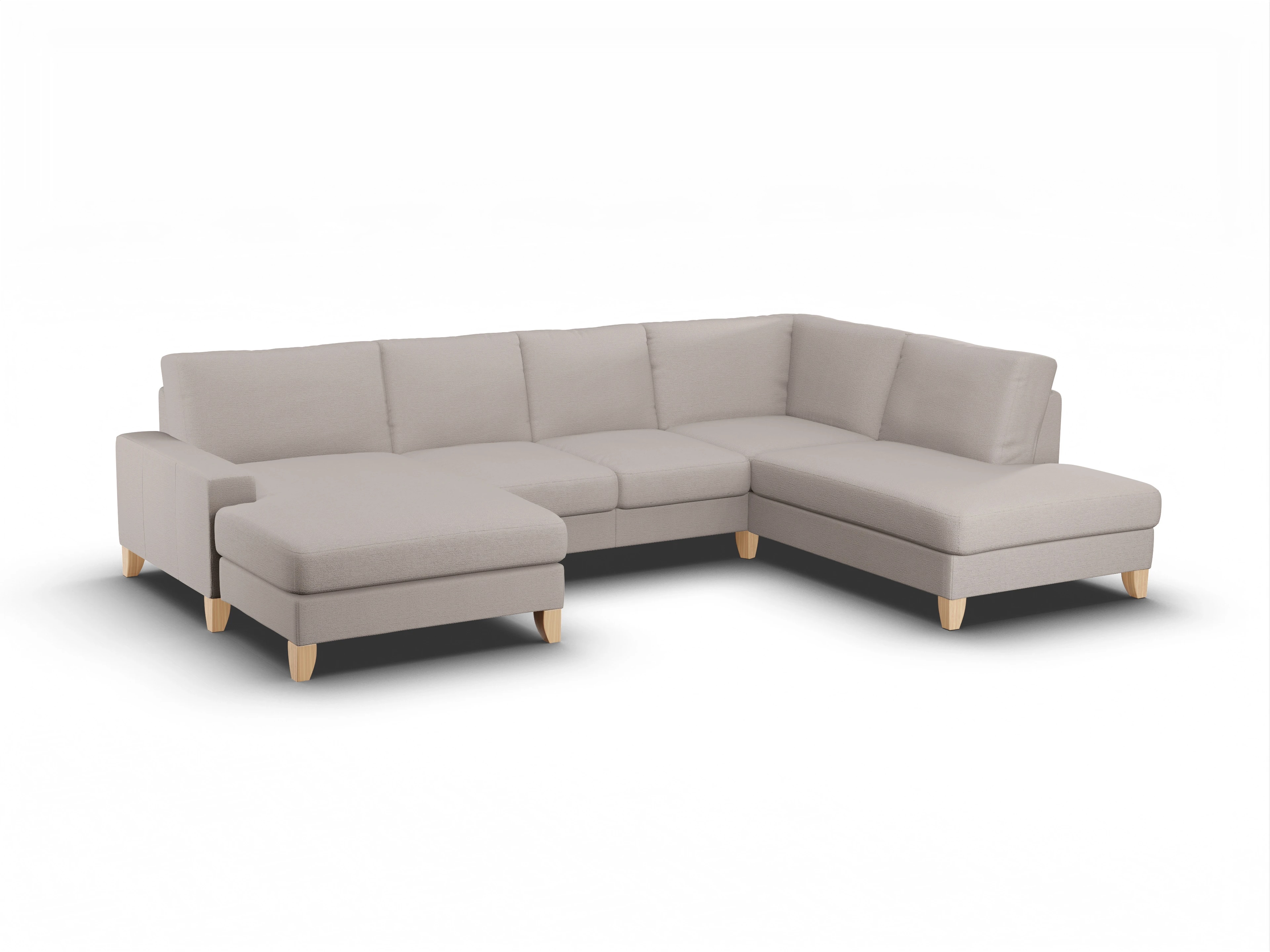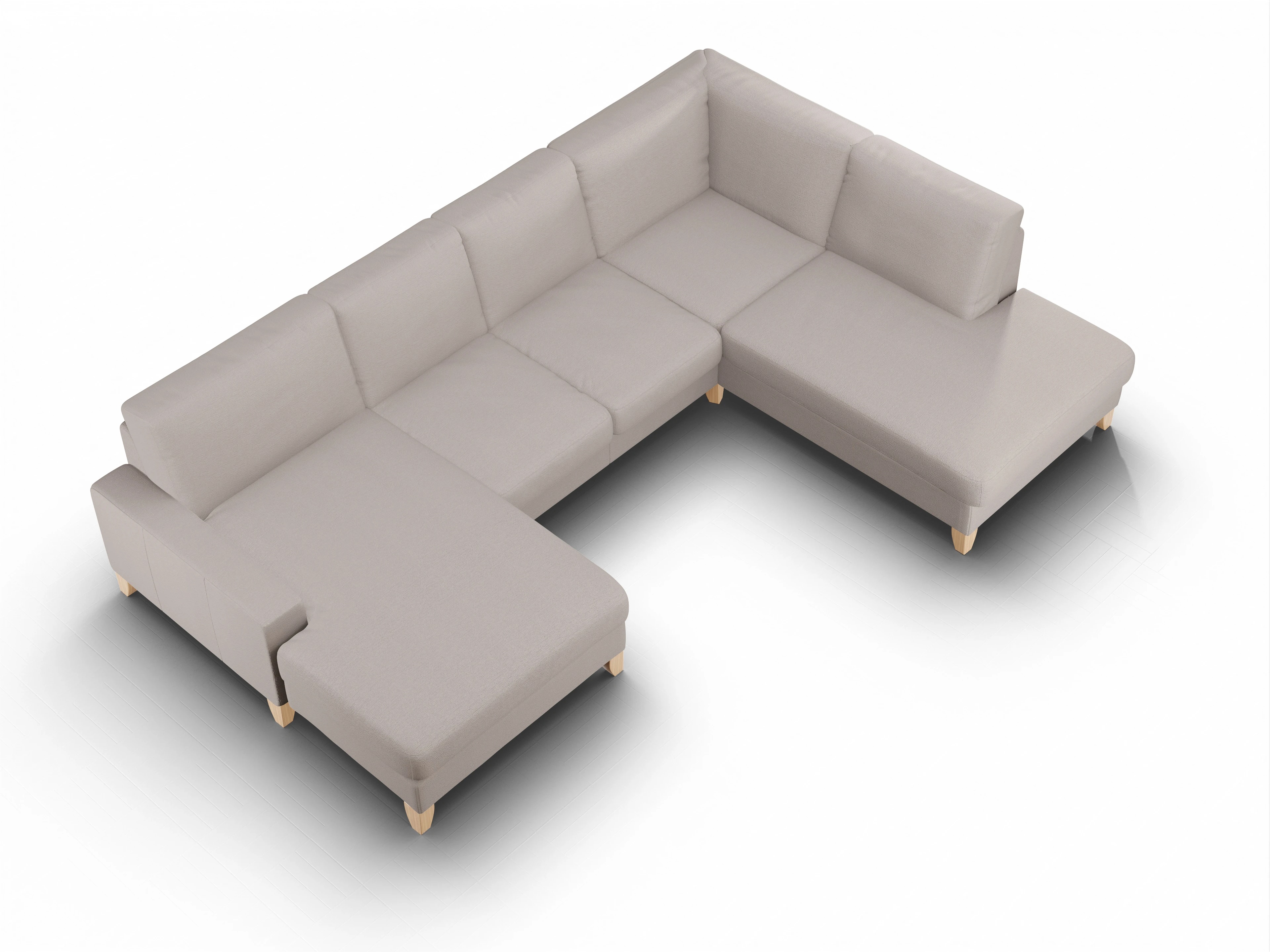 Die Casco Wohnlandschaft besteht aus einem Longchair mit Armlehne links, einem 2-Sitzer ohne Armlehne mittig und einer Umbauecke rechts.