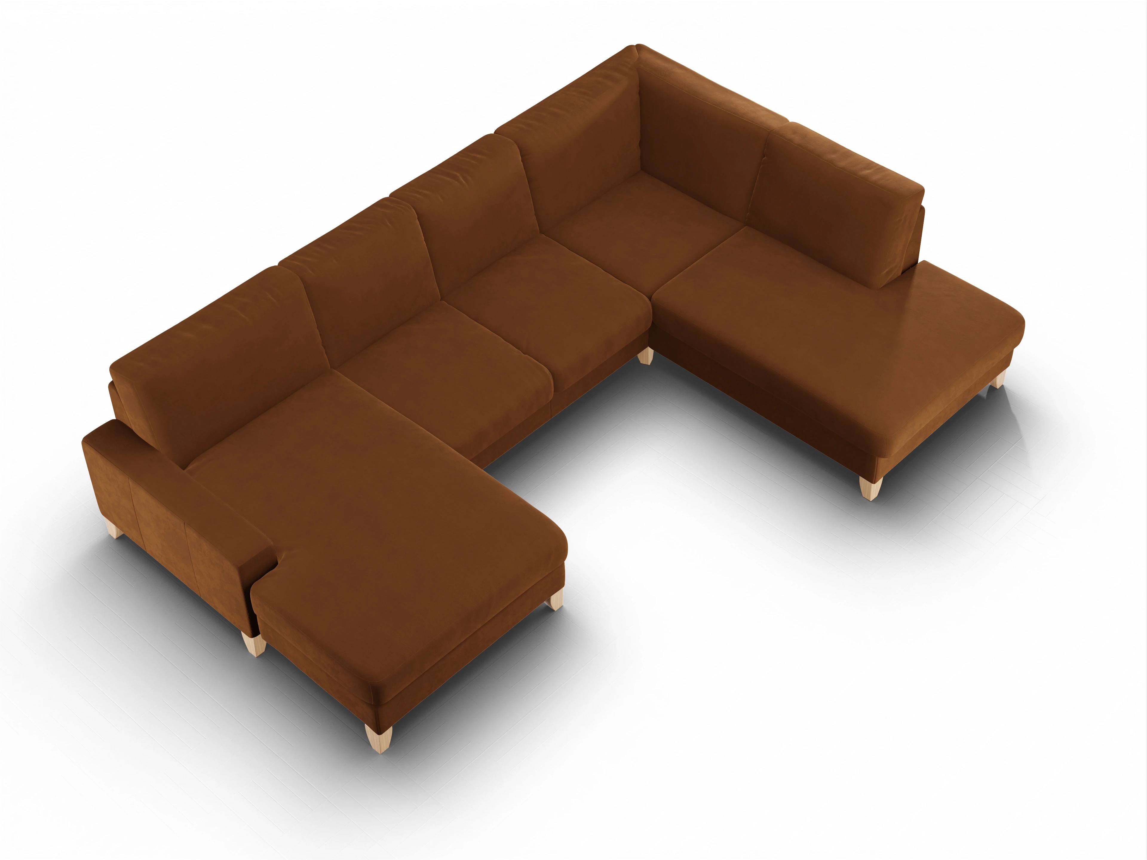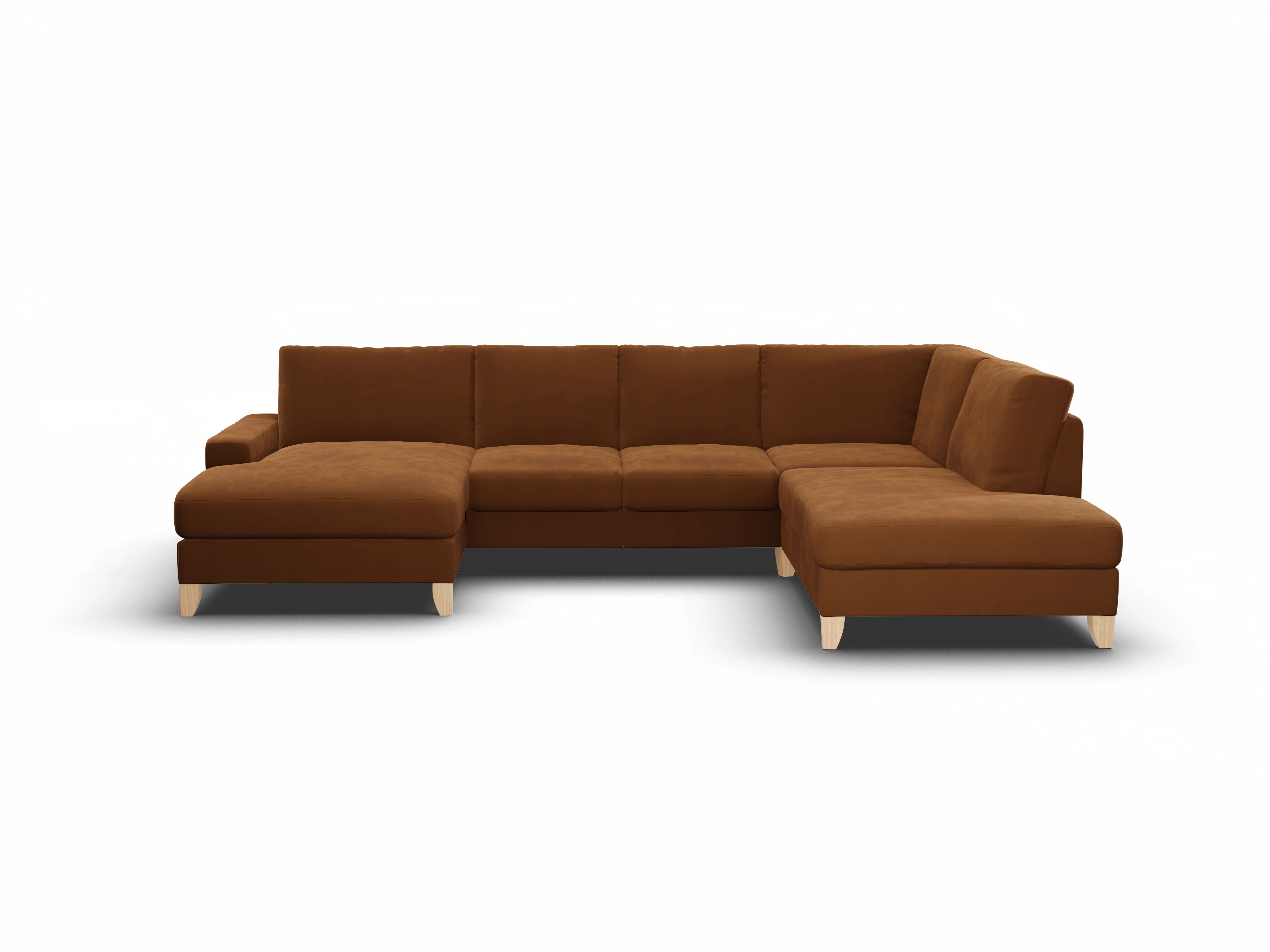 Die Casco Wohnlandschaft besteht aus einem Longchair mit Armlehne links, einem 2-Sitzer ohne Armlehne mittig und einer Umbauecke rechts.