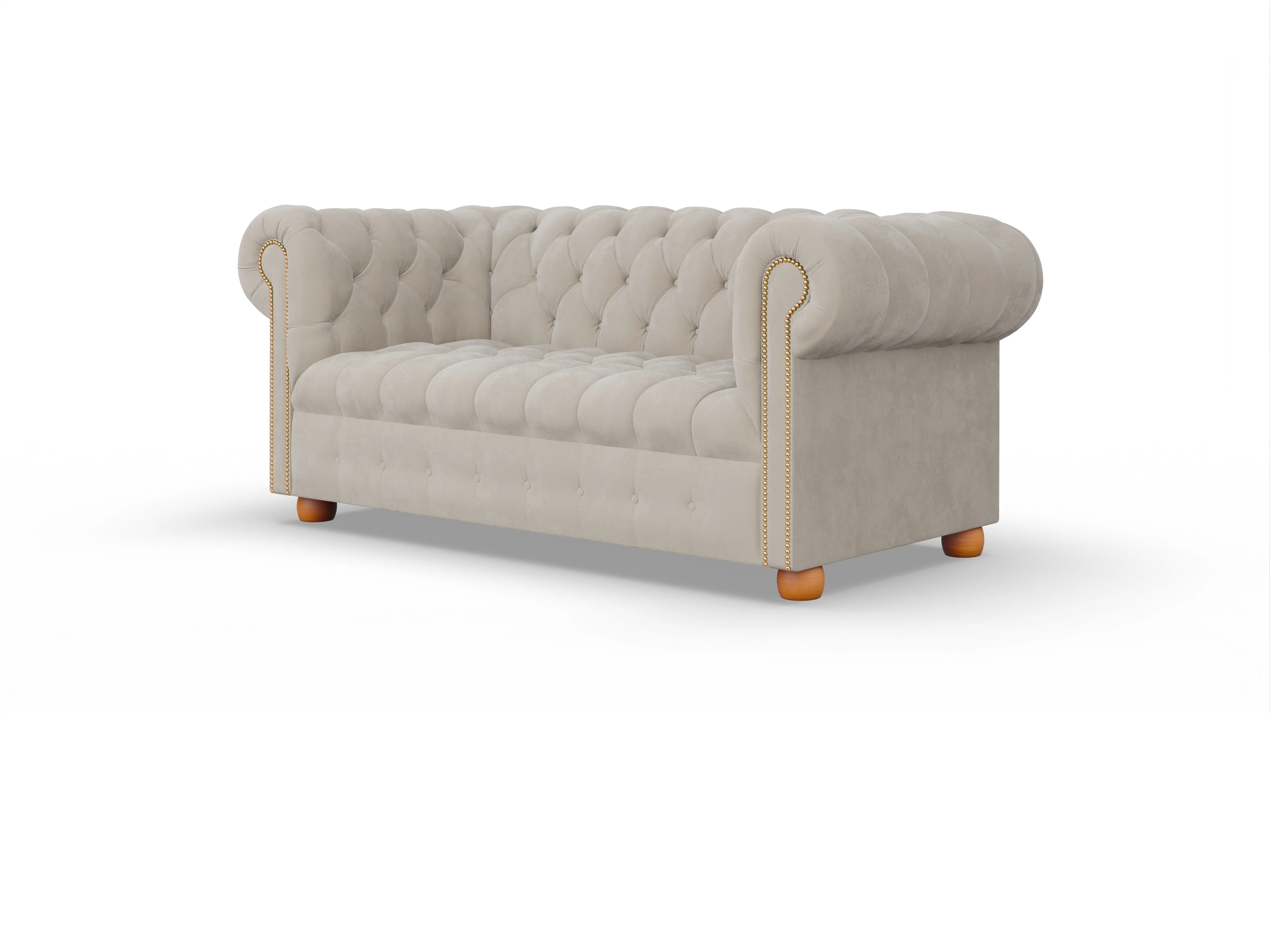 Die Rückenlehne ist mit strapazierfähigen Nosag-Federn ausgestattet, die in Kombination mit hochwertigem Schaumstoff für optimalen Halt und langanhaltenden Sitzkomfort sorgen. Die handgefertigte Kapitonierung verleiht dem Möbelstück seine charakteristische Chesterfield-Optik und unterstreicht die aufwendige Handwerkskunst.