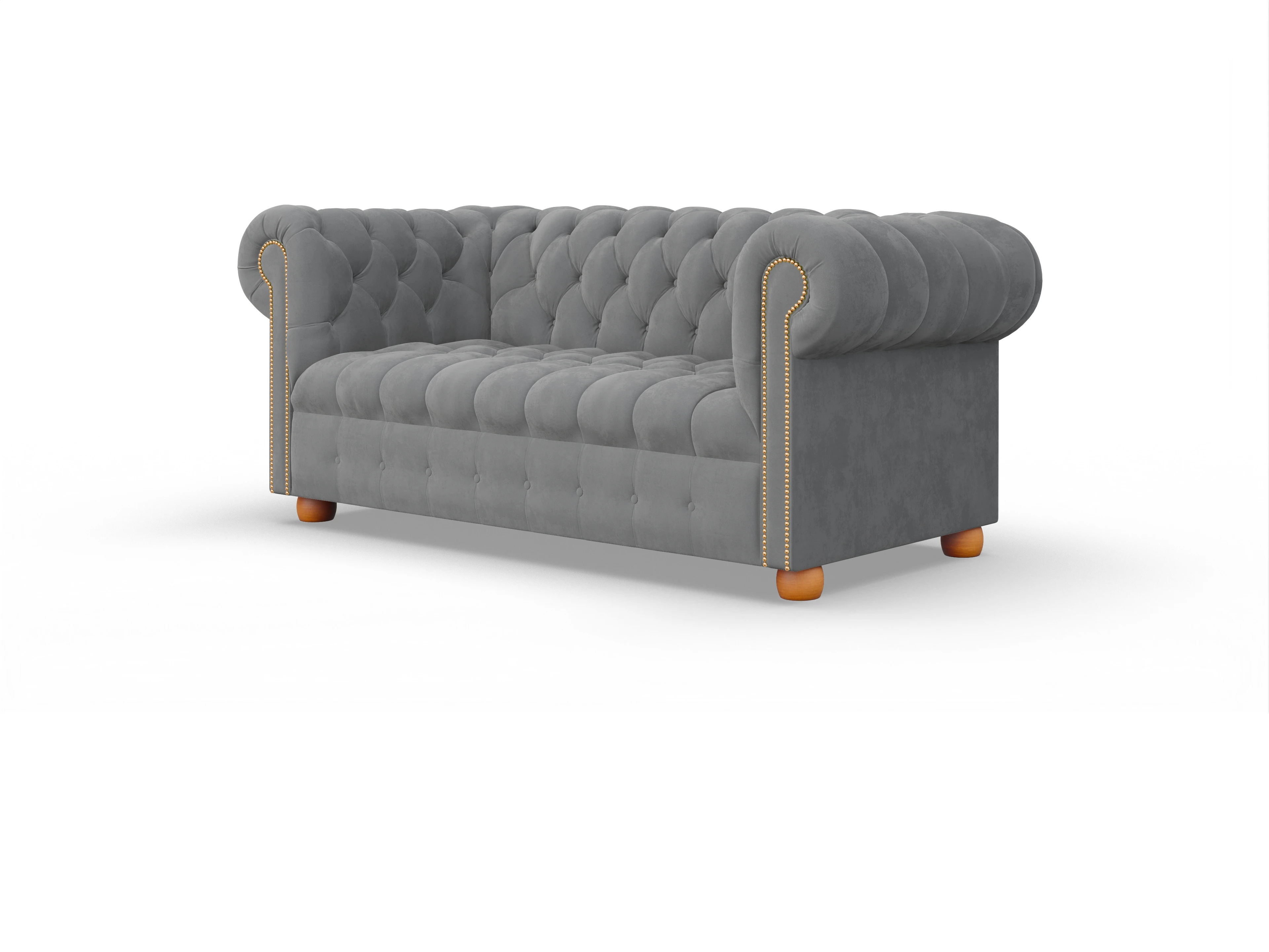 Die Rückenlehne ist mit strapazierfähigen Nosag-Federn ausgestattet, die in Kombination mit hochwertigem Schaumstoff für optimalen Halt und langanhaltenden Sitzkomfort sorgen. Die handgefertigte Kapitonierung verleiht dem Möbelstück seine charakteristische Chesterfield-Optik und unterstreicht die aufwendige Handwerkskunst.