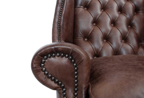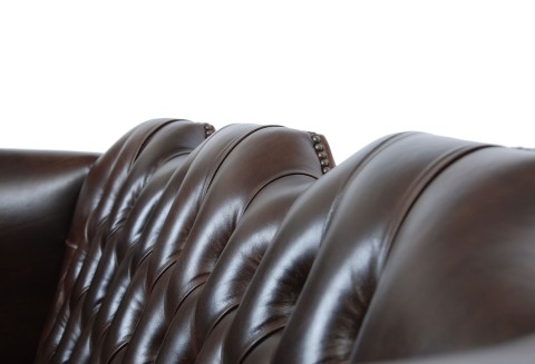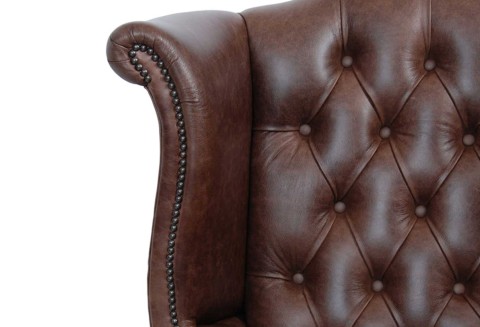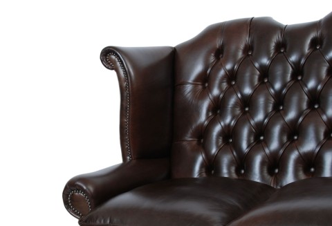 Die Rückenlehne ist mit strapazierfähigen Nosag-Federn ausgestattet, die in Kombination mit hochwertigem Schaumstoff für optimalen Halt und langanhaltenden Sitzkomfort sorgen. Die handgefertigte Kapitonierung verleiht dem Möbelstück seine charakteristische Chesterfield-Optik und unterstreicht die aufwendige Handwerkskunst.