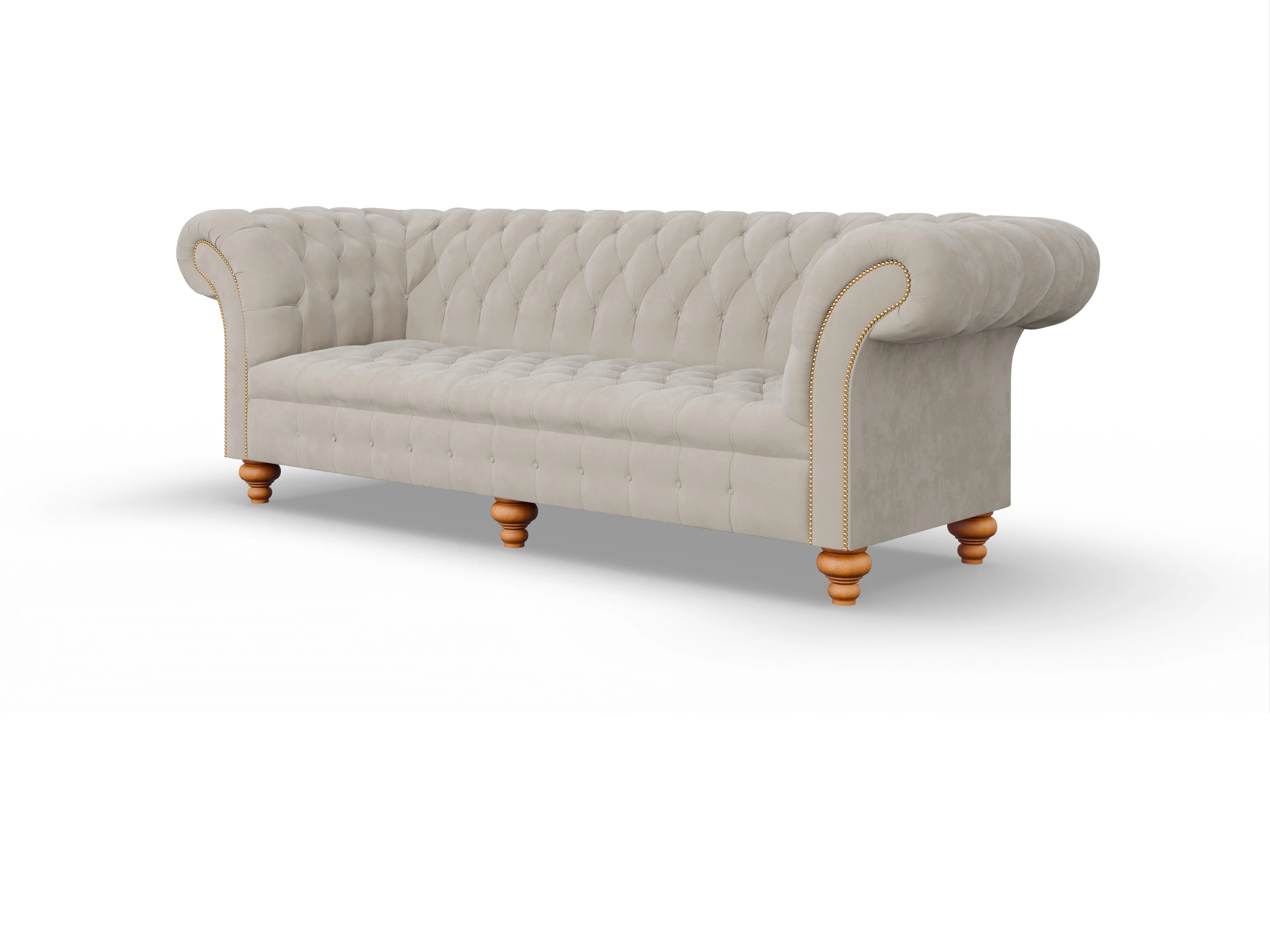 Der Chesterfield Mayfair steht für klassische Eleganz mit einem Hauch Raffinesse. Jedes Sofa wird in britischen Manufakturen traditionell von Hand gefertigt – vom massiven Buchenholzrahmen bis zur aufwendig gearbeiteten Knopfheftung.