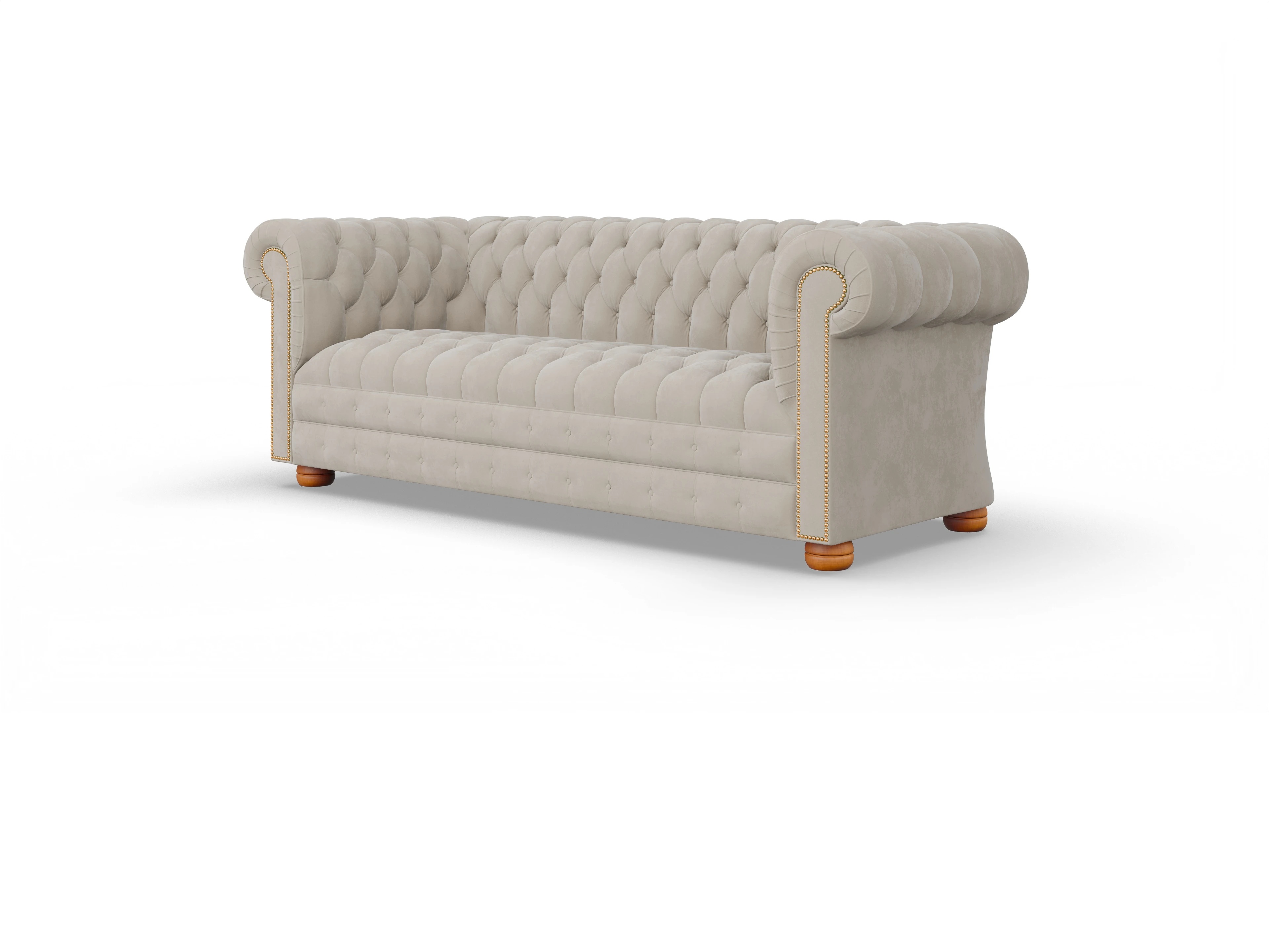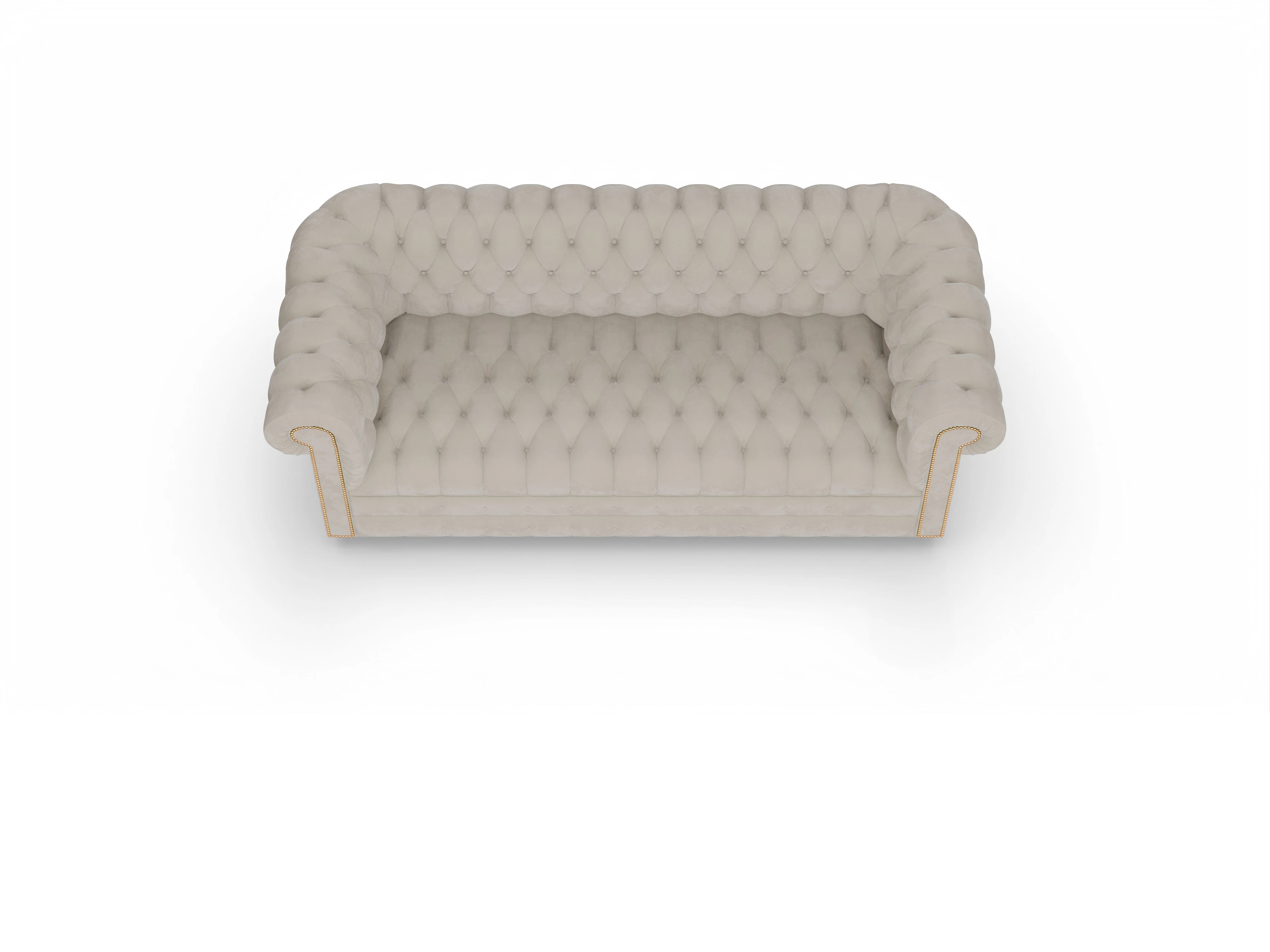 Ob Echtleder für einen traditionsbewussten Look oder Samt für einen modernen, weichen Akzent – jedes Osmond-Sofa wird individuell nach Farbe und Material gefertigt. Erhältlich als 2- oder 3-Sitzer, lässt sich das Modell perfekt an verschiedene Wohnräume anpassen. Passende Clubsessel runden das Ensemble ab und schaffen eine einladende Sitzgruppe.