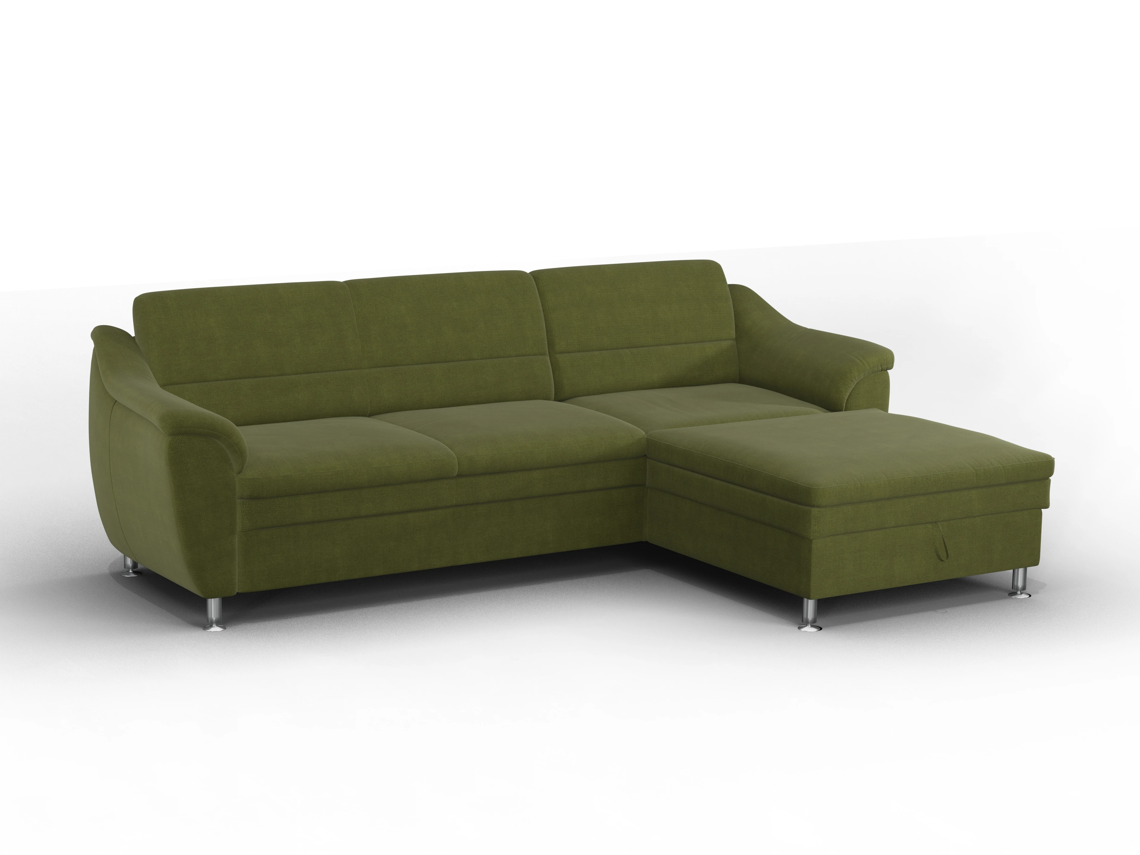 Unsere moderne Polstergarnitur Christo beeindruckt mit einem zeitlosen Design und einer hochwertigen Verarbeitung. Optional stellt dieses Modell Ihnen eine praktische Schlaffunktion für Ihre Gäste und einen Bettkasten, in dem Decken und Kissen oder andere Dinge verstaut werden können, zur Verfügung. Die Polsterung besteht aus einem Federkern auf Wellenunterfederung und sorgt somit für einen idealen Sitz- und Liegekomfort. Machen Sie Ihre Couch zu einem Ort der absoluten Erholung mit der zusätzlich im Eckelement integrierbaren Relaxfunktion, bei der Sie ganz individuell mit Neigen des Rückenkissens Ihre persönliche Wohlfühlposition finden.