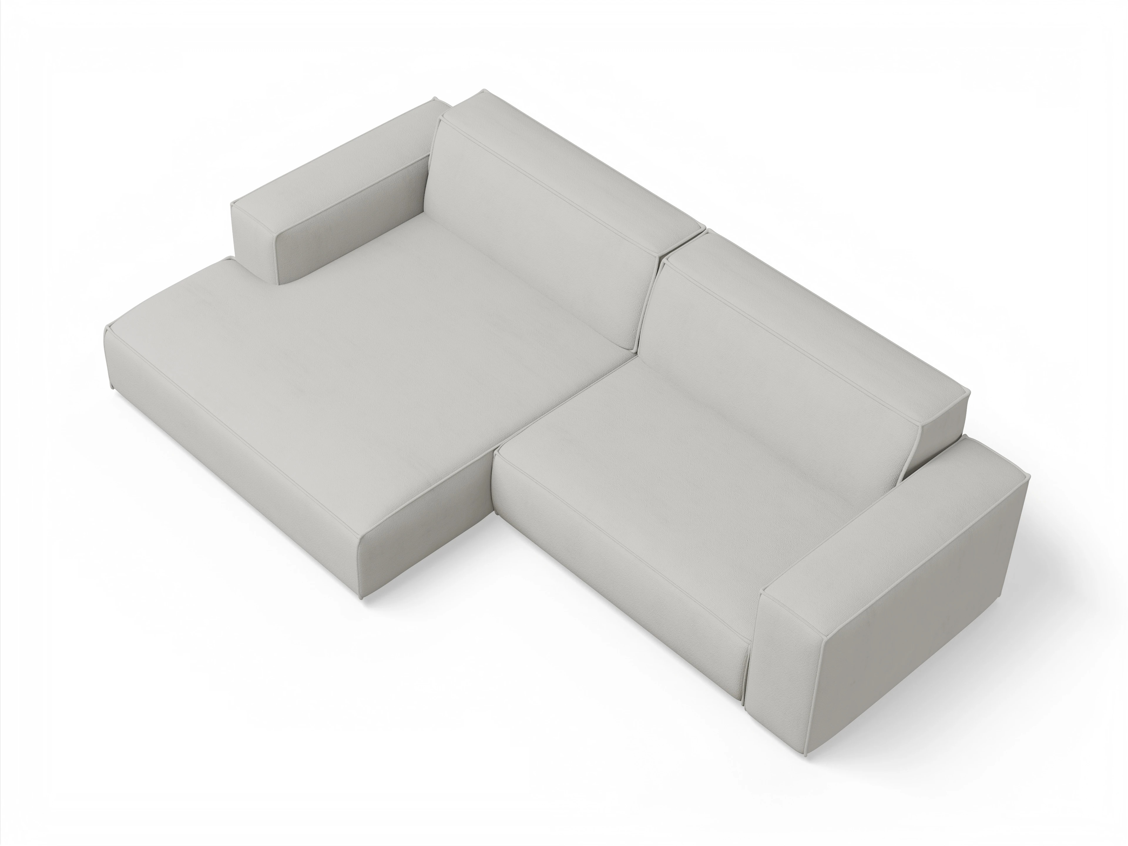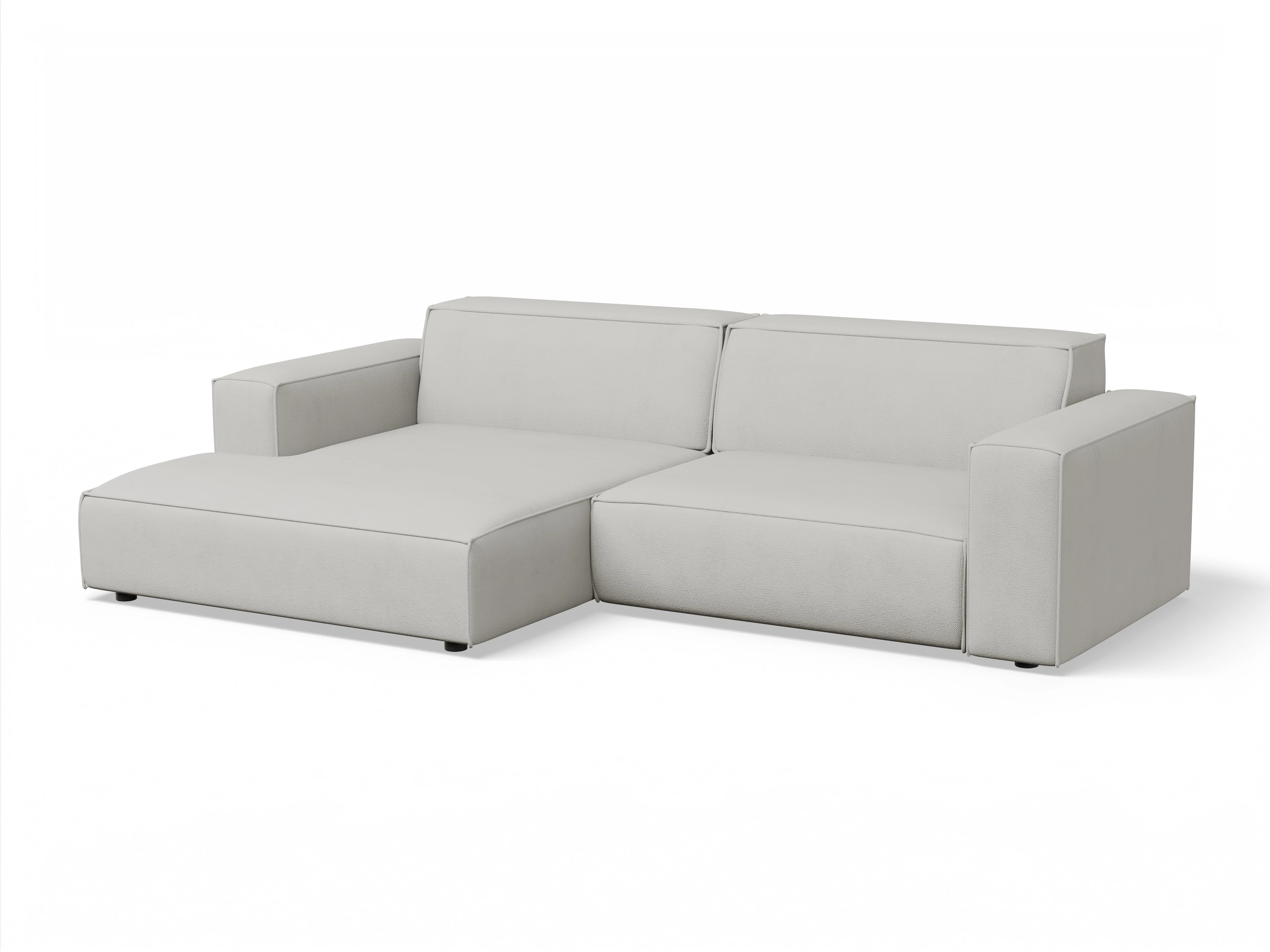 Das Ecksofa besteht aus einem Longchair XL mit Armlehne links und einem 2-Sitzer mit Armlehne rechts und inkl. Sitztiefenverstellung.