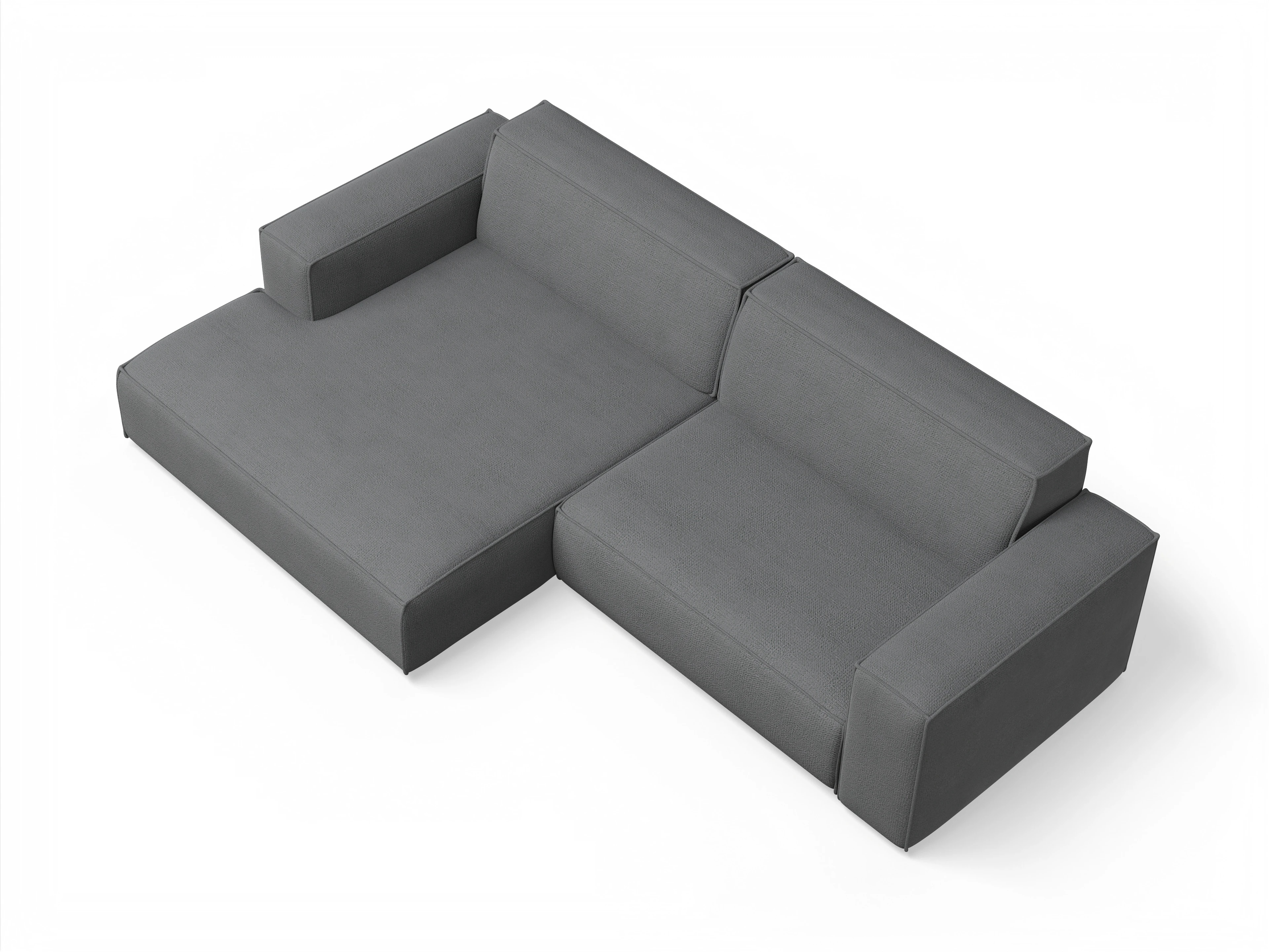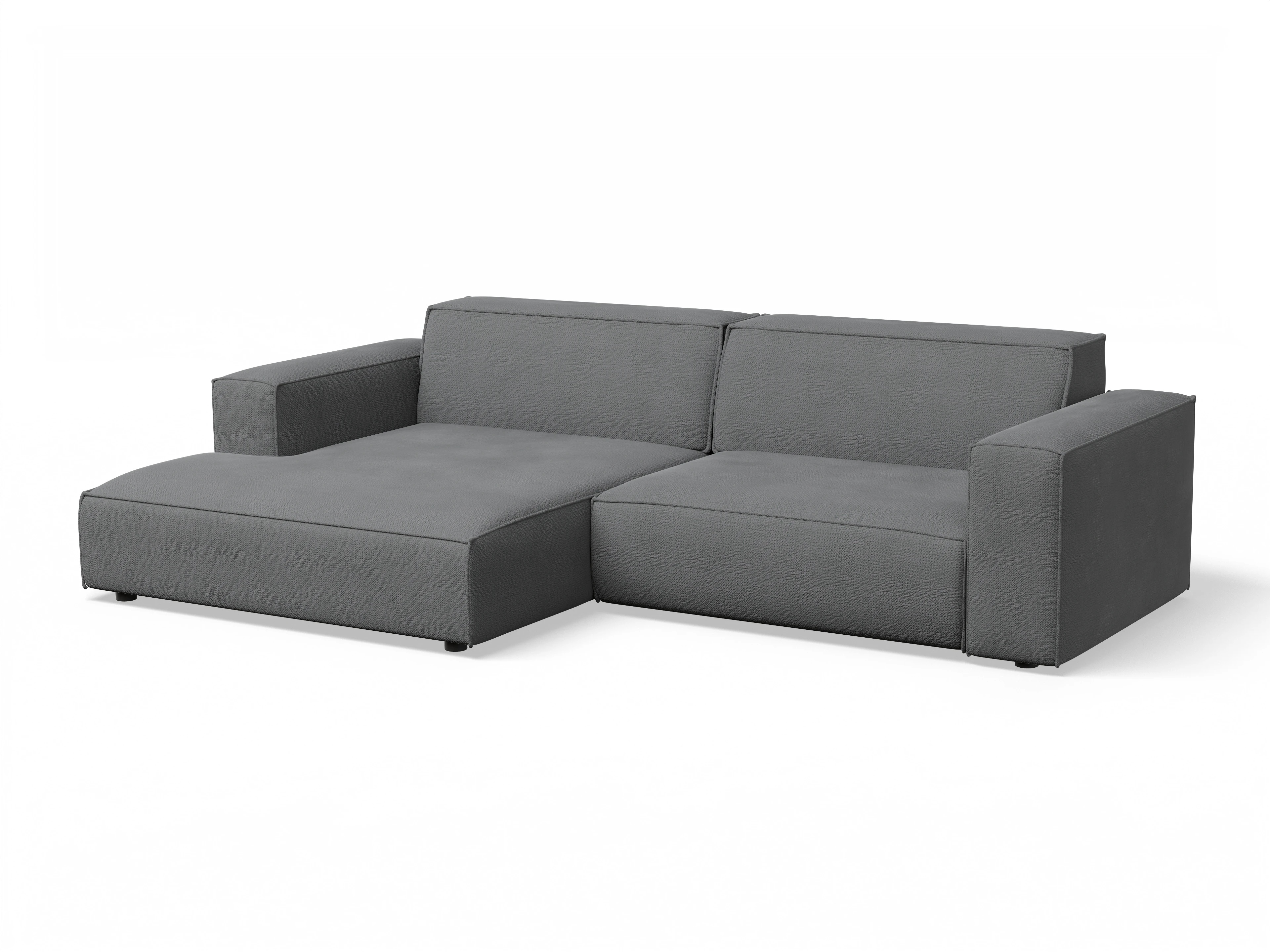 Das Ecksofa besteht aus einem Longchair XL mit Armlehne links und einem 2-Sitzer mit Armlehne rechts und inkl. Sitztiefenverstellung.